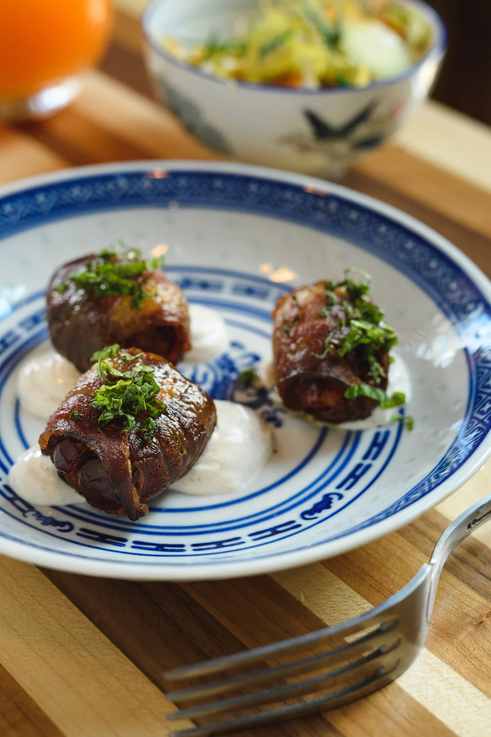 Restaurant BBQ Bar West Hartford Lunch Catering Comfort Food Kid Friendly Homepage The Cook and The Bear in West Hartford: A Barbecue (and Bourbon) Lover’s Dream CTbites Team October 29, 2017 There’s something in the air at The Cook and The Bear. And we’re pretty sure it’s the scent of deliciously smoked brisket. Or maybe pastrami, or barbecue chicken. Whatever it is, we’re loving it.The Cook and The Bear is brought to you by two well-known local chefs: Tyler Anderson and Jamie McDonald. A two-time nominee of the Best Chef Northeast James Beard Award and contestant in the upcoming season of Top Chef, Anderson is known to please palates at Simsbury's popular fine dining restaurant Millwright's, offering farm-fresh New England fare in a rustic setting. Jamie McDonald's Kansas City-style barbecue has led him to conquer the local food scene as well, with his fast-casual Bear's Smokehouse (located in Windsor and Hartford), his wood-fired pizzeria Blind Pig Pizza Co. in Hartford, and the recently opened Chango Rosa, serving Latin cuisine in the former Hot Tomatoes space at Union Station.Located in West Hartford’s popular Blue Back Square, The Cook and The Bear instantly pulls you in with its rustic chic charm (and you know, that smoky aroma). Walk into this cozy spot, and you’ll know what we mean. With its exposed ceiling and garage door-turned-window, it has a cool industrial feel that’s new and trendy. But it still holds that classic cozy vibe thanks to striped wood tables, sink-in-your-seat booths, a fire wood lined wall, and checkered napkins. Because no barbecue spot is complete without checked napkins.Unroll your utensils from that checkered napkin and dive into the menu - which is made up of Southern comfort food favorites. It’s divided into snacks, salads/sandwiches/smoker choices/entrees, and sides, giving you the option to mix and match to your liking. And we say a side of mac & cheese gratin or creamy grits goes well with barbecue anything. One thing’s for sure: you have to try the buttermilk biscuits. Not only do they come out of the oven golden brown and warm, but they are served with a rich butter. And not just any butter, but butter made with honey and sesame seeds. Just try not slabbing that on just about anything and everything. Other snacks, include the bacon-wrapped dates stuffed with chorizo and served with a refreshing yogurt sauce. However, the true stand out appetizer are the deviled eggs. Made with whipped salmon and fresh spices that resemble an everything bagel, this plate will have you believing you’re eating a carb-heavy breakfast but without the guilt. Although not everything is guilt free. But when it comes to the impressive meat selections here, it doesn’t matter. There’s a section on the menu that showcases all the smoked options, ranging from pastrami to kielbasa. However, you aren’t going home without trying the prime beef brisket. It’s so tender you don’t even need a knife to cut through it. The sticky spare ribs are also worth a try. Different from the original style, these babies resemble Asian-style flavors with sesame seeds and a lick-your-fingers-good Chinese glaze. And while this is a meat-heavy barbecue joint, the roasted salmon is nothing to shy away from. Topped with a tarragon and mustard sauce, this fish is flavorful and cooked to perfection. It easily flakes off the fork and the roasted carrots and simple farro are the perfect accompanying sides.After all these savory items you’re going to want something sweet to balance it out. Good thing there is banana pudding topped with a smoky chocolate or pumpkin pie doused with real (and super thick) whipped cream to choose from. Ok, so we know there’s a lot to tackle on the menu. But don’t worry. The best way to go about it (especially for first timers) is with the Family Style Feast. At $30 per person, you get to enjoy several snacks, all of the smoked items, each and every side, and one decadent dessert. And each item comes in a much smaller portion (phew!) allowing you to taste everything without overstuffing. All this food talk is making us thirty. Let’s not forget the wood-top bar with red quilted stools making for an inviting space to have a cocktail (or three). It’s white tile wall is lined with oodles of bottles - most of which are bourbon, including the restaurant’s own Angels Envy private collection served straight from the barrel. And there are speciality cocktails, too, like Something Bitter (which is a Negroni made of bourbon instead of gin) that has an ultra smooth finish with perfectly tart orange zest. But if you don’t want bourbon, there are other drinks to choose from. Just ask the master mixologists behind the bar. Tell them your spirit of choice and how you like your drinks (dry or sweet), and they will create something unique on the spot. And if all else fails, there’s always a margarita or frose (frozen rose sangria) along with plenty of local craft beers to choose from, such as Kent Falls “Berry Mint Gose.” These guys don’t take reservations so expect a wait - especially on prime supper times, starting around 6pm. But if you have to wait, stick it out. It’s well worth it and a solid excuse to hit up the bar.The Cook and The Bear 50 Memorial Road 860-999-1111Monday-Wednesday Noon-11pmThursday- Saturday Noon-MidnightSunday Noon-10pm[Photography courtesy of Winter Caplanson]