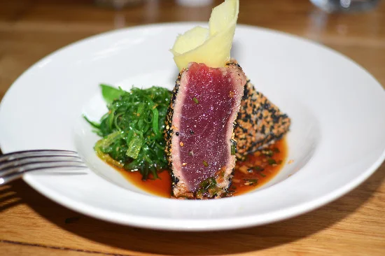 Restaurant New Canaan American Brunch Comfort Food Lunch Kid Friendly Gates in New Canaan: New Chef, Changing Menu for Longtime Institution jeffrey schlesinger January 29, 2017 Gates Restaurant has been an institution on Forest Street in New Canaan since 1979. It was sold in 2015, completely redesigned and re-opened last February. The new Gates maintained the relaxed environment with a rustic, Americana décor, with the original gates repurposed around the entrance to the revamped bar, exposed brick-and-wood walls, bistro seating, and an open kitchen. On weekends kids’ teams continued to flock to this town fixture for post-soccer game celebrations, families scheduled weekly Sunday brunches, locals met for a casual lunch, guys sat at the bar indulging in a burger, beer and ballgame, and young adults enjoyed a few late-night drinks and live music. It was still the town watering hole...Gates 2.0. My first few visits after the re-opening were disappointing; the noise level was deafening and the food was not to my liking. To the credit of management, they listened to feedback from social media, comment cards left with each patron and a self-assessment. Changes occurred. The noise level is being addressed, many of the opening items were eliminated from the menu, former favorites are reappearing and new dishes from its recently hired Executive Chef Dan Rubino, who joined the team in November, are slowly making an appearance. CTbites was invited to return and sit with General Manager Carter Messman and the new chef to discuss the vision for Gates and sample a few items.Management wants Gates to be an American Brasserie where the bar is filled with locals enjoying food, libations, and desserts, with a side of live music on certain nights, while the dining room is packed with families and guests, who return on a regular basis. The noise level is being addressed with the installation of noise damping panels on the ceiling, softer chairs and booths are on order, and an array of art and historical photos will adorn the hard brick walls.The ever-changing menu now includes some old-time favorites (the Bellagio sandwich), plus slowly introducing Chef Rubino’s concepts. As I sampled the dishes, there was a distinct difference between the items that the new chef has added and those that remain from the opening menu, Rubino’s creations were better. When I asked about this, I was told that many of the opening menu dishes were some of the restaurant’s best sellers, and removing them would draw the wrath from many of their regular diners. I sampled many of the appetizers and salads, with some good and some not to my liking.The Crab Cake consisted of a single, large oval-shaped portion of jumbo lump crab meat mixed with a light aioli and sautéed flat on two sides. It was served with a spicy rémoulade with a smattering of micro greens on top. The cake was almost entirely crab meat, mild in flavor, less sweet than I expected, and worked well with the medium spiciness of the aioli. The Roasted Baby Beets paired chunks of red and yellow beets with walnut puree, a sprinkling of goat cheese, and creamy tarragon dressing, all hidden beneath a mound of mache. The current version emphasizes wintry flavors with the walnut puree accenting the earthiness of the beets. During the warmer months, the chef plans on brightening the dish with a citrusy alternative to the walnut puree. The Tuna Tartare was a scant amount of sushi grade tuna, topped with a large portion of guacamole and house-made potato chips, swimming in a pool of ginger ponzu sauce. More aptly named pureed avocado with ponzu sauce, there was a meager amount of tuna, and both were overwhelmed by the bold ponzu sauce. The Crispy Chicken Cobb salad was a traditional Cobb with bacon, avocado, tomatoes, dry bleu cheese, pickled red onions, and ham tossed with a honey mustard vinaigrette. Instead of slices of roasted chicken, the Gates version included buttermilk fried chicken strips. This was a very large salad, more than enough for a hearty appetite, but the fried chicken was overcooked and very bitter.I found many of the sandwiches and entrées more to my liking. One of Gates’ best dishes was The Burger, which consisted of 28-day dry-aged blend of brisket, short rib, & chuck topped with American cheese, bacon, lettuce, tomato, onion, on a brioche bun served with fresh cut fries. The meat was one of the richest flavored meats in the area, very “lamby” and perfectly prepared to my requested medium-rare. Guests should expect a lot of flavor hitting the palate on the first bite, which I really liked. The cheese and bacon were very good as was the bun. The Pattie Melt was also delicious. An 8-ounce beef patty (a different and milder bend of cuts than the burger) was joined between slices of buttered and grilled rye bread by caramelized onions, melted Gruyere cheese, and Russian dressing. This was a well-executed, traditional patty melt that would go down smoothly with a few beers. Of the larger entrée-sized offering, my favorite was the Short Ribs (picture at top of review). A large boneless single rib sat atop a mound of whipped potatoes and roasted vegetables (varietal cauliflower and snow peas) with a pan reduction. The meat was full of flavor, ultra-tender and delicious. The whipped potatoes were very good with the sauce as were the simple roasted vegetables.The Yellowfin Tuna was a very simple presentation, seared tuna, encased in black and white sesame seeds, served with wakame seaweed, and snow peas. This was a very light dish, nicely balanced with an excellent quality tuna complemented by a delightful seaweed and vegetables.The BBQ Baby Back Ribs were served with a side of fries, lathered in BBQ sauce and served with French fries. The meat lacked any flavor and the sauce was cloyingly sweet.Overall, Gates is still a destination, neighborhood watering hole, offering a fun atmosphere to enjoy with friends, a relaxed environment for family dinner