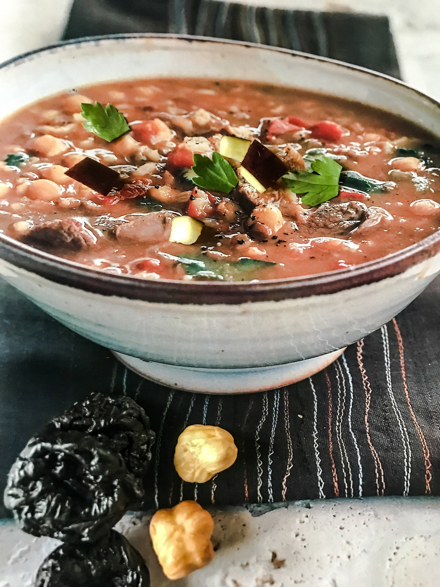 Recipe Features Recipe Beef, Prunes Chickpeas Slow Cooked Pot Recipe via Silvia Baldini CTbites Team February 08, 2017 Prunes, chickpeas and ginger combine their forces in to this crammed with hearty flavors slow cooked pot, a perfect combination for a jolt of much needed energy to help us sustain our daily actions.Prunes for fiber, chickpeas for nutrient-rich energy, ginger as an antioxidant and a generous amount of fork tender bits of beef; this pot is a darling at my house on wintery Sunday family dinners, when warmth and restoring strength are very much a necessity. Let’s put power back in to the right hands and the force of sustenance in to our family bellies.Beef, Prunes Chickpeas Slow Cooked PotThis is a Tagine, or slow cooker kind of recipe. It takes about 2 1/2 hours to cook but once you prep it, you don't have much else to worry about.Servings 8 people Prep Time 20 minutes Cook Time 2 1/2 hoursIngredients1 cup canned chickpeas drained dried ones could be used, but must be soaked overnight1 tbsp olive oil1 largeyellow onion chopped2 medium celery stalks chopped2 medium cloves of garlic minced2 inches fresh ginger, peeled and grated1 tsp grounded cinnamon salt and pepper1 pinchsaffron threads1 pound cubed lean beef lamb, chicken or pork would work well1 can crushed tomatoes4 cups chicken or beef stock3/4 cup pitted prunes1/2 cup chopped eggplant1/2 medium juice of a lemon1/2 cup fresh coriander leaves choppedServings: 8 peopleInstructionsHeat the olive oil in a large Dutch oven of a heavy pot or a slow cooker. Add the onions, celery, and garlic stirring until the onions soften.Add the ginger, cinnamon and the salt and pepper. Stir and add the saffron threads; cook always stirring, about 2 minutes. Add the beef and cook for 5 minutes until browned.Add the chickpeas and the crushed tomatoes and stir. Add the stock, cover and simmer for about 45 minutes on low. heat.Add the prunes and the chopped eggplants; simmer covered for 1 hour.Taste for seasoning and add salt and pepper if needed. Add the juice of the lemon and stir then add the chopped coriander leaves and serve.Recipe NotesAdd some chili flakes or harissa for heat. Freeze the leftovers. Serve with long grain or brown rice.About Silvia Baldini: Following a distinguished and award winning career as an art director on Madison Avenue, Silvia pursued culinary training at ICC in NYC and Cordon Bleu in London. She worked at Michelin-star kitchens in Europe, the Ritz Carlton in London.She then founded, her now established creative food group Strawberry and Sage in CT, She is the writer of the blog Silvia’s Trays. Silvia has appeared on local TV,national TV and Food Network shows. After Chef Chris Santos declared her dessert: “The best dessert on this show ever,” she became the first professional woman chef in Connecticut to win Chopped, the award winning show on Food Network. She has returned on Food Network as one of 16 chefs competing in the last season of Chopped Champions. Her work and recipes have been mentioned and published among others publications in Bon Appetit, Parent Magazine, TeenVogue, Readers Digest, Thrillist, CTBites, the Jamie Oliver food revolution blog, The James Beard blog, Ct Post, and many other national and international publications.Silvia is featured in a series of videos and in articles in Saveur. She makes appearances on morning TV shows om ABC channel 8, CNN and DR OZ.She is frequently a key speaker and a leading panelist and she is an expert and adviser with extensive experience in the food and media industry.She is also a member of theNew York Women’s Culinary Alliance.Silvia is currently having fun, writing her first, cookbook and she is the proud mother of two beautiful and always hungry children.Twitter: silviabaldini00Instagram: silviabaldinistrawberryandsageFacebook: silviabaldini