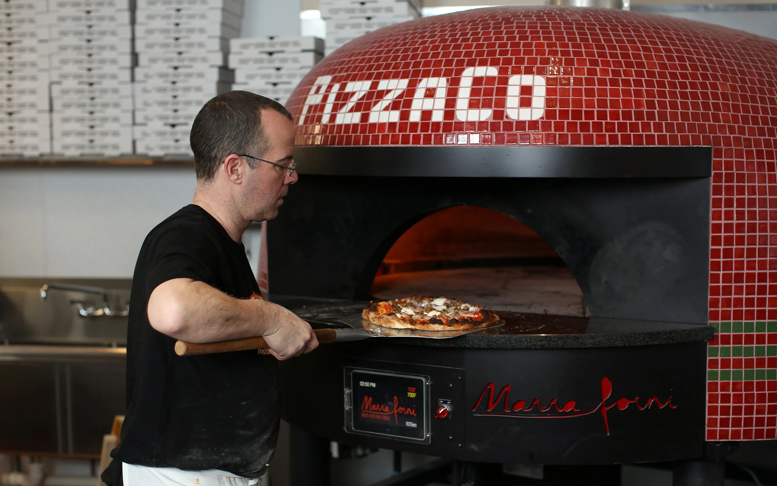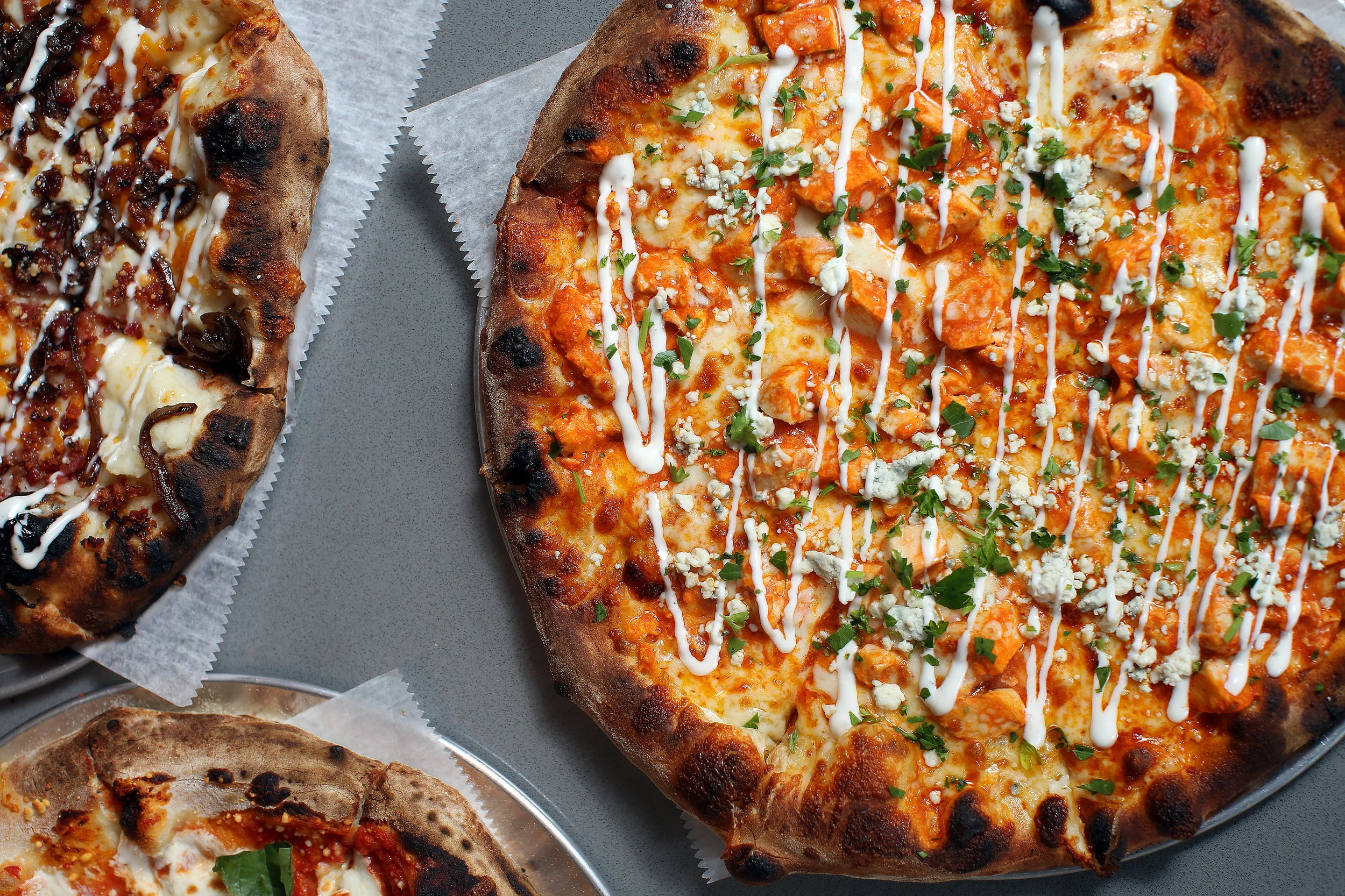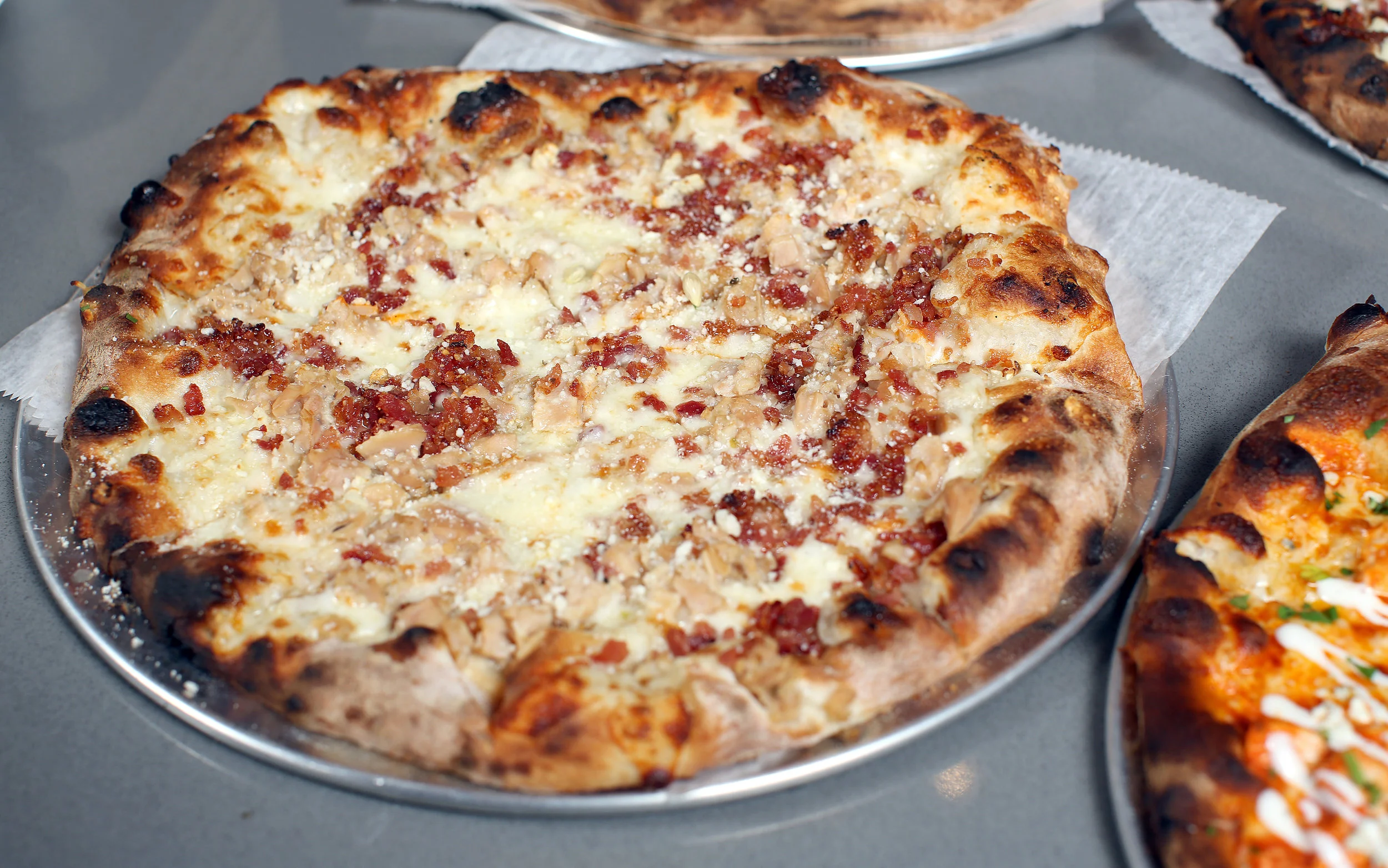 Restaurant Stratford Pizza Lunch CT Beer Kid Friendly Celebrity Chef Homepage PizzaCo Opens in Stratford: Bruno DiFabio Creates Garage-Fired Pizza James Gribbon April 02, 2017 The first hot rod movement was sparked by people who realized cast off objects still had plenty of potential. Kids walking to school in post WWII America passed junkyards where derelict Model T Fords, relics even then, baked in the sun. An after school job's income could net you one of those heaps, and with it came your first taste of independence. Dropping in a salvaged flathead V-8 could make that old bucket loud, fast, and dangerous. The sexy combination was like flypaper to teenagers and young veterans, and their creativity launched an American culture.Newly opened PizzaCo, just across the street from Two Roads Brewing Company, is one such hot rod. Once the site of several thoroughly defunct gas stations, the old place has been cleaned up, given a new paint job, and had its own motor swap. The driving engine is now a Marra Forni oven. They call their pizza "Garage Fired," and PizzaCo's edge was hiring world champion Bruno DiFabio to create it. If the name sounds familiar, it's because you've seen Bruno on the Food Network, or had his pizza at Amore Cucina & Bar in Stamford's Springdale neighborhood. Bruno has won the world pizza championships six times, and owns The Academy of Pizza Science. PizzaCo co-owner Jordan Bochanis has worked extensively with Two Roads designing labels and merchandise, and drove past the location regularly before bringing it back to life. "We hired Bruno as a consultant, and he hung in there way above and beyond what we hired him to do," he told CTBites. "Bruno created the pizza, worked in our kitchen, and recommended the oven. All of our kitchen staff do residencies at Village Tavern and Amore before they work here." The dough he created for PizzaCo takes three days to make. On the first day the flour and water are mixed and left to leaven slightly into a "mother" dough. On the second, the fresh dough is mixed with a starter dough from a previously finished batch, and by the third, the dough is ready for the oven. Walk inside and PizzaCo's heritage is all around you. Vintage fuel pumps, signs advertising foreign and domestic car service, and other automobilia abound. The Hobart mixer has a flame job, and the beer tap has been pinstriped. TVs play old greaser flicks on either side of a bar labeled "LUBRICATION." Garage bay doors promise to let in warm breezes and the sound of revving engines on summer nights. Over a few trips I was able to sample several different pizzas and side plates. Appetizers are called Engine Starters on the menu, and the meatballs come three at a time, dressed with pomodoro sauce, and gathered around a scoop of herbed ricotta. The meatballs are loosely packed without a lot of bread or other adjuncts, and well spiced under the sweet, fresh tasting tomato sauce. The ricotta almost seems like icing in this context, and adds a smooth roundness to the herbs and meat. I chose to get the Oven-Fired Chicken Wings with the house made spicy rub - the other options being garlic herb wings - and they arrived with two creamy dips, one with added hot sauce. The rub was extremely tasty. With plenty of heat and smoke, it complimented the chicken greatly. The wings themselves were not as good. They were slightly small, and the meat had pulled away from the bone, possibly during the cooking process. I'll call it a hiccup in quality control during the restaurant's early running until I see it again. One of PizzaCo's must have pies is the Scamotz (pronounced "ska-moats"), a vintage Bridgeport pizza made with tomato sauce, oregano, garlic, and Scamorza cheese. It's about 12" across, like every pizza there, and the simplicity allows each of the ingredients to be appreciated. PizzaCo seems to have a heavy hand with garlic in all their creations, and I'm a fan, but it highlights rather than overpowers the sweet tomato sauce and pungent Scamorza in the Scamotz. The crust is arguably the best part about anything from PizzaCo. The rotating floor, gas oven (would you expect anything else in a garage?) is kept screaming hot, and the crust bubbles and caramelizes at its edges without being overdone. The outside of the crust retains a chewy, yeasty interior which makes tossing it aside borderline sinful. The Full Service Special - some may dare call it a Meat Lover's - with tomato sauce, pepperoni, ham, sausage, ground meatballs, mozzarella, ricotta and oregano was the only pie which had the fortitude to make the crust an afterthought. The Margarita, with just red sauce, basil, and bright circles of melted fresh mozzarella is your yardstick "plain cheese" pizza, and it's likewise excellent, largely due to the quality of the ingredients. Bochanis told us he felt free to use better ingredients in a $12, 12" pizza partially due to PizzaCo's close proximity to Two Roads. "The people who go there know better quality, and we thought we could establish a place doing craft pizza, and people who looked for craft beer would appreciate it and respond."The Green Light is a white pizza made with a smaller amount of ricotta and mozzarella, and topped with fresh spinach. The spinach wilts down fairly quickly on the hot pie, but isn't otherwise adversely affected, and the combination of the cheese and greens on a base of outstanding crust, plus plenty of garlic of course, keeps the slices light, yet very satisfying. The plan is to increase the use of seasonal ingredients as they become available, so the menu should change periodically. PizzaCo serves gelato made for them by Cafe Madeline of Fairfield which incorporates Two Roads Espressway coffee stout. The stout itself is effectively cold brewed with a mixture of Ethiopian and Sumatran beans, and the result is a dense, rich coffee gelato with the barest hint of alcohol detectable right on the roof of your mouth. A spring gelato made with Two Roads Road Jam