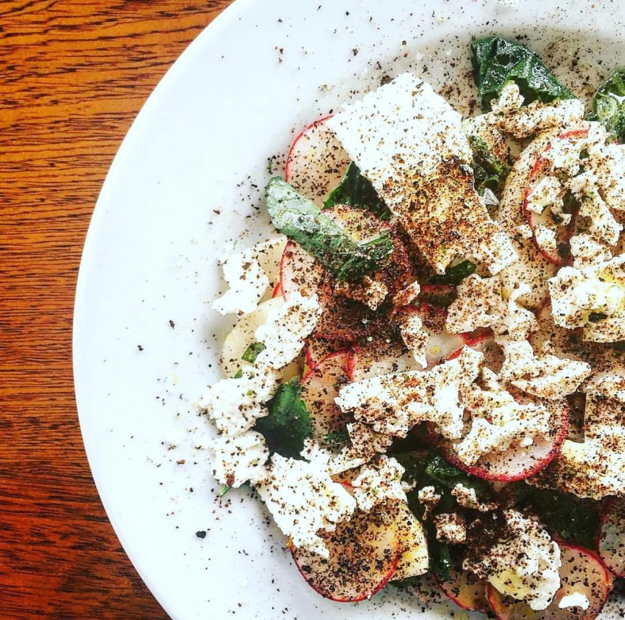 Recipe Recipe healthy Farmers Market Anthony Kostelis' Kohlrabi & Radish Salad with Goat Feta and Zesty Breadcrumbs Recipe Stephanie Webster May 10, 2017 Chef Anthony Kostelis will be one of the many guest chefs at The Westport Farmers' Market for the 2017 summer season. The complete lineup will be released shortly. In the meantime, Chef Kostelis has shared one of the recipes he will be demoing at the market, Kohlrabi & Radish Salad with Goat Feta and Zesty Breadcrumbs, made with local ingredients from CT farms. When you create this salad at home we encourage you to seek local purveyors at a farmers' market near you. Kohlrabi and Radish Salad with Goat Feta and Zesty BreadcrumbsServes 2Prep time: 20 minutesSalad2 medium kohlrabi6-8 radishes, different varieties to make it more interesting15 sprigs mint2 tablespoons white balsamic vinegar1 lemon, zest and juice5 tablespoons extra-virgin olive oilsea saltblack pepper2 tablespoons butter, at room temperature¼ lb. goat feta½ cup zesty breadcrumbs (below)1. Peel kohlrabi and quarter; slice into ¼-inch-thick pieces. Cut the radishes into a similar size. 2. Toss kohlrabi, radish, mint, vinegar, lemon zest, lemon juice, oil, salt, and pepper in a bowl. 3. On a serving plate, spread butter in a circular pattern. Layer the salad over the butter. Slice or crumble the feta over the salad, then dust the salad with the zesty breadcrumbs and serve.Zesty Breadcrumbs1 tablespoon organic canola oil4 slices sourdough bread (or any lighter color bread)zest of 5 lemons4 tablespoons aonori (dried green seaweed)4 tablespoons ground sumackosher salt and pepper1. Heat oil in a skillet over high heat. Add sliced sourdough and cook on both sides, adjusting temperature as necessary, until well toasted and a deep golden color. Remove bread from skillet and let it dry and cool to room temperature.2. Crumble bread into a food processor and pulse until ground to the size of large cracked pepper. 3. Empty crumbs into a bowl and season with lemon zest, aonori, ground sumac, kosher salt and pepper. The result should be very savory and slightly acidic.Contributed by: Bill Taibe, Executive Chef/Owner, The Whelk, Kawa Ni, Jesup Hallwww.thewhelkwestport.com
