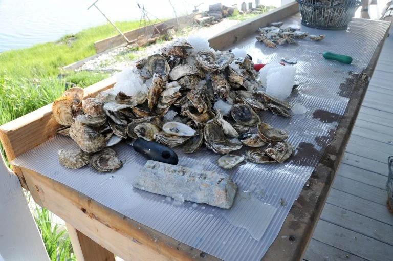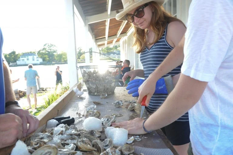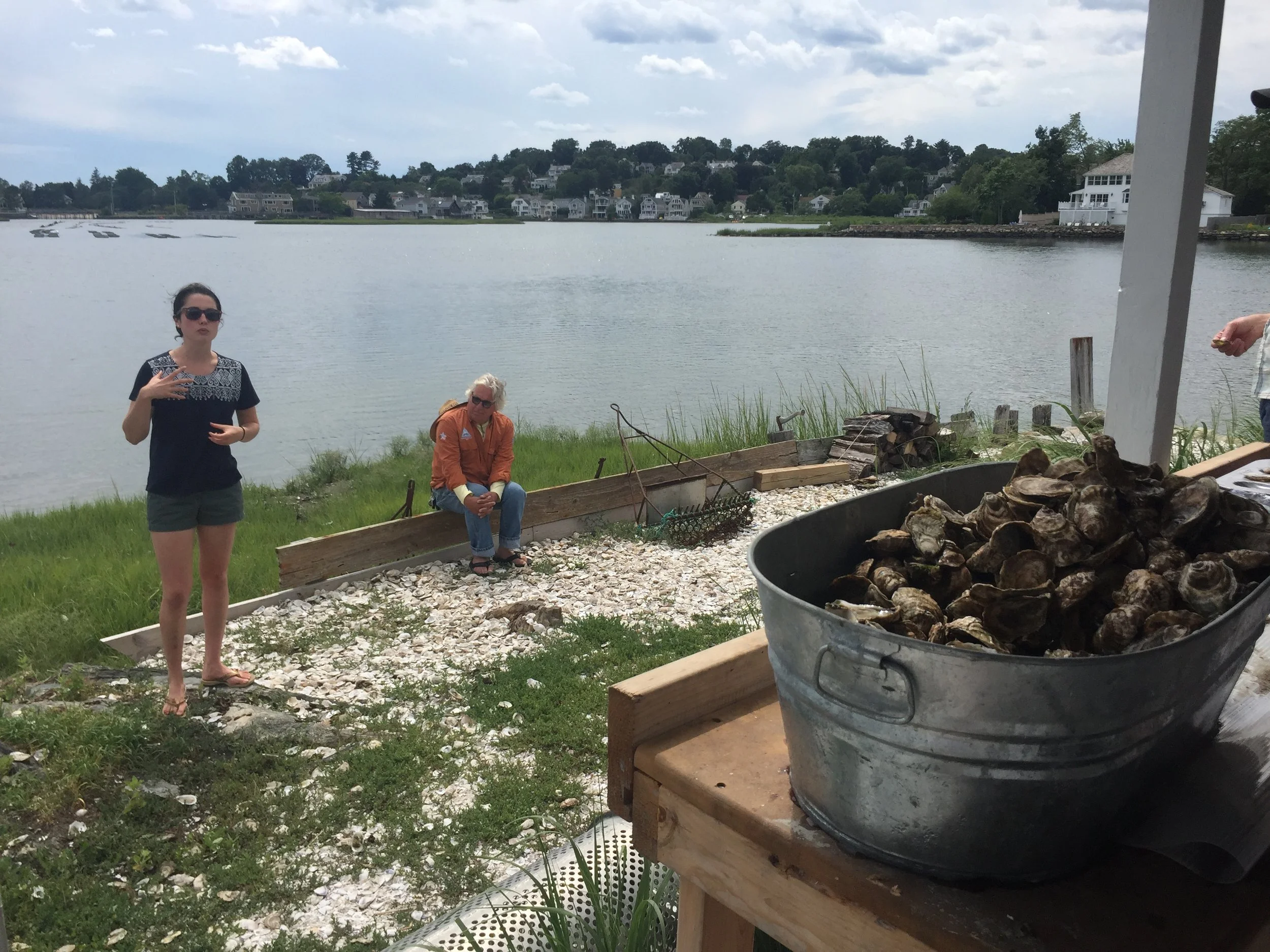Features Seafood Events Oysters Norwalk Specialty Market Education Hummock Island Oyster Company Lauches "Oyster Tours" Emma Jane-Doody Stetson August 16, 2017 You may have been told not to eat raw oysters in months that don’t have an R. It’s not true. It was a beautiful, temperate August afternoon when I stood on Hummock Island slurping freshly harvested oysters and casting their shells onto the ground below.Westport-based Hummock Island Oyster Company has long been known for their outstanding oysters. The pond where they are situated dates back to 1741, when it was awarded as a grant from the British King. In the mid-1800s, a house was erected in the center so that an “oyster guard” could reside there full time. The farm stayed in the family through the generations, with father-son duo Jeff Northrop Sr. and Jeff Northrop Jr. running the business today. Photo: Liz Dorney Hummock Island Oyster Company’s clients are impressive. Blue Hill Farm, recently named one of the top restaurants in the entire world, uses their oysters exclusively. Rizzuto’s and The Whelk get oysters from them directly. Pagano’s serves as their Connecticut distributor, placing the oysters in additional prominent restaurants like Pearl. They have distribution in Pennsylvania, Boston, and New York as well, and even had a relationship with Whole Foods for seven years. Photo: Liz Dorney “A life-size picture of me used to be in all the Whole Foods fish departments,” laughed Jeff Northrop Sr.Hummock Island Oyster Company recently started offering “oyster tours,” giving the public an opportunity to visit the island, witness the operation, and taste oysters fresh from the sea. I eagerly accepted their invitation to participate, which is how I found myself indulging in oysters in early August. The tour began at Elvira’s, a lunch-spot-meets-market in Westport on Hillspoint Road. The meeting spot affords participants the chance to stock up on water and snacks (and use the bathroom if needed!). Our group consisted of six people, a smaller group considering that tour sizes range from six to twenty people. In general, they try to keep groups small to provide a more intimate experience. One piece of advice: leave yourself plenty of extra time for parking. The Westport beach area offers a lovely backdrop, but it also means that throngs of people are there enjoying the outdoors. There is a small lot across from Elvira’s and some street parking next to it, but if those spaces are taken you may find yourself doing circles through the neighborhood until something frees up. I’d consider a drop-off, if possible.After a short, informative introduction, our tour leader, Casey, took us to the boat launch located across the street on a cute, beachy cul-de-sac. Jeff Northrop, Sr. helped us onto a medium-sized wooden fishing boat (a “New Haven sharpie”). Northrop told us that the boat choice is intentional, as they strive to keep everything about their operation as authentic and unobtrusive as possible. Photo: Liz Dorney On our journey, he pointed out the numerous oyster cages floating in the water. They had a particularly difficult time during the major hurricane a few years ago, so they now use double decker cages... that hold 1,000 oysters a piece! Unlike some other fisheries, they don’t add anything to the water. In fact, the oysters themselves serve as natural water filters. Their presence means that the pond is 44% cleaner than Long Island Sound!When we arrived on the island, we were greeted with fresh oysters to try. We were given some time to explore before reconvening again as a group. The island itself is really unique and fun to peruse. It consists of the main house and what looks like another small house… but is actually a boat! Photo: Liz Dorney “The town was concerned when they saw what they thought was us building a house in the middle of the pond,” Northrop chuckled. “We wound up driving around in circles to show them it was a boat!” It’s an efficient way to store extra equipment, and the design matches the main house.The main house reminded me of one of the houses you might find in a historical village. Since it did function as a home decades earlier, it contains original furniture, photographs, and even the paddles constructed by one of the “oyster guards.”The island also holds an enormous “oyster tumbler.” It resembles a horizontal column with holes of varying sizes on the outside. Oysters need to be separated by size to distribute nutrients, and the machine shakes them out of the holes, thereby sorting them.Next, we met back up on the porch of the house for a shucking lesson! Casey plucked an oyster from a giant bucket of newly harvested oysters and demonstrated the proper technique. Those who wanted to had the chance to try shucking oysters, and we all took turns opening them under Casey’s direction. And you know what opening more oysters means… more eating!! There was no shortage of salty, refreshing goodness.The afternoon unfolded in a free form, relaxing manner. Though tours average an hour and a half, Jeff and Casey did not rush us at all. Everyone was more than happy to relax on the island (and of course eat more oysters!) so we slowly spread out to take it all in. They encouraged us to bring snacks and beverages, so guests pulled out wine, champagne, and sandwiches. Some lounged in the Adirondack chairs on the deck, while others continued trying their hand at shucking. Casey and Jeff punctuated the peaceful afternoon with educational dialogue about the equipment and their business. It was the perfect mix of informative and fun.My friends and I also used the time to chat more informally with Jeff. His passion certainly comes through. He tries to keep everything of the highest quality; he does not believe in stock piling and only harvests two orders at a time.“We try to be good citizens,” he told us. They insulate their generators to muffle any sounds for the