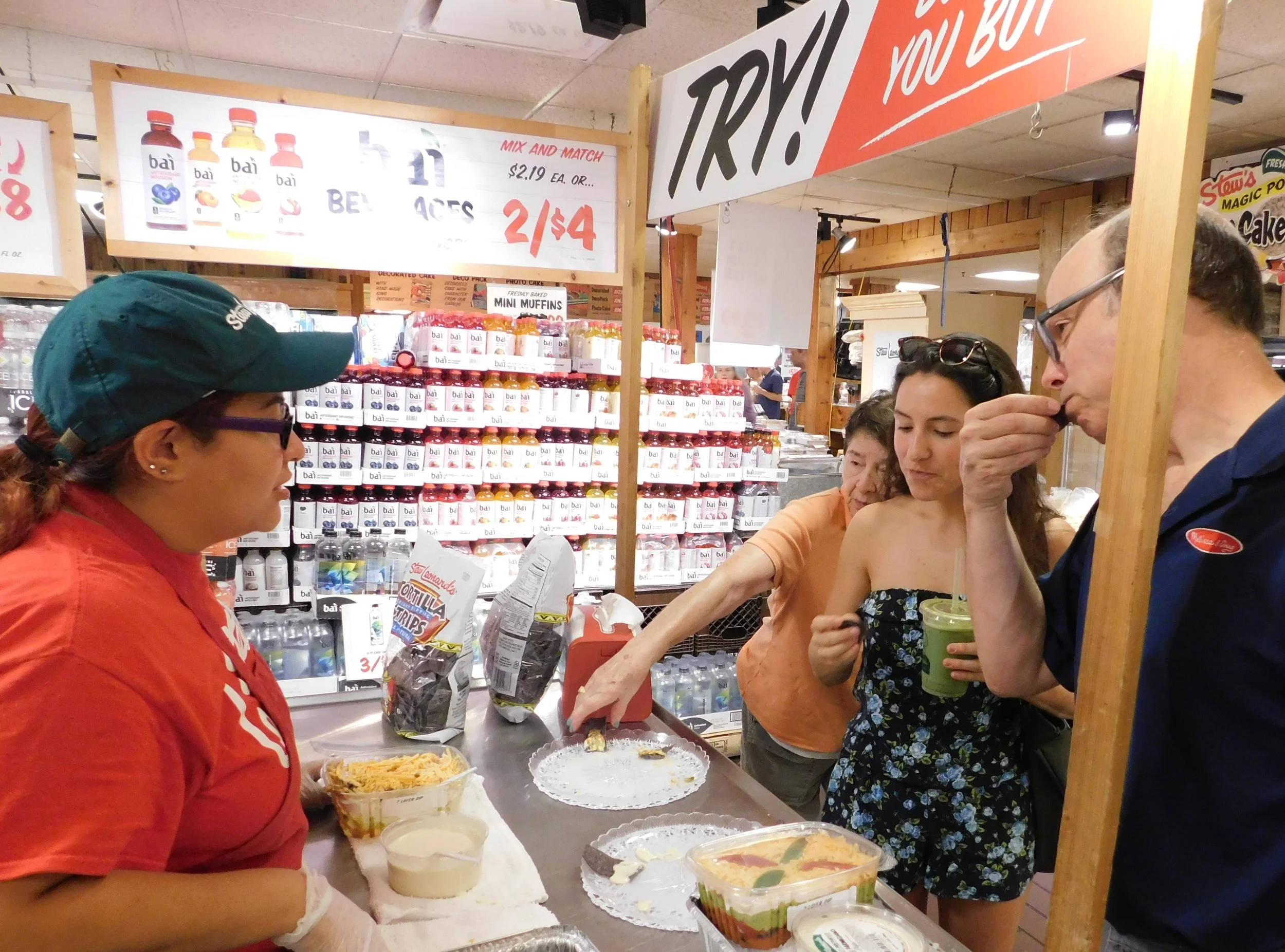 Features Specialty Market Homepage Costco Vs. Stew Leonard's "Samples" Thowdown: Who's The Winner? Lou Gorfain August 31, 2018 People love Free. Almost as much as they crave Food. Which explains why CTBites decided to pit Costco in Norwalk against Stew Leonard's in Norwalk, both famous for their generous grocery samples, in a Full-on Free Food Fight. There was a clear winner. And it wasn’t the store we thought it would be.While Costco is a membership warehouse, and Stewie’s a sui generes grocery market, both strive to enhance their customers’ in-store shopping experience -- more so than traditional supermarkets. SL offers family centric petting zoos, animatronics (including a singing banana), bargain dairy, even free ice cream or coffee (with a $100 receipt). Costco’s Dog Deal ($1.50 for a jumbo wiener and refillable 20 oz. soda) lures crowds, as well as its cheapo Rotisserie Chicken (4.99) and discounted movie coupons. But the stellar attraction at both stores is their free food samples, ranging across the grocery spectrum, from seductive chocolates to addictive chips to mouthwatering burger bites to exotic beverages. Some are surprisingly delicious, others far less so. Many customers make a meal of the handouts, openly or surreptitiously going back for seconds and thirds. There are rumored scallywags who augment, even sustain, their yearly diets, on this bonanza. But don’t kid yourself. Samples are hardly a free lunch. The small tastes are calibrated to whet appetites and thus spark sales, by an amazing average of 80%. Primetime for Freebies peaks around lunch hour on Saturday, which is precisely when we opened the competition. First up was Costco. Here are some high and low lights.COSTCO PETER & PAT’S PIEROGIES. The elaborate stand was manned by no less than three attendants, working for CDS, a San Diego based marketing firm that supplies most of Costco’s in-store demonstrations and give-aways. A nearby freezer featured frozen packages of this Polish mainstay. We sampled four different flavored potato dumplings: mushroom-parmesan, bacon-cheddar, spinach, and cheese. Verdict: the flavors were indistinguishable, largely overwhelmed by the boiled potato crescent. We saw no customer head from the station to the display. DRY RUBBED ST. LOUIS STYLE RIBS. In contrast, these flavor-packed and generously portioned pork ribs were by far the tastiest and most satisfying sample in the store. Par-cooked, the ribs were finished inside an oven at the station to 145 degrees, which the attendant carefully measured with an insta-read professional thermometer. Moist, falling off the bone tender, the rib was literally lip smacking good. We went for seconds, you know, for scientific purposes. Almost everyone who tried the sample hurried to the refrigerated display case to pick up a package. A butcher told us the pork rib samples have mounted over a hundred pounds a day and sales have skyrocketed.NATHAN’S ALL BEEF UNSKINNED HOT DOGS. Presented unadorned in a paper portion cup, flanked with neither bun nor condiments, the thumb sized wiener bit, browned to perfection by the attendant, jumped with flavor. Not being a fan of Nathan’s, we were surprised by the spice, smoke, and snap. The refrigerated case behind the stand displayed 12 different brands of dogs, including Costco’s own Kirkland logo. But motivated by the sample, customers seemed to be selecting Nathan’s over all others, including our favorite, Hebrew National. We might give Nathan’s another chance.VITA COCO COCONUT WATER. Though considered healthy hydration, coconut water hardly ranks as a flavor bomb. It is best imbibed in a smoothie or cocktail, eaten in a pastry, even used as a moisturizer in your bath. In isolation, such as a sip from a paper portion cup, the flavor tastes too subtle. The station attracted no crowds. Those that did try a sample seemed to be more curious than thirsty. “I’d never pay 10 bucks a quart for that swill,” one woman complained to her companion. For another it seemed a good deal, and she placed a package in her full cart, not bothering with the sample.YAKISOBA STIR FRIED NOODLES WITH VEGETABLES AND A SAVORY SAUCE. Before trying our sample, we asked the attendant about the product. She was quite knowledgeable, explaining that this ramen style Japanese noodle – despite its name – is not made with soba (buckwheat) but with regular wheat flour. She heaped a healthy portion in the cup which required us to spin four or five forkfuls to finish the ample serving. Though not noodle bar quality, the yakisoba was slurp-worthy, vegetarian, and a distinct step up from those cheap packs of ramen nuked in college dorm rooms. DIETZ & WATSON UNCURED LITE HAM WITH ARLA SLICED HAVARTI. A thin slab of salty ham wrapped in a slice of creamy cheese, then speared with a toothpick skewer, this beguiling sample almost looked like a corsage and easily won the presentation sweepstakes at Costco. The meat and cheese combo could have served as passed Hors d’Oeurves, and it tasted even better. This station should have been placed at the front of grocery aisles. The ham and cheese would have served as the perfect appetizer for the buffet ahead.TYSON PANKO CHICKEN NUGGETS. Five years ago these sodium bullets were recalled from Costco stores because of contamination from their plastic packaging. They should have been recalled for over processing. Too salty, too bready, too greasy, they merited just a quick nibble. Perched on a toothpick like a lemon lollipop brimming with carbs, calories, and fat, Tyson’s nugget is a throwback to the kitchens of the ‘80’s. Nonetheless, kids in the store couldn’t get enough of the samples. They begged their parents to grab a package from the freezer case. Some moms did. Many did not.Next up…STEW LEONARD’S TOMATO AND MOZZARELLA ON GARLICY BREAD. Before we even got through the doors, an attendant greeted us at the outside produce market, handing us a sample bursting with l