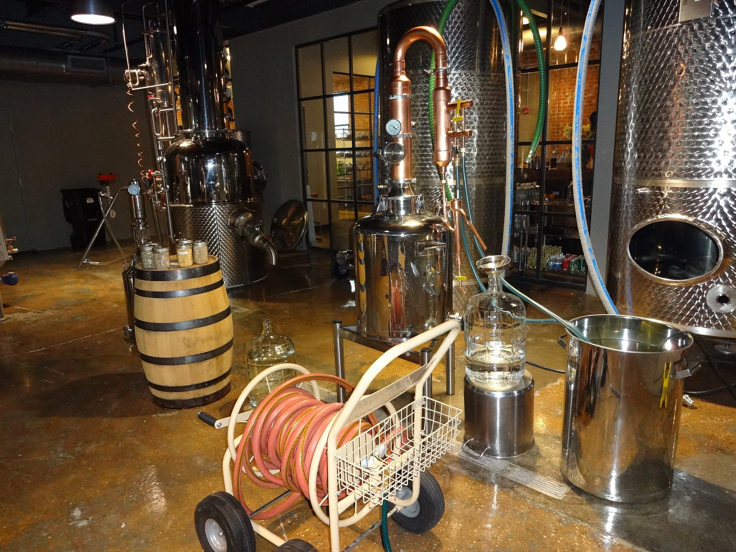 Wait until you see the location. Leather chairs, rich, deep dark hues, and barrels galore. It’s a sprawling, wide open space begging for a party. The staff in the tasting room is knowledgeable and friendly and know they are a part of a creative new movement. Take a tour of the space and just see how the distilling works; you’ll see a portion of the indoor herb and botanical garden used to experiment with and infuse their boozish with compelling new flavor combinations. We got to try a bite of a “buzz button” or sometimes called a “Sichuan button” from Brazil that starts out mellow on your tongue then is followed by a surprising zing.