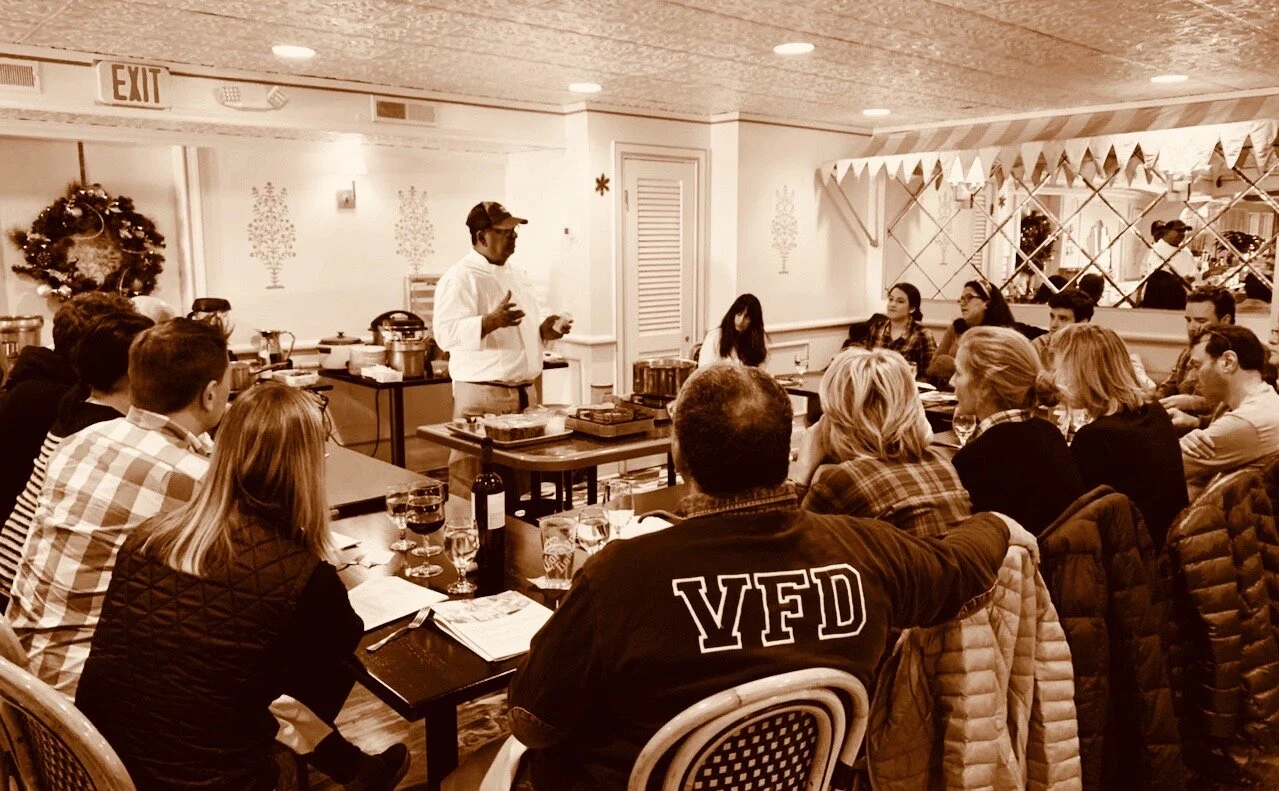 Features Indian Cooking Cooking Classes New Canaan New Haven Cooking Classes with Indian Master Chef Prasad Chirnomula, The Scholar of Spice Kristin L. Wolfe January 14, 2020 I recently watched an episode of David Chang’s Netflix series Breakfast, Lunch, and Dinner with comedian/actress Kate McKinnon. She told Chang about her first experience with Indian cuisine while on a field trip with her Girl Scout troop as a kid. She was astounded and physically moved; she couldn’t believe that her “compatriots,” as she called them, did not share her view. But to her, “It was sexual...it was life itself,” she said. “It filled me with boundless desire.”So, if that’s not enough of a pitch for Indian cuisine and all Chef Prasad Chirnomula does for it, I don’t know what is. He has made his mark on Connecticut and his fully packed restaurants, not to mention lists of people contacting him wanting him to set up shop, are proof that he is doing a lot right. In addition to blazing trails with restaurants (Thali, INDIA, Indian Kitchen) Chef Prasad has begun to make his fans swoon on a more intimate level with a regular cooking school series. What a special treat. I recently went to one of his Sunday classes and came away with a whole new passion for Indian cuisine. And believe me, I’ve already been a giant fan for years. (Jackson Diner, Queens anyone? I lived in Jackson Heights for ten years). Walking into the room in the back of his New Canaan restaurant, fifteen of us, students for the day, were greeted by an intoxicating medley of spices from an endless row of them on the table before the group. Imagine, if they smelled so amazing then, what happened to the room, and us for that matter, when you added a little heat to them in a pan; we were gone. [Remember what Kate Mckinnon said]. The cooking school was complete with discussions and questions about all the different spices; some known, some unknown. We talked about the various regions of Indian Cuisine; what particular areas are known for, etc. And rice, we spoke a lot about the almighty Basmati grain and the lengths people will go to find the right sort or cook it just right. With that, Prasad and his talented crew got to work. With an impressive stack of mis en place---there’s so much work to do just to prepare each dish, each recipe, the equipment and makeshift kitchen in the middle of the room to host a class of this size and length. We were there for four hours and counting; you can imagine how we went in and out of spice comas, and tasting along the way. Speaking of tasting, whether cooking at home or in a restaurant, Prasad says, “I’m in all your dishes,” you must taste along the way, and he showed us a little spoon he carries in his top pocket, like a scientist in his gear adorned lab coat.As with regular school, we were loaded up with materials, lists, maps, and tons of information. We had tutorials on the spices, talked about each recipe, went to the back kitchen to watch Naan puff in the tandoor ovens and learned how to cook with all our senses. That said, we’d be in trouble if there was a quiz at the end. We spoke about so many herbs and spices like peppercorns, chilies, cardamom, fenugreek, cinnamon, cloves, cumin, saffron, and one of the kings of health and color, turmeric. We passed around a curry leaf and Chef Prasad even affectionately said, “My British friends ruined curry,” because many of us think of curry for what might actually the spice blend garam masala. And wow, how many variations there are. Prasad passed around a mixture we made in classes, all toasty and gorgeous, then he passed around a container of the mixture from his mom. Well, now, who knew the notches could be turned up even more. Let’s “Chaat” About What We Made… Every dish had so many components it’s no wonder each bite was multi-faceted, layered, and mysterious. From spicy chicken Kababs and Chaat patties (fried potato, peas, cumin, ginger yogurt, and chutney); to Roti and Naan, Saag Paneer (spinach and cheese), Kori Gassi (roasted chicken stew/curry with coconut, garlic, and spices) to fish curry, and the light, but tremendously flavorful Biryani. Prasad explained that Biryani is India’s Paella; there are so many variations to this rice dish, but it is quintessentially Indian.As a unique and special treat Chef Prasad will be hosting a Gourmet Tour of India later this year (October) for a 14 day trek around Delhi, Agra, Jaipur, Udaipur, Mumbai and Goa. From visiting spice markets and bazaars to popular landmarks like Taj Mahal or Diwali celebrations, travelers will be able to expand their understanding of India’s stunning, vibrant culture. Stay tuned to the restaurant’s site for updated tour details. The next cooking class is scheduled for Saturday, February 8th at 1pm. Classes are $95 and include cooking session, recipes, and your meal. Tip & drinks not included. To make your reservation email chef@chefprasad.com asap. Chef Prasad Indian Kitchen 62 Main Street New Canaan 475.558.9558 www.chefprasad.com@chefprasad