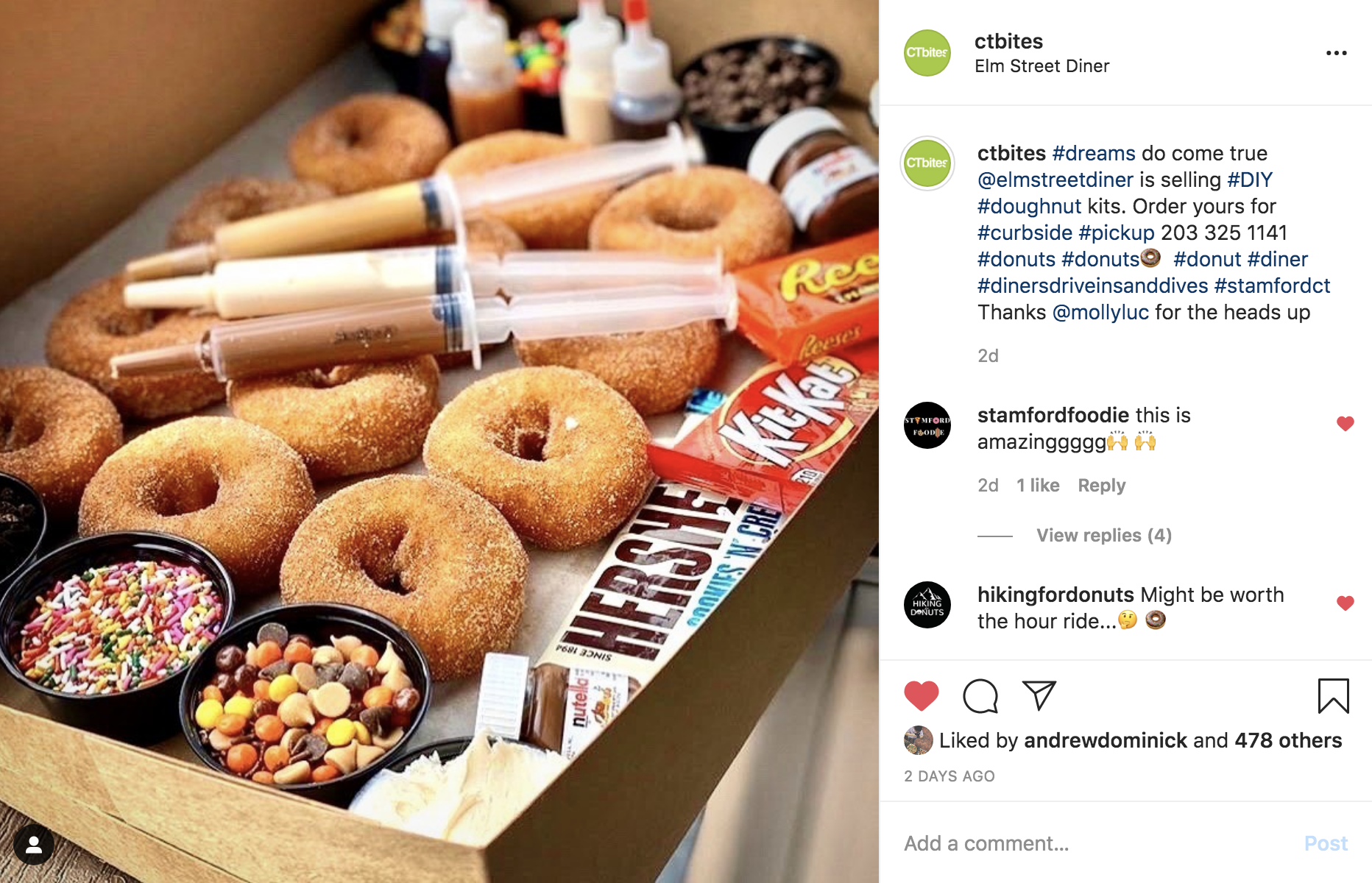 Features Ingredients Take Out Delivery Service Entertaining Catering Cocktails Pizza Dessert Homepage 35+ DIY Take-Out Meals, Desserts & Cocktail Kits From CT Restaurants Emma Jane-Doody Stetson April 05, 2020 After weeks of being cooped up at home, you may be looking at ways to pass the time and explore your creative side. Fortunately, Connecticut restaurants, bakeries, and caterers are here to the rescue with fabulous DIY options to bring their delicacies into your kitchen. Sweet tooths and kiddos can partake in all kinds of cupcake and baking kits while the 21 and over crowd can get all of the ingredients to make their own restaurant worthy cocktails. There are also pizza kits, pasta kits, and more. Check out our full guide here!Agave Grill, Hartford: Offering Margarita kits and taco kits! Both are $30 and come with all the fixings to make your own at home.Alina’s Cakes & Cookies, Fairfield: Their cupcake decorating kits come with 8 cupcakes as well as decorating supplies like buttercream frosting and sprinklesAt the Barn, Granby: Check their facebook page and social media platforms for information on their virtual happy hours.Barcelona Wine Bar, West Hartford, Stamford, Fairfield, New Haven: Barcelona Wine Bars are offering 3 cocktail kits, with the infusions & juices of their most popular mixed drinks for $8 - just add your own spirits. Each kit makes 4 drinks and comes with a recipe card for easy mixing at home. Each of these recipes uses a specialty vermouth/aperitivo, which you can buy bottles from Barcelona Wine Bar as well. Additionally, we have a gintonic kit for 1 ($12) that comes with a 50mL of Hendrick's gin, a bottle of fever tree tonic and an assortment of garnishes. We have house-made mimosa mixers for $4, currently offering Guava-Lemon-Lavender & Orange-Peach-Grapefruit. Lots of fun stuff!Bartaco, Westport, Stamford, Fairfield: Margarita carafe kit now available for take out and delivery (makes for 6 drinks)—includes: mini bottles of tequila, triple sec, fresh squeezed lime, agave + salt. Blind Pig Pizza, Hartford: Make your own Pizza Kits available all day every day! $10 includes 1 dough, sauce, cheese, 1 topping and Parmesan cheese.Bruxelles Brasserie, Norwalk: Gin Bowls To Go! Each comes with a bottle of European Craft Gin and Premium Tonics. Now you can enjoy the weekend even if it is at home! Just make your selection, ice your glass and enjoy!Cake Gypsy, Avon: Grab one of their adorable DIY Unicorn Cupcake Kits or choose one of their other themed kits, like Dinosaur or Puppy LoveCapitol Lunch, New Britain: For$20, the “Take home Cappy kit” comes with 12 uncooked hot dogs to grill at home, 12 buns, and a pint of their signature meat sauce.Conspiracy, Middletown: Check out their Facebook page to see their current selection of cocktail kits. Plus, they’ll also post a schedule for their virtual cocktail classes, in which you can pick up the ingredients and learn to make it with them online. Elm Street Diner, Stamford: They’re DIY Donut kits are INSANE! They come with their signature plain donuts and all kinds of frostings, toppings, and fillings so you can make your own creations. Call 203-325-1141 to order yours for curbside pick-up.Foundry Kitchen & Tavern, Newtown: Foundry is going back through their menus and archives remembering their favorite cocktails from over the years. They will feature a new one each week in their cocktail kits, which make about 14 drinks.Four Brothers Pizza, Westport: Now, you can get Make Your Own Pizza Kits from them.Fresca Tequila Bar & Grill, Colchester: In addition to their, DIY Margarita kits they are now offering Sangria Kits. Choose red or white. Each comes with a 16oz ball jar with fresh juice, a can of ginger ale, and a blood orange. Gaudi Tapas & Wine, Danbury: Have you ever wanted to learn to make paella? Now you can- online! For $55, they will deliver all the ingredients and a paella pan to your house and lead you through the process on Zoom!Grano Arso, Chester: A pound of fresh spaghetti, fettuccine, or rigatoni crafted by chef-owner Joel Gargano serves as the base of their Pasta Kits. Kits, which run from $24 to $30, also include your choice of sauce and garnishes like basil, pecorino or parmigiano Reggiano cheese. A instruction card will help you make a restaurant worthy meal. Harry’s Bishops Corner, West Hartford: Make your own pizza kits are available for takeout at HBC! Kits include dough, sauce, cheeses, and pepperoni as an option or add your own toppings at home. 12” Cheese $10, 12” Pepperoni $11.50, and 12” Gluten Free Cheese $14.Hop Haus, Plainville: Order the Haus Mule Kit, which includes 200ml Titos Vodka, 2 Cans Gosling's Ginger Beer, 2 Limes, and 2 Titos Cups for $23. Be on the lookout for their grill kits too, which are coming soon.Jesup Hall, Westport: Get the ingredients to make their Buzzed Bee and Garibaldis cocktails at homeKawa Ni, Westport: Get the goods to make Tokyo 75, Geisha, and soon to be sake bombs La Figata, Granby: Get their DIY pizza kits - 2 for $12! Instructions are included and they’ll post a video of theirr Pizza Chef Zach showing you all of the tips and tricks to making a perfect La Figata Pizza.Luann’s Bakery, Ellington: Now offering a DIY cupcake kit! They are open for curbside pick-up and local delivery.Luna Pizza, Hartford: Their Take & Make Pizza Boxes are $10 each and include dough, sauce, cheese, and three toppings of your choice. Call 860-233-1625 for takeout, curbside pickup, or delivery!Match, Norwalk: They are teaming up with SoNo 1420 to bring you a full bottle cocktail kit including mule cups and mix for the whole bottle. Moneta Moments, Windsor: They have cookie dough you can bake at home, cupcake kits and cute cookie kitsMystic Cheese Company, Mystic: Arrange your own charcuterie board with Mystic Cheese Company. Their kits include a half or full pound of Mystic Cheese and additions like salami, crackers, jam. They cost $20-$40.Pasta Cosi, Branford: Get