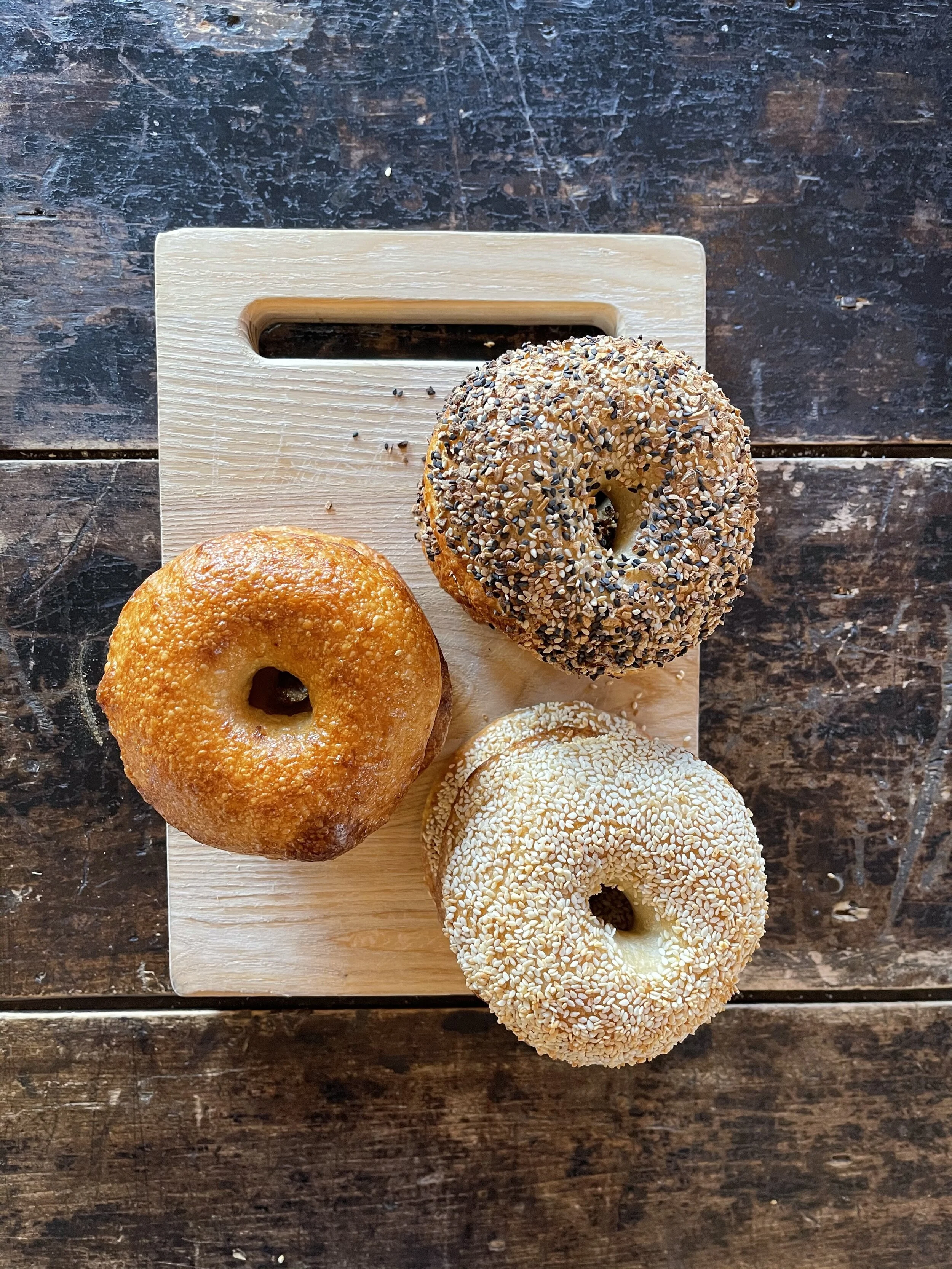 Features Restaurant Bagels Pop-Up Breakfast Carbs Take Out Norwalk Homepage Badass Bagels: A Pandemic Pivot Yields Wild Yeast Bagels At Sugar & Olives in Norwalk Amy Kundrat January 28, 2021 If in times of crisis we tend to go back to our roots, then in times of pandemic I suppose it’s only fitting we reach back to our biblical roots. Sourdough may have been discovered by the ancient Egyptians but it has been perfected by Jennifer Balin of Sugar & Olives in the form of Badass Bagels. These naturally leavened bagels have a light crunch on the outside, light as air and chewy with a slight tang on the inside. Badass Bagels come in six varieties, including sesame, poppy, smoked sea salt, everything, caraway, and plain, as well as an offering of unique cream cheese flavors including green goddess and pimento scallion—these sourdough bagels may become your new weekend obsession. So how did it all start? Soon after Jen was forced to close Sugar & Olives in March 2020 due to COVID-19, she turned to the ritual of sourdough bread baking, making three loaves a day, seven days a week during the months of April, May, and June. She ended up mailing loaves to friends and family all over the country. After perfecting her crumb, she decided to take her new hobby to the next level and try her hand at bagels, but not just any bagel, a sourdough bagel.A quick aside on sourdough. Sourdough refers to the type of starter used to make the bread, or in this case, a bagel. Unlike commercial yeast, sourdough uses a levain, often referred to as a starter, or a mother, which lends its naturally leavened offspring a much more complex and nuanced flavor that unlike is name, isn’t necessarily sour. I found this to be a helpful article debunking my assumptions of sourdough. While Jen had harnessed the ways of wild yeast and perfected her sourdough bread, she had yet to learn how to construct the perfect bagel. If baking bread is a loose process, bagels are a more structured endeavor. They are handled much more and require about 50% hydration. It took Jen several months to perfect her recipe, which includes a high-gluten non-GMO flour and a very active rye flour-based starter. The bagels that she sells on Thursday afternoons and Saturday mornings begin several days prior when Jen begins feeding her starter and then making the levain, and then undertaking the 7-hour dough-making process of proofing, shaping, boiling, and finally, topping and baking. The final result is several hundred Badass Bagels she will sell by pre-order to her customers twice a week. All orders are placed by text to the dedicated “bagel hotline.” “Welcome to bagel land is the text reply you’ll get as a first-time customer. While the process is long and labor intensive, Jennifer has enjoyed reconnecting with customers and meeting new ones, and has found much joy in connecting directly with people customers through her bagel hotline. Follow Badass Bagels on Instagram or visit sugarandolives.com to check out their latest bagels and unique cream cheese flavors. Order through 203.816.0028.Bagel pickup is usually Thursdays from 4-6 p.m. and Saturdays from 10 am to 12 noon through a pickup window at Sugar & Olives on Lois Street in Norwalk.