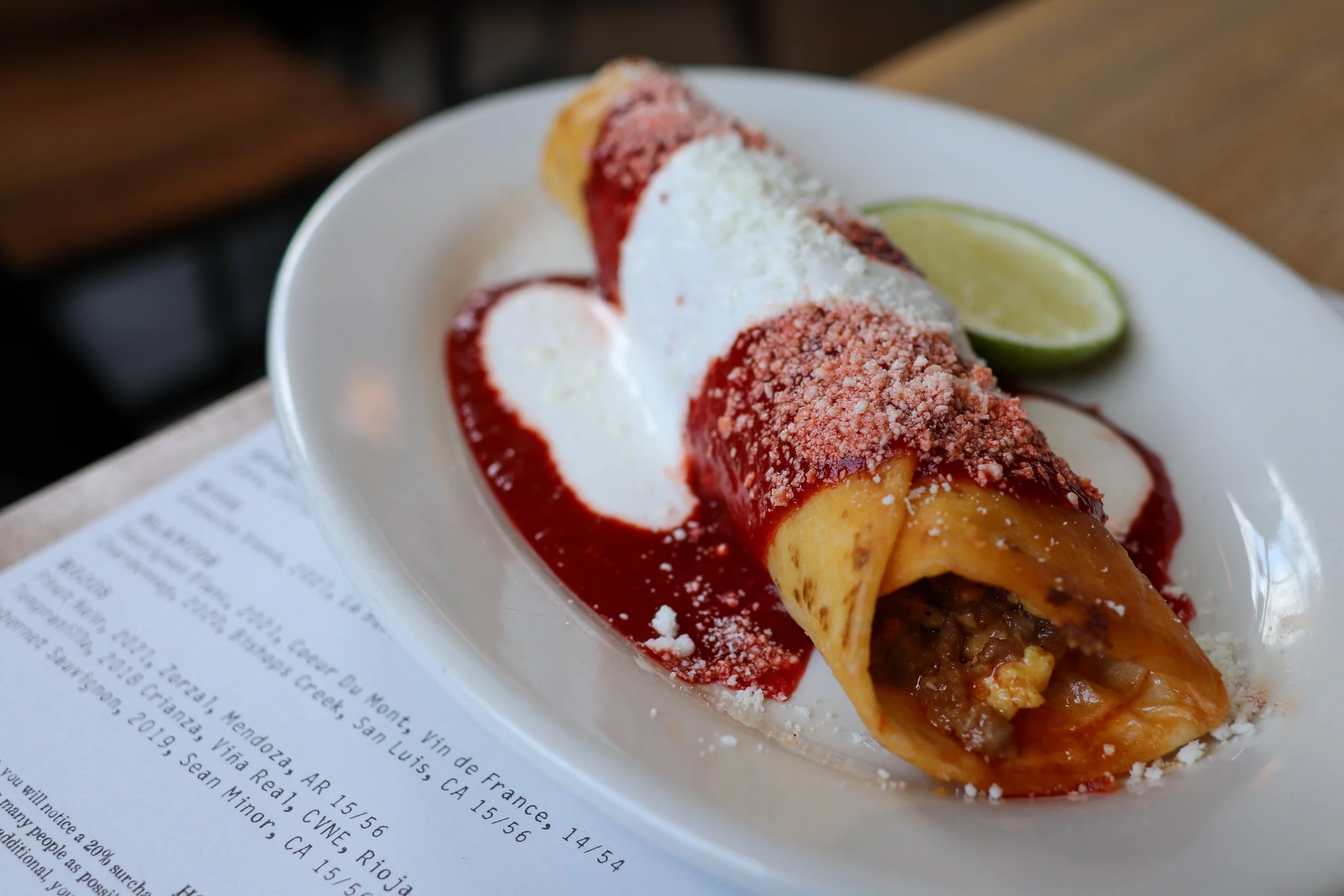 Interview Features Restaurant Westport Mexican Homepage Brunch Don Memo in Westport Launches Brunch! Andrew Dominick January 22, 2023 Take a fast food style breakfast burrito/wrap and make it better! Just under three years ago, our esteemed founder, Stephanie Webster, introduced CTbites readers to Bill Taibe’s Don Memo. Since the summer of 2020 when Don Memo opened, it has not only been a hit with locals and out-of-towners, but Taibe’s interpretation of authentic Mexican cuisine with ingredients that are seasonal and locally sourced has gotten its share of acclaim as a 2021 CRAzies nominee for Best Restaurant (West Region) and a Restauranteur of the Year win for Taibe. This year, there are big plans for two of Taibe’s restaurants, Kawa Ni and Don Memo, as they’re set to expand in Denver. While Kawa Ni will be the first to open in the Mile High City, Taibe hinted that Don Memo will hopefully follow in the latter half of 2023. But the Denver expansion isn’t stopping Taibe’s restaurants from growing in Westport. Kawa Ni—if you haven’t heard—has both a bigger bar and twice the dining room space. As for Don Memo? It’s open an extra day with another day, Tuesday (because yay for Taco Tuesday!), coming soon thereafter when the weather calls for tacos, tostadas, and palomas on the patio. What’s going down on Sundays at Don Memo is…BRUNCH. And it’s not only offered on Sundays, but Fridays and Saturdays as well. On the left is Don Memo’s version of a tequila sunrise, made in the spirit of a garibaldi. That fluffy OJ effect is achieved by juicing the whole orange. Pictured right is a Carajillo, a common Latin American espresso beverage, sometimes served hot. The liquor that it’s spiked with varies from country to country. In Mexico, a Carajillo is typically a blend of espresso and mezcal, coffee liqueur, or Licor 43, a Spanish spirit that provides citrus and vanilla notes. At Don Memo, they serve is cold and rock with Licor 43 for a smooth, coffee, almost liquified milkshake-like result. “It has always been a plan to open up Sundays,” Taibe says. “We got to a point where it never felt right to open on Sundays because of staffing issues. Now going into winter and given how strong The Whelk and Kawa Ni are doing—Kawa Ni in particular—we thought it’d be a good time to shift to a Sunday with Mondays and Tuesdays off. We’re still on a five-day work week but could never do a sixth because of staffing. Come April or May, we’ll see where we’re at and open on Tuesdays. Opening on Sunday allows us to slowly get out wings and get the staff comfortable.”Taibe then joked, “It’s amazing how religious everyone gets when it comes to coming in on Sundays!” he says. “Everyone all of a sudden goes to church. But seriously, first and foremost is the health and well being of our staff. We need them to be healthy people with their minds right. We continue to work on staffing and building people up as to discover new leaders in the company.”And that’s the reason or reasons, if you will, for Don Memo finally breaking out Sunday brunch to join Friday and Saturday in serving Mexican dishes that are yolky and savory, some hangover cures, and one sweet, epic “pan” cake. The reason you’re all here, though, is for this brunch preview we’re about to provide. Taibe explained the jalapeño tamales en salsa as a dish he’s seen many times on his travels to Mexico as cut up chunks of masa tamales tossed into salsa and simmered. Toss a sunny egg on top and you’ve got brunch. “ We don’t want to get rice and beany here,” Taibe says. “But in Pueblo when I ask around about what everyone tends to eat for breakfast, it’s rice with refried beans and an egg on top. That’s delicious when I’m drunk at home, but I can’t sell that in this restaurant.” Pozole rojo, a classic Mexican soup that sometimes uses green chiles aka, pozole verde, but in this case red chilies equals “rojo,” and instead of pork as the protein, Don Memo’s uses tender, slow-cooked duck, plus traditional hominy, sliced raw radish, shredded cabbage, and a lime wedge if you’d like some acidic brightness. Don’t be afraid to break up those homemade corn tostadas in your soup either. Your eyes aren’t deceiving you. This is a michelada. And it’s one of the best ones THIS michelada lover has ever had. The chunky Bloody Mary mix or store bought tomato “stuff” isn’t in this one. Taibe explained that in Mexico they don’t really drink that mix, mixed with beer. A little spicy chile arbol, Worcestershire sauce (salsa inglesa), lemon, Modelo on draft, and a Tajín rim make for a refreshing drink. There’s a whole section of chilaquiles on the menu, four different ones, in fact. But if you’re wondering about another classic in huevos rancheros, they’re coming at some point very soon. “We’re till trying to figure out a huevos rancheros,” Taibe says. “We’ve been focused on getting Kawa Ni ready in Denver as opposed to being focused on a bunch of new dishes at Don Memo. The menu is so balanced so I don’t know what’s missing here. It seems like an easy dish. Classically it is. But it’s literally salsa with warm tortillas and a sunny side up egg on top. I don’t want it to be soggy or gloopy. We might reimagine it as a tostada of sorts. It should be on the menu in the coming weeks in some form. If something isn’t to our standards it doesn’t make the menu.” Yes! The regular cocktail menu is available during brunch, including all the margaritas and palomas that general manager Branden Hahn says are “Don Memo’s lightest, most refreshing, and proudest drinks on the menu.” In back of this raspberry-lime marg is the “Tia Mia,” (rum and mezcal, citrus, almond orgeat) Don Memo’s take on a Mai Tai. If you want something hefty, appropriately greasy, cheesy, and ultimately soul satisfying, this quesadilla stuffed with grilled crisped carnitas, melted pepp