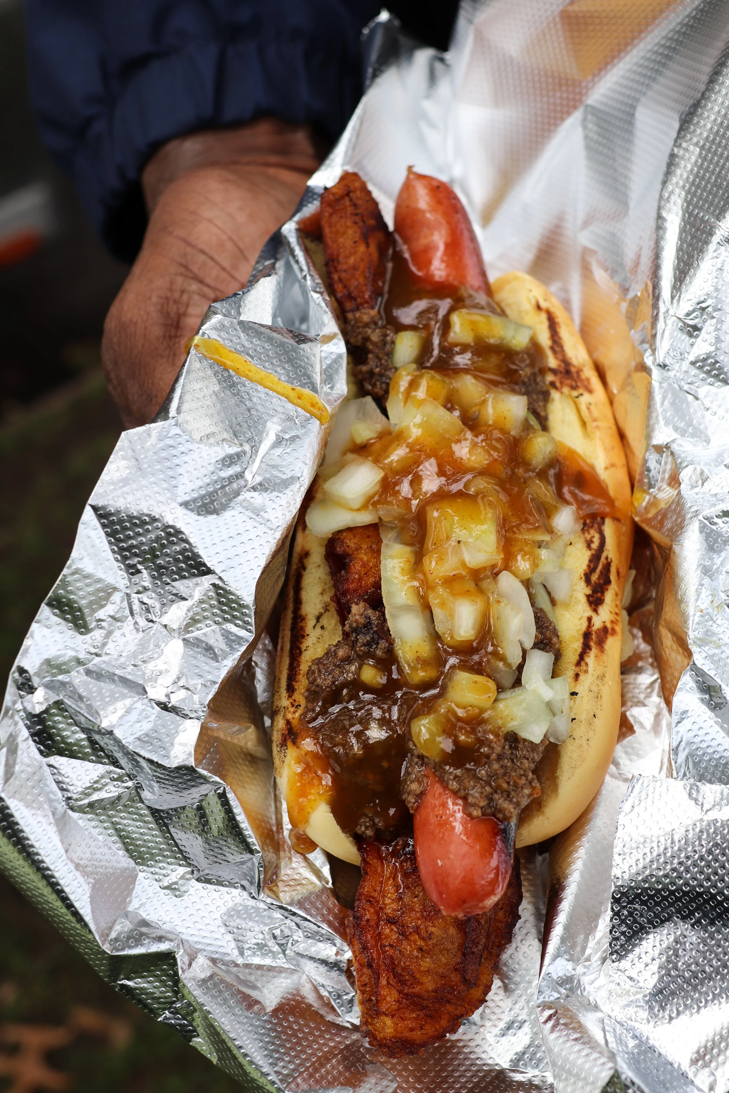 Features Interview Jamaican Hot Dogs Burgers Food Truck Norwalk Homepage Interview Craven Dawgs & Ting Reemerges in Norwalk w/ Jamaican Inspired Hot Dogs + Burgers Andrew Dominick October 25, 2023 Darlene and John just celebrated 20 years of marriage this year. The growing popularity of their food trailer will result in a delayed anniversary celebration. “We had plans and wanted to do something, but we were out here working,” Darlene says. “We went home and slept!” Swing by the Norwalk Town Green on any given day, and you’ll see at least one food truck parked out there. If you meandered over there this summer, you may have noticed a silver trailer that’s about as big as your smallest clothes closet. It’s also where you’ll find Darlene and John Banks slinging Jamaican…hot dogs and burgers?! Don’t worry, I’ll explain that part in due time. But are they new? Not really. And they also sort of are.As Darlene (aka, Chef Darlene B) tells it, Craven Dawgs & Ting was a brand over a decade ago before they pulled their trailer into Norwalk. “We started about 10 and a half or 11 years ago over by Bridgeport Hospital,” she says. “It was perfect for us at the time. We were right outside (the hospital). They were about to remodel. I mean, we didn’t know that at the time, but that’s probably why they let us stay there!”John chimes in jokingly, “They knew they were gonna kick us outta there when it came time!”When construction on the hospital began, Craven Dawgs was left without a space for their trailer and they didn’t feel comfortable going elsewhere, stating is was tough to find another city in Fairfield County that allowed trailers at that particular time. And despite some fanfare—they were on several web shows, and they made it on Holy & Hungry with Sherri Shepherd on The Cooking Channel—they grew discouraged and put Craven Dawgs on the shelf. Fast forward to July of 2023. Craven Dawgs is back out there and making waves once again—just ask our friend, The Vulgar Chef, as this was one of his stops on his “The Great Glizzy Tour” adventure. “We put it on the shelf for 11 years,” Darlene explains. “We did a lot of things in that time. Working for others, working for myself, did a little catering, teaching cooking classes, things like that. It wasn’t until April or May this year when I felt like the holy spirit was telling me to come back out. I was disappointed in myself because I wanted to get out earlier in the season, but I couldn’t seem to get it done until July. We’ve been getting a lot of rave reviews and encouragement and it’s awesome.”So, what are those rave reviews about exactly? Well, Craven Dawgs, in short, is all about hot dogs and burgers with Jamaican inspired toppings. “OCHO RIOS” “The Don Dada” is a beef hot dog with a snappy natural casing (Darlene won’t divulge which dogs she uses, and we respect that!) with sweet plantains stuffed in the bun and topped with their own homemade jerk chili. Some of their other dogs are the “Ocho Rios” (jerk chili, sweet plantains, chopped onion, spicy mango mustard), the “Junction” (jerk chili, sweet & spicy onions, curry potato salad), and the “Kingston” (homemade baked mac & cheese, sweet & spicy onions, jerk chili) that Darlene says is becoming one of the more popular dogs along with the “Ocho Rios.”How Darlene came up with the idea to do a menu of hot dogs and smash burgers has to do with being Jamaican that was raised in the states. “This isn’t at all typical of Jamaican fast food,” she says. “It’s me on a plate. Being Jamaican-American, you’re always being told that you’re not quite Jamaican and you’re not quite American. It’s like, where do I fit? I can cook Jamaican food, but do I really wanna come out here and do that? People would be like, ‘What part of Jamaica are you from?’ Well, I’m not. I was born in Canada and grew up in America. I wouldn’t be able to do the explanation and all of that. What can I do that represents who I am? Hot dogs and burgers. And I love sweet plantains. The sweetness of the plantains against the briny, saltiness of the hot dog, and the spicy, sweetness of our chili.” Spicy beef patty on cocoa bread. I’m weak. Those who are looking for something full-on Jamaican—along with your one or two Craven Dawgs, of course—should stop by Wednesdays and Fridays when flaky homemade beef patties (on cocoa bread if you want it) are available. As far as the future, John mentioned that they hope to be out there into the winter as long as it’s not too cold, and when asked about expansion to a possible storefront, he says, “You think about it, but a trailer or truck can do well as well. Maybe a truck.” For now, grab your Craven Dawgs, smash burgers (that I’m certainly going back to try), and patties Tuesday through Saturday, 11 – 4. 8 Park Street; Norwalk 203.604.7378; cravendawgs.comInstagram: @cravendawgs