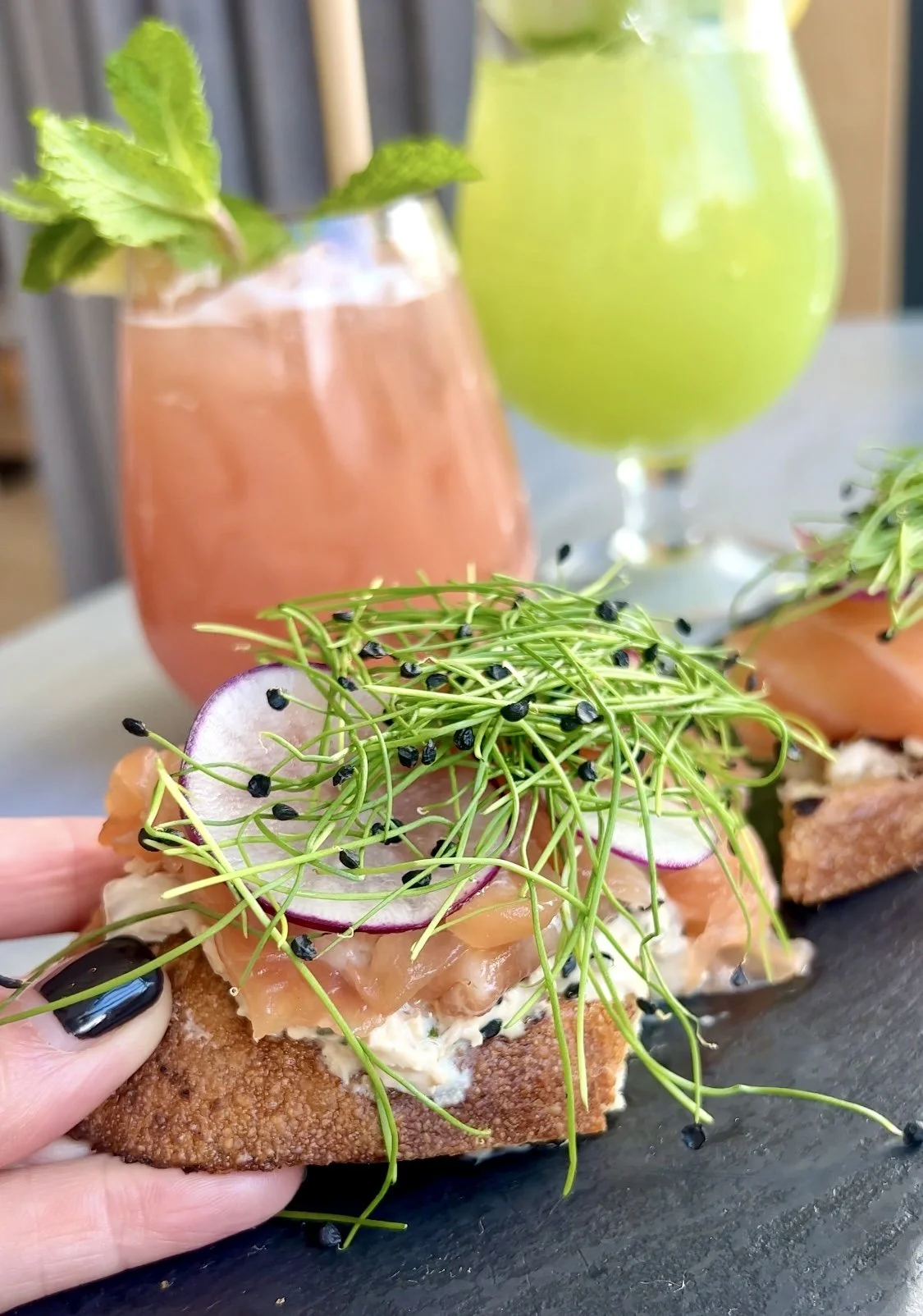 Restaurant Greenwich Lunch Asian Food American Let's Do Lunch at The Cottage in Greenwich: Seasonal Menu Drop Jessica Ryan October 27, 2023 When looking for a place that’s special The Cottage often tops the list of recommendations with its focus on excellence and elevated dishes that that are creative, stunning and delicious. The Cottage in Westport has been a staple of the restaurant scene since its inception in 2015. In 2022 Brian Lewis opened a second location in Greenwich and it has taken the restaurant scene there by storm. While the vibe in Greenwich is different with a more casual setting, it offers something that Westport doesn’t: lunch. And the lunch scene in Greenwich is bustling. The lunchtime menu is streamlined but not at all limited. In fact it’s really quite varied considering its size, featuring dishes that appeal to a wide range of tastes and diets. Diners will see a few items crossing over from the dinner menu, but most of the dishes are exclusive to lunch, like Tuna Poke, Citrus Cured Salmon Tartine, BLT, Spicy Squid and Pork Belly, Teriyaki Salmon Power Bowl, Grilled Chicken Paillard Caesar Salad and the Veggie Burger. Just in time for fall, guests can enjoy the addition of both the Pho Lunch and Autumn Lunch.The Cottage in Greenwich boasts a lively lunchtime crowd which includes businessmen, young professionals, young mothers, and Ladies who Lunch. There was lovely buzz in the air from the lively conversation and the occasional ding of silverware hitting the plates. Mocktails We settled ourselves into a little sunlit corner right on the Avenue and looking out onto all the passersby getting on with their daily routines. As the sun shone in with slightly overcast skies, we couldn’t help but notice that the lighting was absolutely perfect for our photographs.Whether it’s the end of the week, or a special celebration and you’d like to enjoy a little libation, there’s a nice selection of wine, beer and a few choice craft cocktails for guests to enjoy. For those wanting something a little special without the booze there are a couple of lovely Mocktail options as well. While waiting, we decided to try the Cool as a Cucumber, with cucumber juice, lemon and ginger which was mildly sweet, delightfully refreshing and had a subtle kick from the lemon and ginger. The Guava Me Kidding Me with guava, mint, agave and lime was smooth and subtly sweet. We started with a Whipped Carrot Hummus, and Kabocha Squash Tempura. The hummus with harissa, sunflower, sesame crunch, had so many layers of flavor. The natural sweetness from the carrot itself married wonderfully with the smokiness and subtle spice from the harissa. The sunflower and sesame crunch added a lovely hint of texture and served with warm, grilled pita triangles to scoop up all goodness. I knew I had to save room, but I really wanted nothing more than to dig in and wipe that plate clean! This was a truly special dish. The Squash Tempura arrived next. Sesame salt, and a white miso aïoli rounded up the flavors of the naturally sweet squash enhanced by the sea salt. The crispy-crunch factor was sublime, and seemed almost as though it had been double dipped, and double fried. We learned that this was not the case and that the secret to the incredible crunch was rice flour. Both of these dishes are incredibly special and I implore you to order them while you can while they’re still in season and on the menu. The Citrus Salmon Tartine with Horseradish Crème Fraîche on grilled sourdough was decadence without being decadent. Served on thick slices of sourdough with a perfect crunch to chew ratio, the citrusy salmon is balanced by the cream. Add some radish for crunch, sprouts for green and black sesame seeds, and this totally satisfies that sandwich craving. The Spicy Squid and Pork Belly was a wonderful surprise and this one is so hard to write about for fear that I don’t do it the justice it deserves. I’ll admit that I really didn’t know what to expect here. First you have a unique combination of what I might describe as some esoteric ingredients with Kumquat Kosho, cashews, sesame, and a “squid caramel” which together create wonderfully flavorful dish. Kumquat Kosho is a traditional Japanese condiment made from kumquats and chili peppers that results in a paste and known for its unique combination of citrusy and spicy flavors. The “squid caramel” finds its roots in Vietnam. This savory and sweet “caramel” consists of squid that has been caramelized and seasoned. The result is a wonderfully sweet, salty, umami flavor. These vibrant flavors and textures along with the pork belly find themselves perfectly ‘at home’ in a lettuce wrap made with the accompanying lettuce leaves. This was nothing less than sublime, a little party on my palate! The Autumn Lunch was a fun treat for those who want a little bit of everything. Lewis’ version of a Bento box but served on a tray… A cup of finely shaved apple and fennel salad, topped with dill also plays on the sweet and salty balance as does the butternut squash toast that was incredibly decadent with apple butter, juxtaposed by salty feta and crunchy pepitas. Lewis masters the craft of balancing so many flavors and textures together. The Mushroom Cappuccino, which, to our surprise, not a cappuccino at all, but a wonderfully flavorful and aromatic mushroom soup that captures the season as well as the earthiness and complexity of the mushroom. This was pure comfort in a cup! Their brand new “Pho Lunch”, Vietnamese chicken noodle soup, with nuoc cham (a Vietnamese dipping sauce), scallions and Bok Choy offers diners another opportunity to sample Lewis’ love for and appreciation for Asian flavors in the ultimate comfort food for fall. The Teriyaki Salmon Power Bowl is one of the more straightforward items we enjoyed, featuring a piece of seared salmon served with wilted spinach, fennel, brown rice and red quinoa with a brown mustard smear on the p