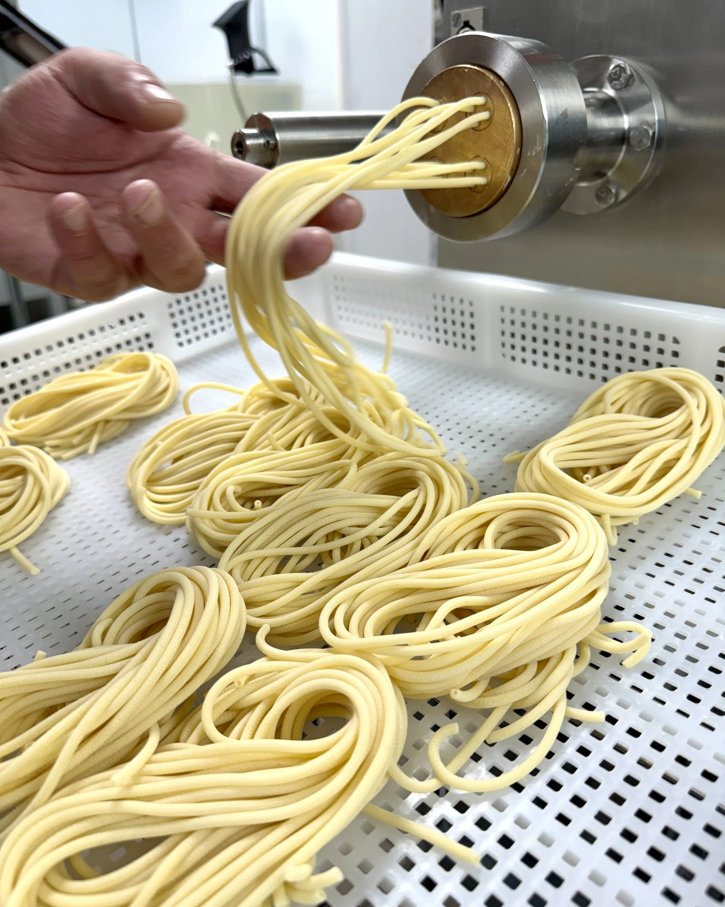 Restaurant Westport Greenwich fresh pasta Pasta Italian Specialty Market Lunch Opening Homepage Il Pastaficio in Westport: Artisanal Pasta Market Launches Dine In Restaurant...And It's Outstanding Jessica Ryan October 31, 2023 In 2018 I headed to Cos Cob to meet Frederico Perandin and his wife Anissa Nouhi at the location of their brand new restaurant, Il Pastaficio, adored by all in the Greenwich area. Born and raised in Padova, Italy, the founder of a successful Italian advertising agency, Federico Perandin moved to Greenwich in 2016 where he immediately fell in love with the town, the scenery and the lively international community.In 2022 Perandin and Nouhi found a second home for Il Pastaficio in Westport. Initially it was to serve as a market of sorts with its take out menu, but that changed when, after closing for a month over the summer for some light construction, a new sit-down eatery was born. The new restaurant is best described as rustic chic. Its elevated casual atmosphere offers guests a comfortable setting dressed in pale yellows and woods in which they can linger comfortably over Frederico’s authentic recipes, steeped in tradition alongside a healthy serving of Prosecco and conversation. Il Pastaficio’s artisanal pastas are made from natural grains and are all imported from Italy to further embrace authenticity. Il Pastaficio’s talented chefs have all worked in Italy for restaurants with multiple Michelin stars. In addition to its well-known fresh pasta selections, the Westport location now offers a variety of delicious appetizers and main courses; all paired to a curated list of Italian wines and cocktails. I was delighted to return and see Frederico and Anissa again all these years later, and equally as thrilled to try some of their new dishes. We began with Le Polpette di Melanzane. Here we have what Anissa described to me as an elegant deconstructed eggplant Parmesan – but it’s really so much more. A stunning deep-fried eggplant ball sits on a bed of fresh pomodoro sauce with basil and Parmesan chips. The balls were delicate, melt-in-your-mouth tender and brimming with flavor. I loved the concept and presentation of the deconstruction. This was followed by the “Gnocchets” – Gli Gnocchi Fri tti de Il Pastificio, the result of an experiment conducted at their home kitchen. “What would happen if you fried a gnocchi?” Pure delicious decadence is what! We loved these small tender potato-filled bites with their newly-found crispy exterior. This is a great and fun appetizer to get the table. Everyone grab a fork and dig in! Next on to the Mains. “Il Vitello Tonnato Sous Vide” This classic and unique dish features thinly sliced veal cooked sous vide, delicately arranged on a plate with fried capers and a special sauce made from Italian Tuna which is then poured onto the meat. The sauce’s saltiness adds a wonderfully distinctive flavor profile to the subtly flavored veal. We thoroughly enjoyed this dish with its traditional and complex flavors. Courtesy Food Network Did I forget to mention that Il Pastaficio was featured on the Food Network’s Diners, Drive-Ins and Dives? The program which now focuses on a greater variety of restaurants and Frederico and Anissa were delighted to have their restaurant showcased. Guy Fieri joined Frederico and Anissa at their Greenwich location and Frederico prepared the Bigoli con Ragund d’Anatra for him to try. This dish is one that’s quite common in Veneto. Bigoli is a coarse, rustic, spaghetti-like pasta and here it is combined with a wonderful duck ragu. Another dish that Fieri particularly enjoyed was the Lasagna al Tartufo. This is an Il Pastaficio original creation, made with truffles and mushrooms and is absolutely out of this world. It’s decadent, rustic in the way that lasagnas tend to be, but it’s also refined with an elegance that would make it perfectly acceptable to serve at an elegant dinner party. Watch the episode if you can, and you’ll see how clearly (and genuinely) Fieri enjoyed these two dishes. We were privy to something incredibly special that Fieri wasn’t – the Linguine al Limone con Caviale Siberiano. Here we have an incredibly special linguini made with lemon zest, dressed in a divinely fragrant black tea Alpine Butter punctuated with Siberian Baerii Caviar – an entire tin of caviar. The caviar arrives to the table, unopened and on ice. Then the beautiful pasta arrives, the caviar is then opened and you can add as much of the delicacy you want to your serving of this spectacular dish. Yes, this dish does come with an elevated price tag, but considering the uniqueness of the dish as well as the fact that you get an entire tin of caviar, it’s certainly well-worth it. It truly is divine, not to mention the experience of it alone… Frederico emphatically suggested that we end our visit on a sweet note. A little dish of gelato would serve as the perfect palate cleanser. We tried the pistachio as well as the strawberry. The pistachio was nutty and velvety and the strawberry tasted like fresh strawberries and cream and both tasted like I was wandering through an Italian piazza in early June! It seems as though pasta isn’t the only thing pumping through Frederico’s veins… it seems as though this man makes a mean gelato as well! But that might just have to wait for another story. The good news is that you can find his gelato, Figo, in Westport. Want to catch the episode of Diners Drive-Ins and Dives featuring Il Pastaficio? It’s called “From Chicken to Noodles” and you can find the air times by clicking on the link. There, you can also find Frederico’s recipes for the Bigoli con Ragund d’Anatra as well as the Lasagna al Tartufo.Il Pastaficio35 Post Rd E, Westport, CT(203) 557-6299@il.pastaficio
