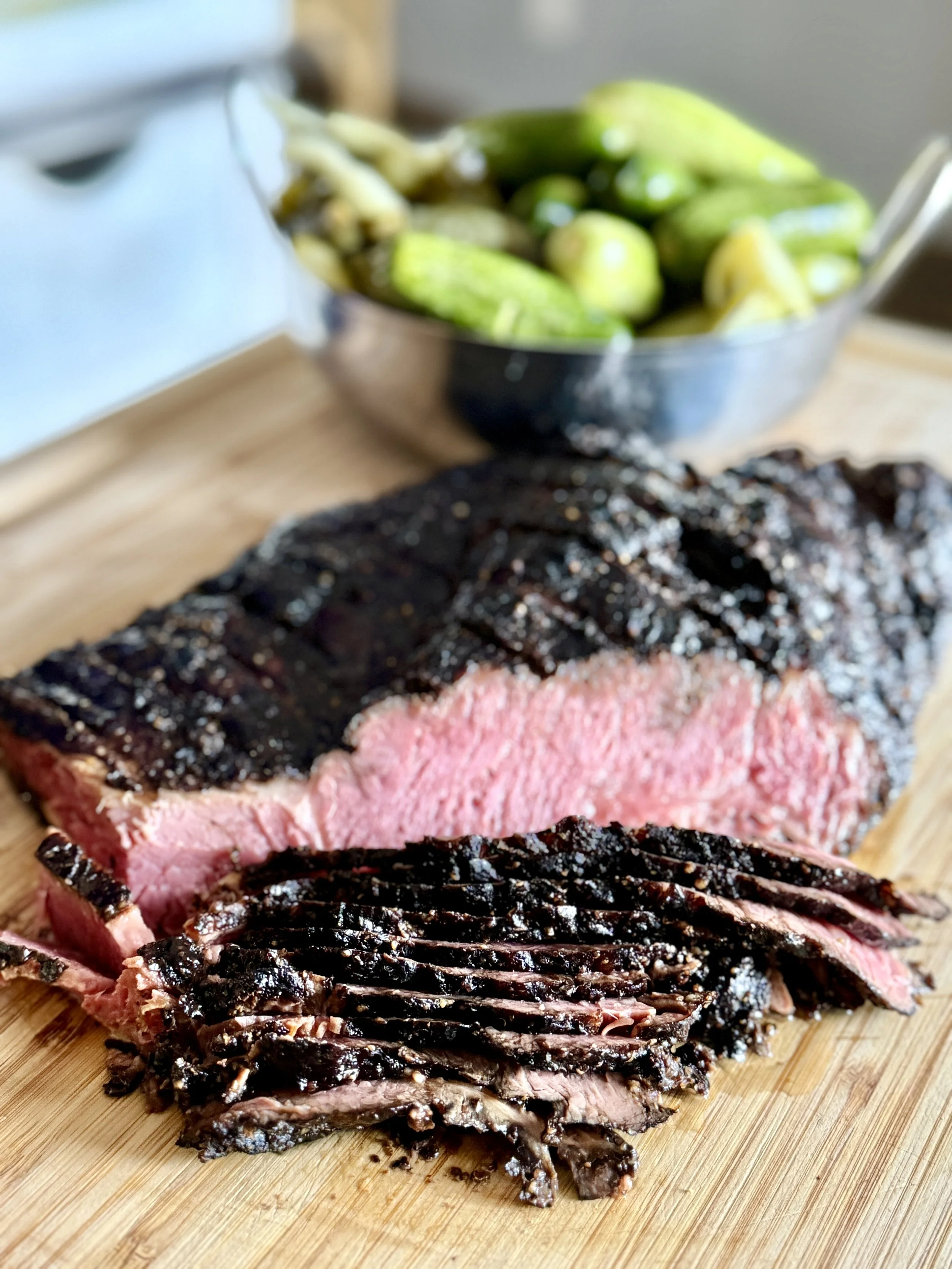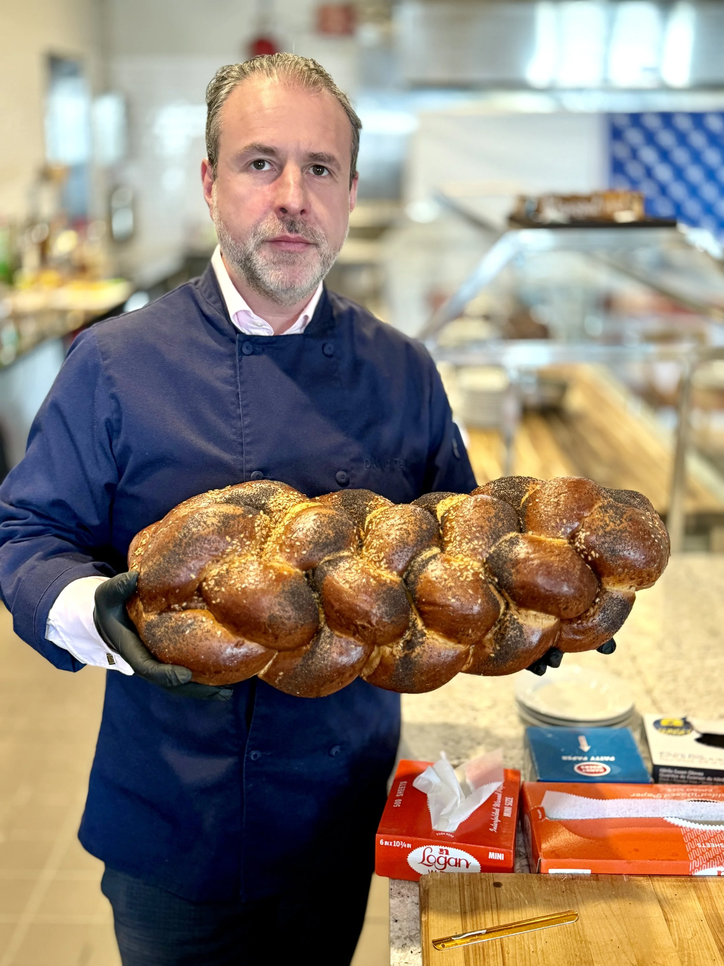 Restaurant Jewish Holidays Jewish Deli Deli Sandwich Lunch Greenwich Opening Delivery Homepage Greenwich & Delancey: The Best New York Jewish Deli is in Greenwich, CT Chloe Zale January 07, 2024 Chef David Teyf is poised for his closeup. Two years after unveiling his elevated kosher delicatessen, Greenwich & Delancey in Cos Cob, Teyf is confident that he has perfected his vision. "I want to be the first place to take this type of food to a Michelin level," he declares with determination. Drawing on his classical culinary training from Le Cordon Bleu Paris, he seamlessly applies haute cuisine techniques to Eastern European Jewish classics with standout results, like his meticulously crafted pastrami (carved tableside with the reverence normally accorded to prime rib), pillowy pelmeni (chicken dumplings), and the perfect bowl of matzo ball soup. Refined service accompanies Teyf’s outstanding cuisine. Hot towels, amuse-bouches, and a complimentary closing shot of fresh ginger tea make his patrons feel cared for. Teyf's goal is clear: to offer not just a meal, but an unforgettable dining experience. “It’s important that every guest at the restaurant feels like they’ve come to your home,” explains Teyf, emphasizing the use of the word "guest" over "customer" or "diner." Language is important to Teyf, who employs the word “Delicatessen” in describing his restaurant to ensure that guests leave “wowed”' relative to their expectations. Entering Teyf’s domain, a colossal challah in the pastry case sets the stage for the delights to come. “Two and a half pounds,” Teyf boasts, “and made completely from scratch.” As are most things on the menu, including the other breads and pastries (the fantastic, moist babka is also mammoth), his charcuterie program featuring both beef and vegan products, and chicken broth stewed for hours with “a tremendous amount of bones.” The food here is made with both love and painstaking attention to detail, necessary in achieving the high standards of kosher preparation he upholds. A rabbi is even onsite at all times to ensure adherence to kosher law. The undisputed star of the menu is “Chef David’s Signature Pastrami.” “The restaurant needs to be known for something,” he explains, and while homemade smoked fish is his specialty at his restaurant LOX at the Museum of Jewish Heritage in downtown NYC, pastrami is the focus here. In an ode to his brother Gena, who’s been “obsessed with pastrami since childhood,” Teyf executes a labor of love that takes the better part of a week to transform a tough, fatty cut of beef into the most succulent pastrami we’ve ever tasted. After being cured, rubbed in a special spice blend, aged in a sealed wooden cabinet, smoked, and then steamed, a gleaming slab of pastrami emerges on a wheeled cart under a glass dome. Once at the table, the cloche is swirled aloft to release a dramatic puff of fragrant smoke. The meat is then hand-carved with a foot-long slicing knife into slivers that are so tender, they require no utensils (this is not an exaggeration; my 7-month-old baby happily devoured the leftovers I brought home, and he has no teeth). Alongside the pastrami come the necessary accompaniments: three varieties each of pickles (half sour, sour, and tomato) and bread (challah, rye, and Russian brown), plus an abundance of spicy brown mustard. If you don’t want to spend $78 on the tableside preparation, half its price will procure a sandwich heaped generously with the same meat. Teyf’s familial ties go deeper than just the pastrami. He runs his operation with his two sons – Elan and Tollan, also Cordon Bleu-trained chefs – whose names appear throughout the menu in attribution to their signature dishes. Teyf’s ancestors are also honored; walking through the entrance, one immediately sees a yellowing photograph of Teyf, his parents, and his brothers dating back to his childhood in Belarus. Beyond lie bales of hay, in a nod to the horse that saved his grandfather’s life after he jumped from a second story window to flee the Nazis during WWII. Teyf’s palpable connection to his family resonates even more when we learn how his forebears laid the groundwork for his career in food. Matzah makers in Minsk for over 50 years, his family fled the Soviet Union in 1979 by way of Vienna and then Italy, where Teyf spent six months of his childhood developing his obsession with food before settling in Brooklyn, another gustatory mecca. Teyf pays homage to his heritage in his hors d’oeuvre “Minsk matzah babka” – a layered concoction of matzah, onions, garlic and fresh dill that was so meaty and savory, we thought it had been made with chicken fat (it’s not). Just as the matzah babka is a family recipe, Teyf likes “to connect to people’s childhoods,” exemplified by the pelmeni that harken back to his own upbringing. These airy chicken dumplings are served boiled or pan-fried with vinegar and tofu-based dill sour cream, as there’s no dairy to be found at this establishment. This nostalgia sets the stage for a number of other dishes, including items like the “Going Back to Camp” bologna sandwich and his franks in a blanket, made with homemade beef hot dogs and everything bagel seasoning dotting the crust, served with every condiment one might crave for dipping We love how the menu bridges tradition and innovation, challenging preconceptions of kosher cuisine with items like pastrami-stuffed doughnut holes dolloped with Russian dressing and drizzled with honey, and devilled eggs adorned with crispy shitake mushroom shards in lieu of classic bacon. A BLT with homemade beef bacon riffs on the canon by using a torched tomato and pickled onion. And for those who question the efficacy of Jewish penicillin (otherwise known as matzo ball soup), there’s the popular “Immune Boost Soup,” made with Teyf’s same bone broth, plus a glut of ginger and scallions that could cure the most l