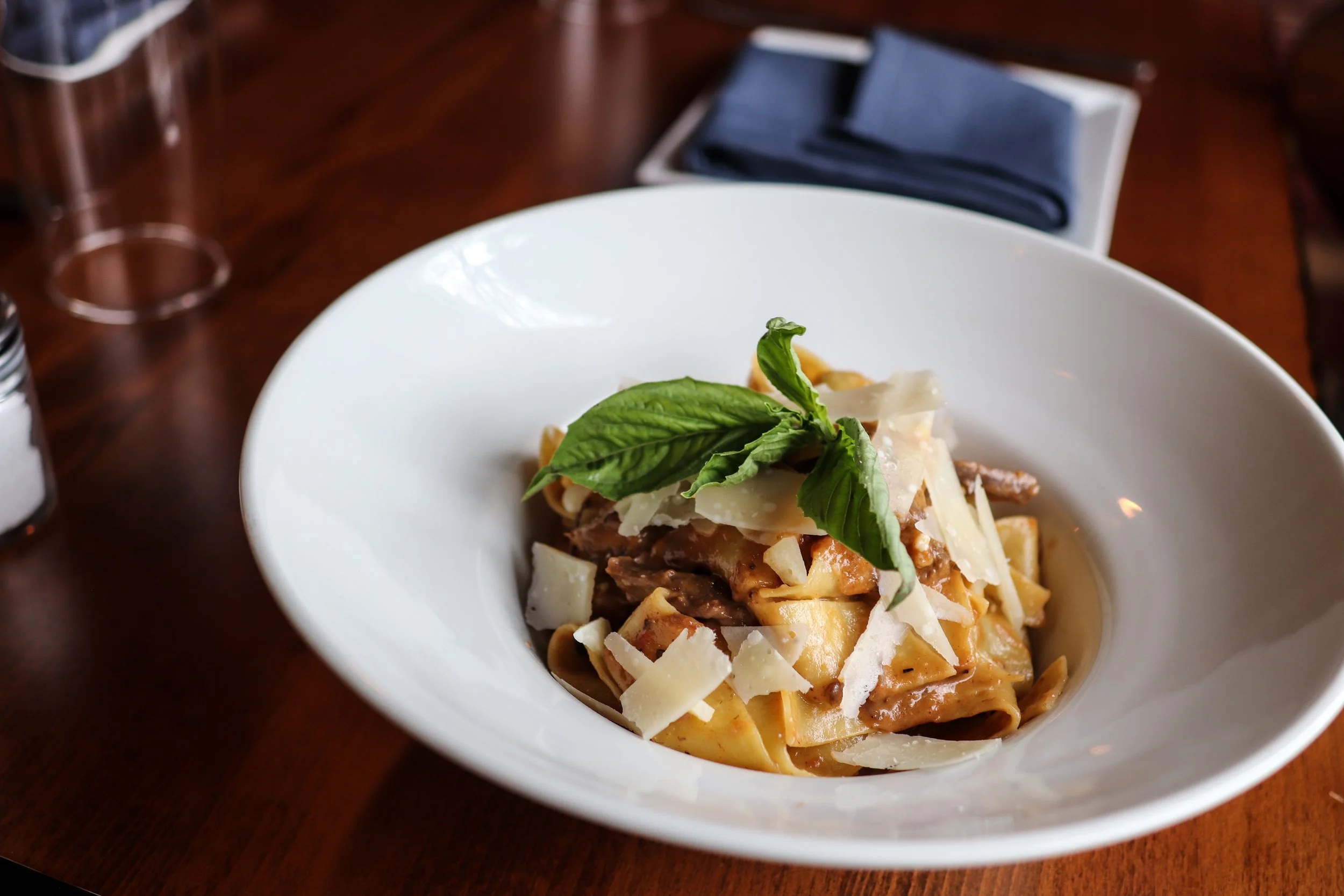 Features Interview Restaurant Norwalk South Norwalk Pizza Neapolitan pizza Homepage Italian Opening SoNo Wood Fired Opens in South Norwalk: Neapolitan Pizza + Italian Soul Food Andrew Dominick March 12, 2023 Thin crust. Roman style. Pan pizza. Bar pies. Artisan. Grilled. Foldable New York slices. Norwalk has all of that. And you can insert your own quip about there being “too much Italian” if you want. What Norwalk has been missing in its dining history is a true wood-fired Neapolitan pizzeria. Check that. “Had been missing.” Newly opened on N Main Street is SoNo Wood Fired, where owner and pizzaiolo Besar Kaba ferments, forms, stretches, and tops each pie, then slides each one using a long peel into his 800° Forza Forni Pavesi. Kaba is meticulous about it, though. He will only cook three or so doughs at a time, turning them feverishly for 90 seconds to two minutes, to achieve that perfect leopard spotted char that’s indicative of a proper Neapolitan pie. What Kaba is doing at SoNo Wood Fired is a return to his roots. “I used to read Word Up! magazineSalt-n-Pepa and Heavy D up in the limousineHangin' pictures on my wallEvery Saturday Rap Attack, Mr. Magic, Marley MarlI let my tape rock 'til my tape popped”And yes, this neon sign is because of the Bigge lyric. Kaba said Big, Wu Tang, and others were massive when he was growing up on Staten Island. Born in Dallas, his family moved to Staten Island in 1994 where his father owned two pizzerias. The elder Kaba didn’t even give his son much of a choice in the matter either. “As a teenager, he dragged me to his pizzerias,” Kaba recalls. “He had Rizzo’s and Benny’s, plus a lot of my relatives are in the industry with some kind of Italian concept. My dad made sure that instead of doing dumb shit as a kid, that I learned something. He showed me the ropes. How to make dough, process dough even though I said to him how much I hated being there.”Kaba continued in the restaurant industry even though he’d eventually move back to Dallas where he worked at family member’s establishments as a server. Seventeen years ago, Kaba came back to the Tri-State area, specifically to Danbury where his sister had been living, and found himself managing the popular Stanziato’s, one of Connecticut’s more original wood fired Neapolitan spots. Wood fired chicken scarp should be a permanent menu fixture soon Short rib pappardelle “My friend (Mauro) bought Stanziato’s from Matt,” Kaba explains. “Working there brought that passion of making pizza back to me. My dad did more of a New York style, but one of his locations did wood fired. Stanzy’s was one of the first in Connecticut to introduce true wood fired Neapolitan.”After a lengthy stint at Stanziato’s, Kaba’s reignited pizza passion landed him in SoNo, where he’s taken over two locations formerly occupied by Gyro World and a Coldwell Banker office. Bartender Micah mixes up a Smoked Black Cherry Manhattan. Note that bourbon selection (Blanton’s Michter’s, High West, and more). After knocking down the wall that separated the two businesses, it took Kaba a solid year to get the place’s clean, industrial look ready to go, including a full bar, a custom Forza Forni, a massive dough production basement, a neon “IT WAS ALL A DREAM” (ode to Biggie Smalls) sign, and a mural modeled after Banksy’s “Balloon Girl,” but instead of a heart balloon, her hand is extended to catch the string of a round pizza balloon. There’s more than just pizza happening at SoNo Wood Fired, but we have to start there. Without giving away too many dough secrets, Kaba did reveal that it’s a straightforward mixture of 00 Italian flour, water, salt, and yeast that undergoes a minimum three-day cold fermentation, then an overnight proof in his production basement that stays a steady 67°. In Do Thyme: white pie w/smoky, salty bacon, sweet caramelized onions, fresh thyme, mozz, + honey Kaba is also sticking true to the Neapolitan style by not using gas or a combination wood-gas oven. His Forza Forni is strictly wood burning. The fired up dough result is that perfect char and a spot-on light, fluffy chewiness that lies under a crisp crust. As far as toppings are concerned, top ‘em how you want ‘em or choose from 10 different pies (five red, five white), that include a classic margherita, Calabrese (Calabrian salami, oregano, Bianco Di Napoli tomato sauce, and homemade Calabrian chili hot honey), Figgy Smalls (fresh mozzarella, fig, prosciutto, hazelnuts), and In Do Thyme (fresh mozz, bacon, caramelized onions, fresh thyme, honey).To boot, Kaba is dedicated to using organic, fresh, seasonal, local produce and the best products he can get his hands on. He noted that once spring rolls around, he plans to source from Millstone Farm, Holbrook Farm, and others, plus he even has his own mushroom forager. In fact, fresh is such an emphasis that the restaurant only has a small chest freezer that mostly contains giant ice cubes for cocktails and gallons of gelato. Even the mozzarella sticks are fresh, never frozen. Great for adults, great for kids. And speaking of the little ones, if they’re not down with pizza or mozz sticks, Kaba makes his own chicken fingers. No Purdue pre made nonsense going on here. Down the line when SoNo Wood Fired is fully staffed, Kaba mentioned wanting to “stretch” his own mozzarella.Aside from pizza, SoNo Wood Fired’s entrées are of the soul-satisfying Italian variety. Think tender braised, fall apart short rib folded into pappardelle, rigatoni alla vodka (or go the Bolognese route), wood fired chicken or salmon dishes, chicken parm with spaghetti, spicy shrimp fra diavolo, and the bounty of the sea (mussels, shrimp, calamari, salmon) in a briny, saucy bowl of zuppa di pesce. Chicken scarp with homemade fennel sausage meatballs and rainbow potatoes has been offered a lot as a special and should be a permanent fixture on the menu soon enough. To drink, co