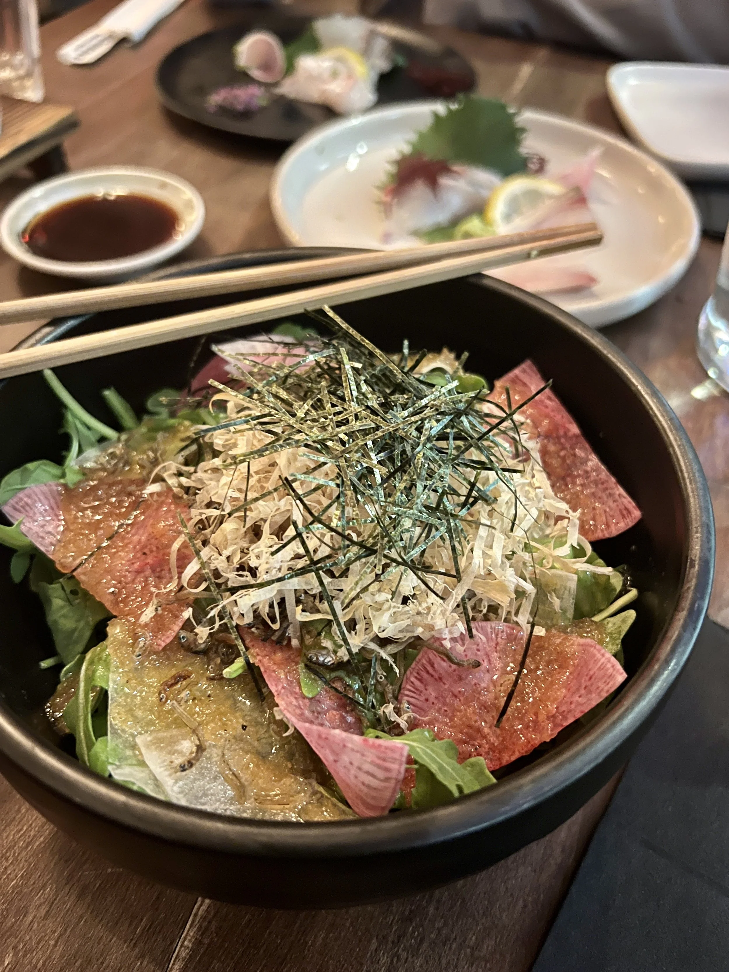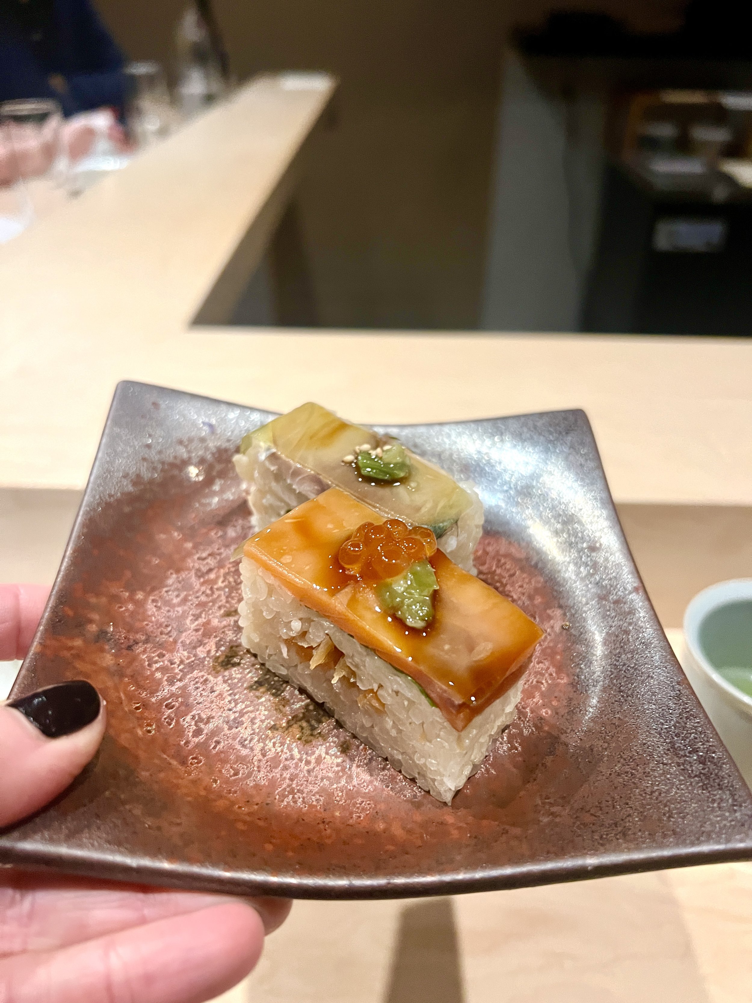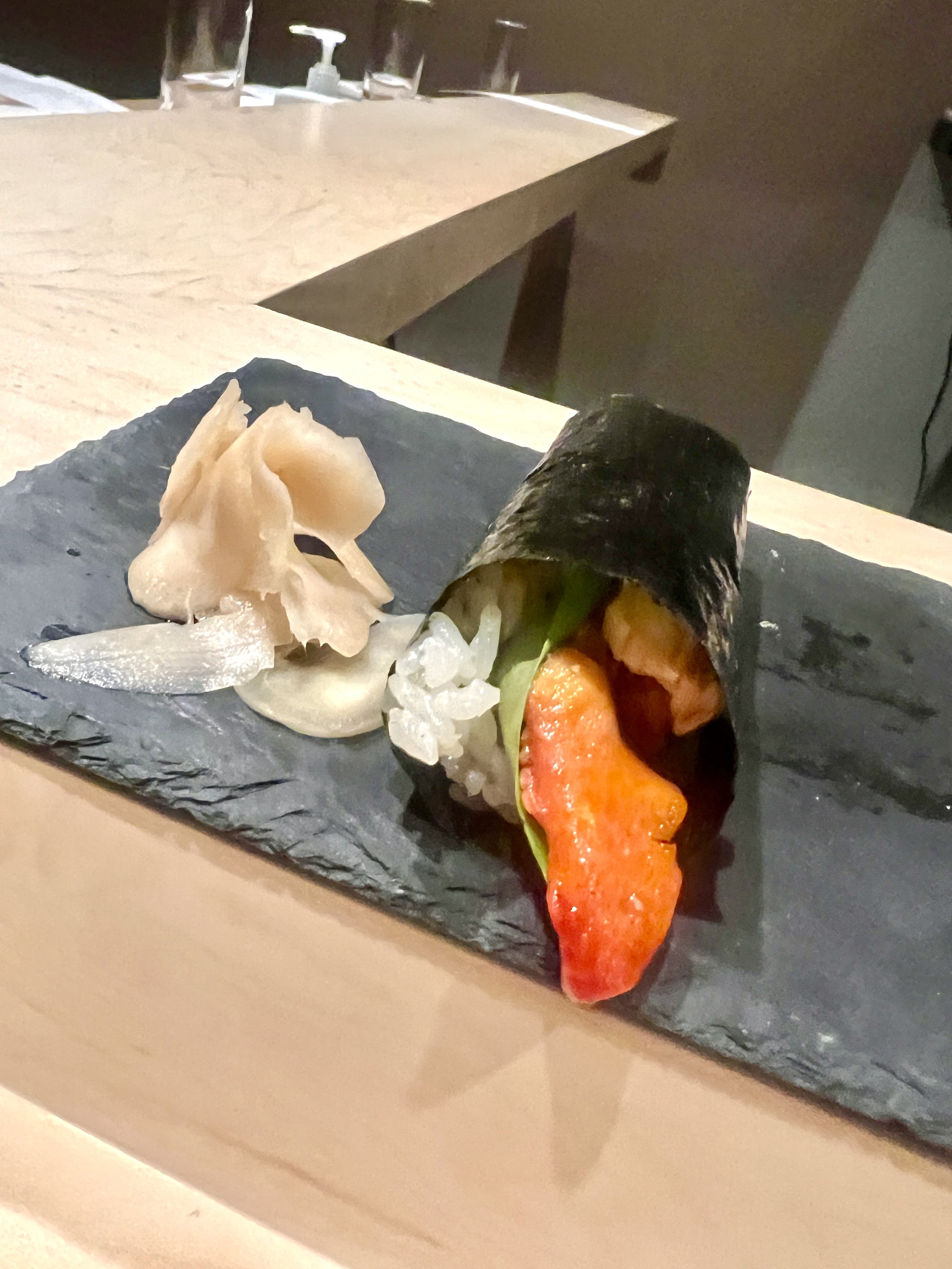 Restaurant New Haven Sushi Japanese Homepage Opening Hachiroku Owners Open Hachiroku Handroll Bar & Tapas in East Rock, New Haven Stephanie Webster April 23, 2023 Fans of Hachiroku Shokudo & Sake bar, which quietly opened in New Haven 2022, will be excited to hear that this team has expanded their portfolio of outstanding Japanese eateries with a NEW restaurant in the East Rock neighborhood of New Haven. The new spot is called Hachiroku Handroll Bar & Tapas, and much like the original, you will not find a sign outside….ya just have to know. Hachiroku Handroll Bar features a few highlights from Hachiroku Shokudo & Sake bar, but while the OG delivers a traditional izakaya menu with a few uber-fresh cuts of sushi, the new spot leans in on expertly executed, positively mouthwatering handrolls. And make no mistake, while the flavor profiles you will find here are not strictly “traditional,” the dining room looks and feels like a traditional sushi bar. With roughly 16 seats highlighting the artists/ sushi chefs in the center, dining here exudes the austere reverence that these handrolls deserve. Owners Yuta Kamori and his wife Sanae, along with partners Gen Hashimoto and Hiroyuki Fuji Yuta started several years ago with Brooklyn Ramen, then branched out to a successful bento box business and Japanese sushi stores tied to the Maruichi grocery establishment throughout CT and Boston. From here they opened Hachiroku Shokudo & Sake bar and now, Hachiroku Handroll Bar & Tapas. According to owner Yuta Kamori, the concept for his restaurants is simple, “Every item of the menu that is added and or removed is based on daily availability and above all something we enjoy eating!” The fish is some of the freshest and most delicate I’ve eaten…anywhere. And on this note, let’s talk about the menu. When you are seated in this dining sanctuary, you will notice that the menu hits on roughly 15 Japanese “tapas” items and 20 Temaki (handrolls). Tapas include the salad that made my “Top Eats 2022” list, the Jako Salad, featuring spicy arugula, radish, poached egg, crispy baby anchovy, bonito flakes, nori and a house onion dressing. It’s a full umami bomb situation, and a must order. Trust me. Sure, they have a beautifully executed Black Cod in Yuku (a la Nobu), and melt in your mouth A5 Wagyu Sushi, but guests will also find deeper cuts including: “Two Bites” (pressed cured Yuzu salmon or Saba Mackerel sushi with kelp wrap), a Snow Crab & Ikura Chawanmushi (a silky smooth steamed egg custard topped with snow crab and Ikura) which is just a straight up wonderful, and the delicate Abalone Ni Awabi (simmered abalone in soy sauce and ginger broth). Straight from the water sashimi is always available based on what’s fresh. If you’re lucky, you’ll sometimes find it house smoked or cured based on Chef’s whims. And by no means leave without trying the Bluefin Tuna Prosciutto-translation: house smoked and dried tuna serves in the style of prosciutto. Just damn. It’s a menu for those who enjoy dining as an exploration, and it showcases completely unique preparations of traditional Japanese ingredients. On the other side of the menu guests will find the Temaki, and this is where you will really want to spend some time. In two visits I was able to make a relatively large dent in the list, and no roll in this roundup should be ignored, both for unique flavor profiles and the care given to each order (cue the tweezers.) I’ve never met a Miso cured fish I didn’t like so I started wit the Miso Salmon Oyako, a wonderful combination of miso salmon and cured salmon roe. Let me reiterate that the freshness of the fish procured at Hachiroku ranks as high as some of the Michelin starred sushi spots I’ve frequented. For Uni fans, the Uni & Salmon Roe temaki should not be missed. I went back for seconds on the Soy Cured Yellowtail with Scallion as well as the Madai (red snapper with the very distinctive hint of Shiso). The use of Shiso in several of these handrolls was both surprising and delightful. And make no mistake…there is no soy sauce at the table. Chef seasons each hand roll so there is no need to mess with perfection. My last roll was the Lobster Roll, a nod to a New England favorite, with succulent buttery chunks of lobster, lemon, say sauce and Butterhead lettuce. Good stuff. In a well considered partnership, dessert is served c/o another “best in class” spot, Hen & Heifer bakery from Guilford. We sampled both the Chocolate Banana Sesame, savoring the unexpected sesame against the sweeter caramel and fruit, as well as Ginger Creme Brulée. If you can’t make to Guilford this is a great way to experience this top notch bakery. In short, Hachiroku Handroll Bar & Tapas is officially in the monthly rotation. It is one of a short list of spots in Connecticut where guests can go for truly exceptional sushi, and every visit brings something unique. Hachiroku Handroll Bar 966 State St, New Haven, CT 06511Reservations on Resy.