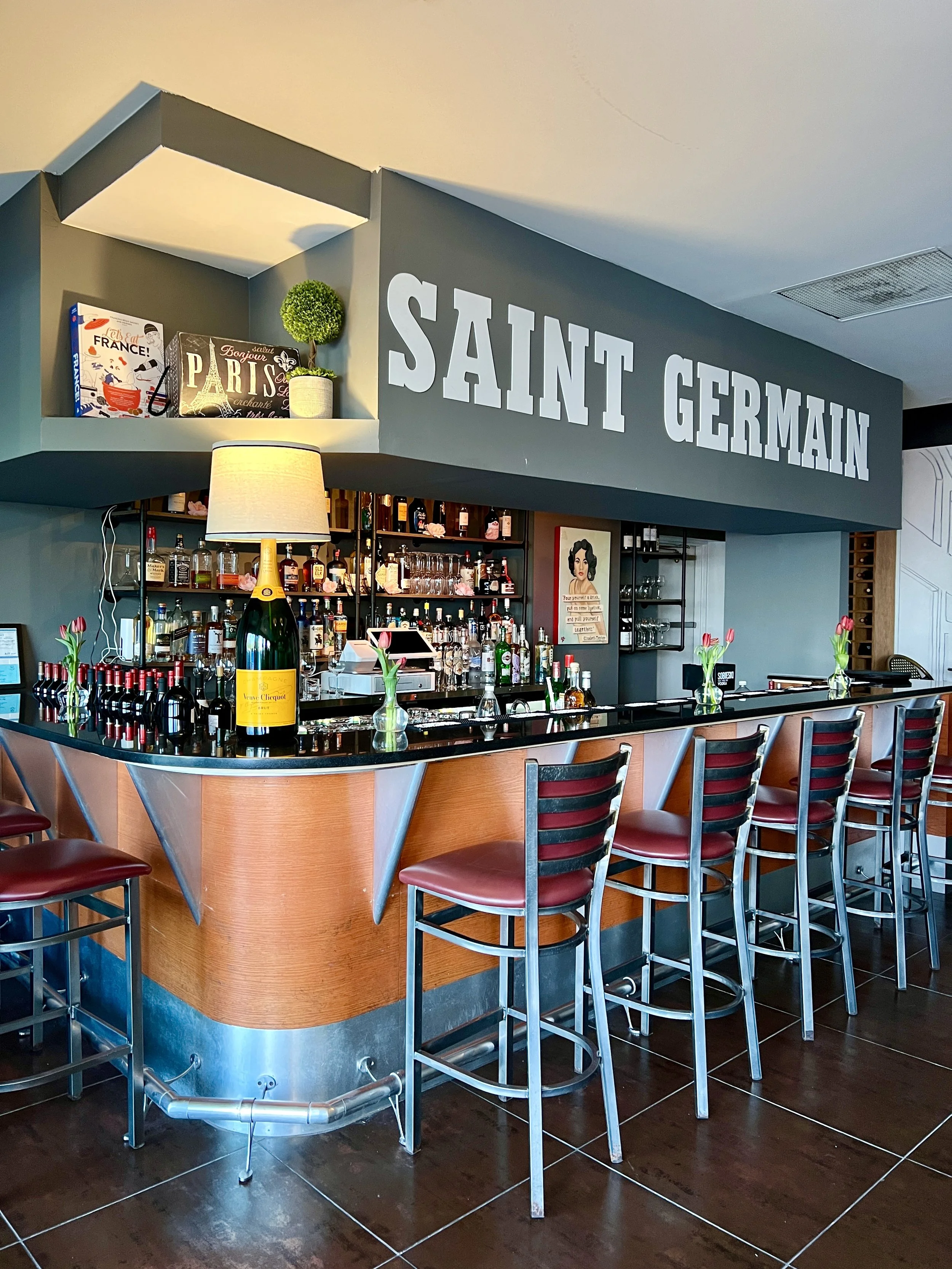 Restaurant Opening Ridgefield French Lunch Raw Bar Homepage Brasserie St. Germain Opens In Ridgefield From Sucre Sale Team Jessica Ryan May 27, 2023 Brasserie St. Germain opened quietly though to much fanfare this past week. Named after St Germain des Pres, the quaint Parisian neighborhood, in the 6th arrondissement. Owners Frank Bonnaudet and Virginie Kharouby are no strangers to the Ridgefield restaurant scene. After nearly 10 years, the owners of the former Sucre Sale decided to shut down the smaller, casual eatery to make way for this newer, slightly more formal concept with its larger menu and more expansive dining areas. Brasserie St. Germain is an ode to Paris, from the décor – with hand-painted murals in the main dining and bar area that are bright and lively, to the more formal, high end dining area in the back. The restaurant seats between 75-80 people, and judging by what we saw, the space will fill very quickly. Former Sucre Sale diners have been eagerly anticipating this opening. The cozy ambiance suggests a relaxed dining experience, diners will not be rushed. We had the privilege of checking out the restaurant and menu, and we sat down to talk with General Manager Olivier Bermond. At 4:30 PM, upon our arrival Frank and Virginie were working hard, adding final touches. Olivier, a veteran of the wine and beverage industry and was the former beverage director for Artisan’s Southport and Hartford locations. He met Frank while working at Slocum & Sons as he handled their beverage account, and a new partnership was born. Olivier’s own background is quite fascinating in and of itself, having grown up in the South of France to a father who was a pâtissier to some of the most prestigious restaurants and hotels in France. At the age of 16 he began a two-year intensive internship at a Michelin restaurant where he would learn the ins and outs of the restaurant industry – from service to food knowledge and understanding, to flower arranging to knife skills. Upon moving to Connecticut 16 years ago, he had the opportunity to work at the highly esteemed and now shuttered, La Coline Verte in Fairfield’s Greenfield Hill section. Frank Bonnaudet, a trained Chef from Brittany in France, has been a culinary artist since he graduated from the prestigious cooking school, Ecole Hoteliere de Pornic at the age of 17. After working in various establishments in France, Frank opened his first restaurant, La Guingette du Lac, in Savenay , France. His passion brought him to the States in 2003, where he opened a French eatery, the Guerande, in Tribeca. In 2012 he moved to Ridgefield with his family and opened the acclaimed French Bistro, Sucre Sale which won the award for Best French Restaurant in 2018 and 2019. Frank very much looking forward to this newest endeavor. The vibe at St. Germain is distinctly and unmistakably French, as is the menu with offerings like Soupe de Poisson, Soupe a l’oignon, Tartine Provençale, Escargots a la Bourguignone, Salade d’Endives aux noix et au Bleu, Frisee au Lardons, Moules Marinieres Frites, Steak Tartare, and Cotes de Boeuf to name but a few things. We had the privilege (and I do mean privilege) to try a few of their traditional dishes. We began with the Soupe a L’Oignon, its silky broth is decadent, oniony, and buttery smooth. We savored each and every sip. This isn’t a soup to slurp – it is meant to linger on the tongue, to be sipped and savored. This is French onion soup done the French way with just enough cheese to hint and tantalize. I assure you that this will be one of the best you have tasted this side of the Atlantique! The Boeuf Bourguignone is served in individual ceramic pots and the presentation is as wonderful as the dish itself. This traditional beef stew originating from the Burgundy region so noted for the wine in which the meat slowly simmers for a beautifully rounded, rich flavor. Fall apart tender meat with an incredible depth of flavor that lingers on the tongue in a most pleasing way is accompanied by generously sized bits of tender and equally aromatic carottes and champignons. What could possibly make this better? A generous side of pommes frites of course! If you’re a fan of Steak Tartare you mustn’t pass this one up. Depth of flavor seems to be a theme here at Brasserie St. Germain. I remember my first tartare… The restaurant was the Blue Bar in Cannes where we dined often and it was there I had my very first tartare – It was my father’s and he encouraged me to try some I remember how the bright yolk glistened on top of the vibrant-colored meat with its velvet-like texture and salty, mustardy flavors. It was pure magic. (I was a gourmande from a very young age.) I have high tartare standards and this one is nothing short of sublime. Peppered with cornichons, onion, capers and Dijon topped with a yolk the color of sunshine and accompanied by house-made waffle chips, this holds up even to my high standards. Do yourselves a favor here, and order this dish. You won’t be disappointed. Pro tip – leave the chips to the side and enjoy them separately so that you can focus your attention solely on the flavors… they deserve it! To sip we enjoyed a glass of Sauvignon Blanc and a Rosé. The wine list simple but well curated, with a focus on French and American selections.We ended on a sweet note with a simple Strawberry Melba.There will be additions to the menu over the next weeks and months. Guests can expect to see some of their favorite Sucre et Sale crepes on the menu shortly.Brasserie St. Germain is open for lunch and dinner Monday through Saturday. Lunch service begins at 11:30 AM and runs through 3:00 PM. The restaurant re-opens at 4:30 and the kitchen closes at 9:00 PM but the bar won’t close until the last guest has left.Brasserie St. Germain 470 Main Street, Ridgefield CT