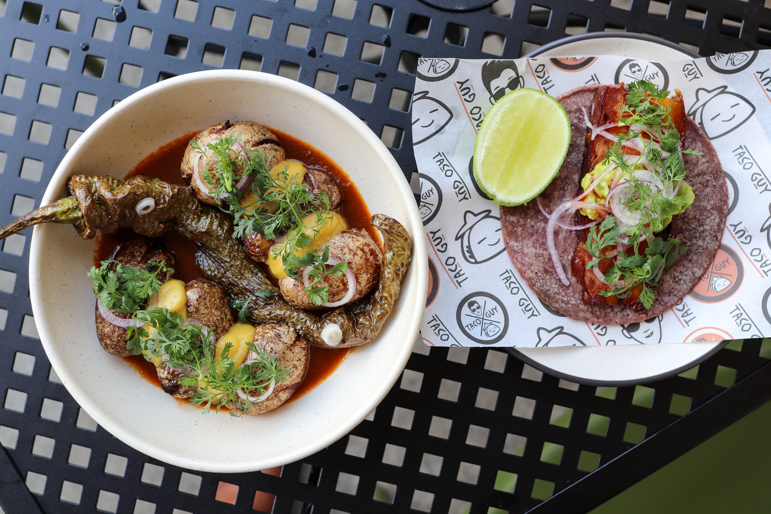 Features Interview Ingredients Restaurant tacos Norwalk Interview Homepage Mexican Opening Taco Guy Food Truck Opens Restaurant in Norwalk Andrew Dominick July 20, 2023 Pork belly taco - guacamole, salsa macha, onions, cilantro Soul.That’s the word Adrian Hurtado uses when he describes the food he serves at his newly opened restaurant in Norwalk that’s an extension of his food truck, Taco Guy. “I have chicken tinga on the menu because it runs in my family, going back to my great-great grandparents,” he says. “When you’re eating here, you’re getting my culture, my family tradition, and a piece of what’s in my soul.” But for Hurtado, who grew up in the hospitality industry learning the ropes at the popular Super Taqueria Las Salsas in Bridgeport that’s owned by his father, he chose to not be a taquero as an adult. Instead, he started making pizzas at Bar Sugo in Norwalk before hopping behind the bar as a bar back. “Growing up, working with your dad, it’s a lot of pressure and responsibility,” Hurtado says. “He wants things done his way because he’s the boss. I didn’t want to work in the kitchen. It can suck. It’s really hot, a lot of hours, and low pay. When I worked at Bar Sugo and Darien Social years ago, I think the cooks were making like $9/hour. I was like, I don’t wanna do this.” Pear Cobbler - Absolut Citron, Barbadillo Manzanilla Sherry, pear brandy, jicama honey, lemon He’d continue bar backing and ended up working for Tony Pham at Mecha Noodle Bar, who Hurtado cites as one of his mentors since the first day they met. Through his connections at Mecha, Hurtado ended up bar backing, then eventually bartending at the acclaimed Please Don’t Tell in Manhattan’s East Village. Now with a big chance at a well-known bar, Hurtado wasn’t going to mess it up. In seven years at PDT, he said he never once called out of a shift, no matter the weather or if he had car trouble. Because of his work ethic, he got a chance to hone his mixology skills and he was able to get behind the bar full time. Classic michelada. And there are two more available in mango or chelada (lime juice, salt). Flautas de papa con queso - lettuce, ricotta, spicy salsa macha oil “When someone puts their time and money into you, that means they see something in you,” Hurtado says. “A lot of good people put faith in me. From bar backing they let me go behind the bar. It’s all work ethic. It comes from my dad, who is a strong role model and taught me to show up on time, do my best, wanting to work hard, and always wanting to learn. If you have a goal, you have to be responsible. That’s why they let me get a turn on the bar. Working with Tony and Juan (at Mecha) and Jeff at PDT, they have goals, and you want to be around people like that. Ambition is contagious. You don’t want to let those people down who believe in you, so I don’t want to make a drink or make anything that isn’t good. I don’t want my mentors or my mom, dad, family, and friends to say, ‘I didn’t teach him that.’ I try to do everything high quality.”Tacos, though, would come back to Hurtado later in life, specifically in 2020 when pandemic shutdowns impacted restaurants and bars everywhere. When he was unemployed, his father offered him a food truck, and when restrictions eased, Hurtado worked at a few higher end Mexican restaurants in the city in ATLA and Cosme, then staged at Damian in Los Angeles to learn “how corn works” and the masa process. Hurtado is showing off his bartending skills here, too. Early on, this clarified punch (Barsol Pisco, velvet falernum, ginger, honeydew, cucumber, lime) is a popular drink order. Other tacos besides pork belly? Carnitas (a Hurtado Family tradition), chicken tinga, short rib, tripe, fried fish, pozole (lettuce, cheese, sour cream). Since opening, birria has since made an appearance. “My friends told me if I didn’t do the taco truck, that I was stupid, and that this was my time” he recalls. “I was living in Brooklyn, and I made ceviche and tacos a lot for my friends on the rooftop. I told my dad I was going to take the truck.”And so, Taco Guy, the food truck, was born. You’d frequently find the truck in Pound Ridge, occasionally in Stamford, or at a festival serving a menu of mostly all tacos, though, these tacos were a marriage of homemade (usually purple corn) tortillas and authentic Mexican meets refined Mexican given Hurtado’s past stints and R&D. But what he liked about being on the truck that he likens to bartending was that he still had that one-on-one interaction and was able to put hospitality and service at the forefront. After roughly three years as a successful food truck, Taco Guy and Hurtado came full circle when a restaurant space that housed the Wall Street Tavern in Norwalk became available on Facebook Marketplace. But before it was the Wall Street Tavern, that location was home to Bar Sugo. Chips + guac + a classic margarita (Illegal Mezcal, Giffard Orange, lime, agave) Hurtado snatched up that vacancy and renovations began. Taco Guy wasn’t only set to bring tacos to a sit down, casual spot, it was about to grow past tacos and even include Hurtado getting back behind the bar to roll out a menu of refreshing, carefully curated cocktails to pair alongside his vibrant Mexican food. But the tacos. This is TACO GUY, so we have to begin there. Family style DIY tacos are a thing The masa is made in-house from 100% Mexican heirloom corn that’s free of additives. Sometimes they’re purple, other times they’re yellow, and there’s a little red and white corn involved, too. Each tortilla is made fresh daily, and, like the chips, they aren’t fried in any way so as to let the corn shine. Tacos are also served in a do it yourself, family style fashion. Fish a la talla is a half red snapper, roasted in the oven and served with herbs, pickled onions, and tortillas. Its meat counterpart is a full pound of carnitas—his fa