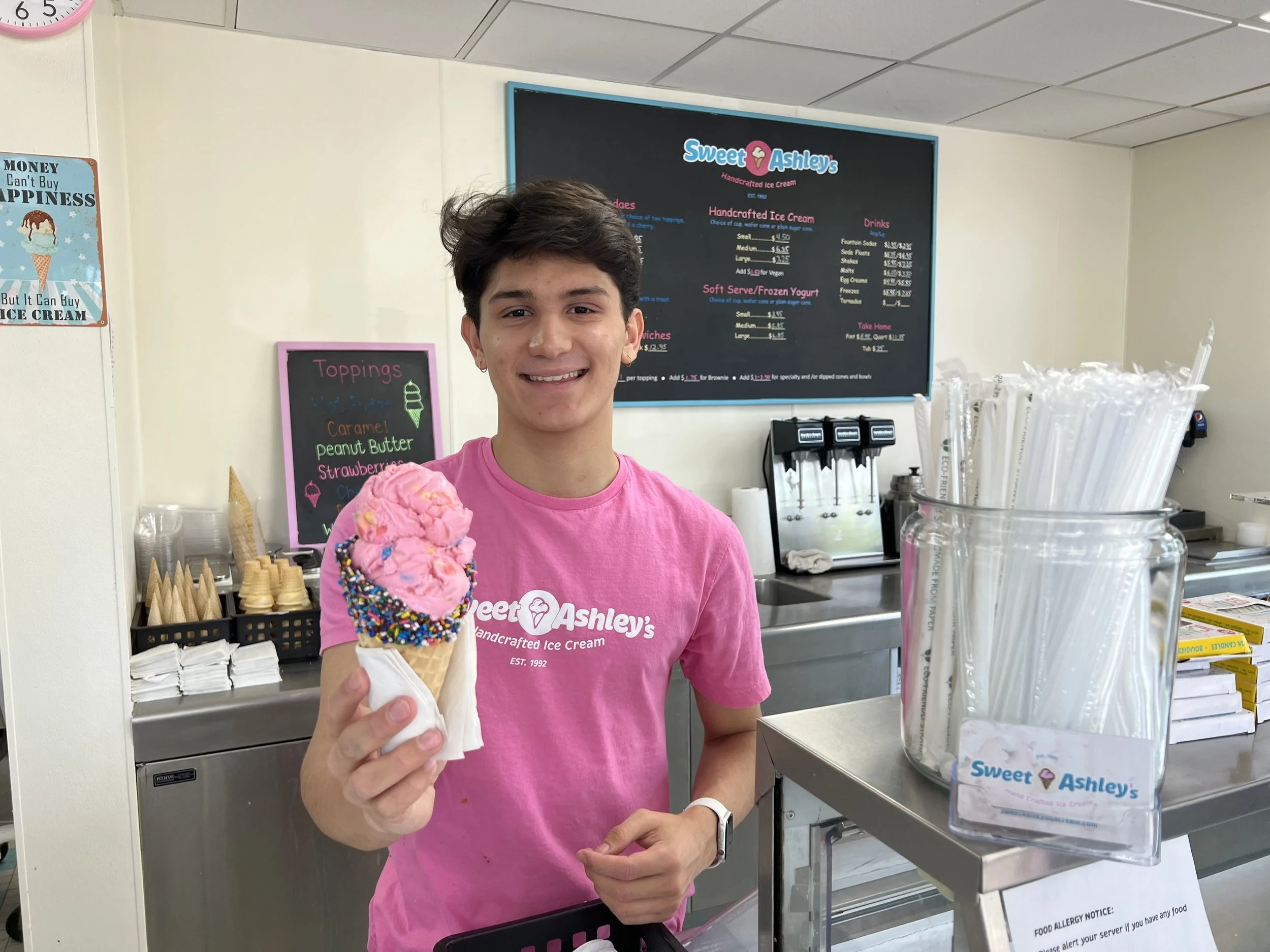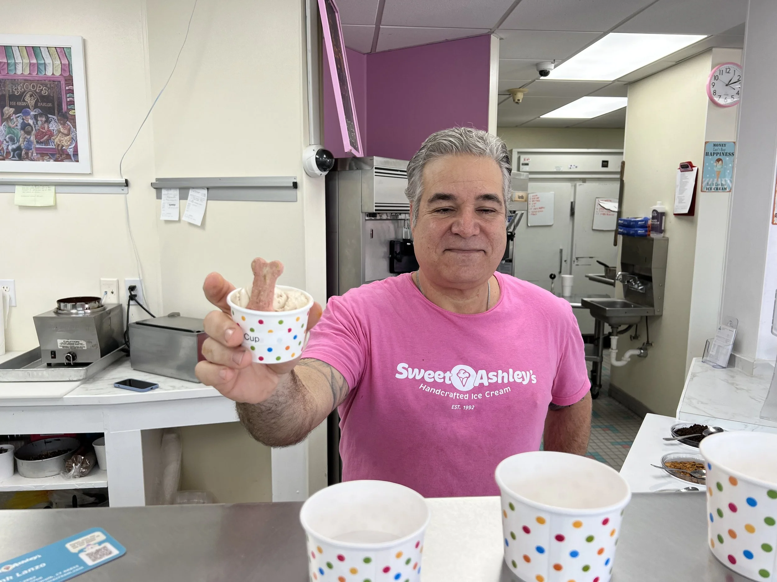 Ice Cream Restaurant Norwalk Ice Cream Opening Dessert Kid Friendly Sweet Ashley’s Ice Cream in Norwalk Gets New Owners & Reboot Ella Alpert July 25, 2023 Sweet Ashley’s, the adored Norwalk ice cream spot, which has been around for 30 years has reopened this spring in time for a delicious summer! Frank Lanzo (Former owner of Nordic Fish in Fairfield) and his wife Judie, longtime Norwalk residents, decided to take over the business. As ice cream lovers with culinary experience, it seemed like a no brainer. “I’ve got a culinary background, I cooked my whole life, I went to culinary school in the eighties… now I heard this was for sale and what a great thing to keep going,” Frank Lanzo said. “I’ve been in Norwalk now for twenty two years, I live very close, who doesn’t love ice cream? Some of the most popular flavors at Sweet Ashley’s are cookie monster (Vanilla ice cream dyed blue with cookie dough and Oreos), Swamp (Vanilla ice cream with Oreos, M&Ms, and peanut), and peanut butter overload (Vanilla ice cream with Reeses Pieces, mini peanut butter cups, and chopped Reeses). For those who’ve been Sweet Ashley’s fans since it’s opening in the 90s, don’t fret, the original recipes and menu are the same but with some fun and interesting additions. Pup cups are also served with a dog treat. My dog loved her cup! “I kept his recipes the same but I expanded on them a little bit, I kind of put my twist on it. I introduced a lot of vegan flavors and dog friendly ice cream,” Lanzo said. Sweet Ashley’s homemade recipes use a cream base which makes the ice cream smoother and creamier than many other ice cream shops. All flavors are made in small batches, five gallons at a time, which ensures a fresh quality and allows for experimenting with flavors. Sweet Ashlehy’s has 70 flavors on the menu, and is open to testing more!“We make everything here in house, it is truly handcrafted… We can make anything for anybody. If you call up and give us enough time, I’ll make it.” As summer approaches, Frank hopes to add more outdoor seating for customers to enjoy their sweet treats with family, friends, and of course dogs! Sweet Ashley’s will continue to be a go-to joint for delicious sundaes, milkshakes, ice cream, and more! “My employees are my backbone…and my wife Judy, and my son. I couldn’t do it without them,” Frank said. “It’s a staple here. It’s been here for thirty one years, people know it,” Frank said.Sweet Ashley’s is located at 248 East Avenue in Norwalk. You can check out their website for more information and to place orders! Also check out their Instagram @sweetashleys.icecream for updates.