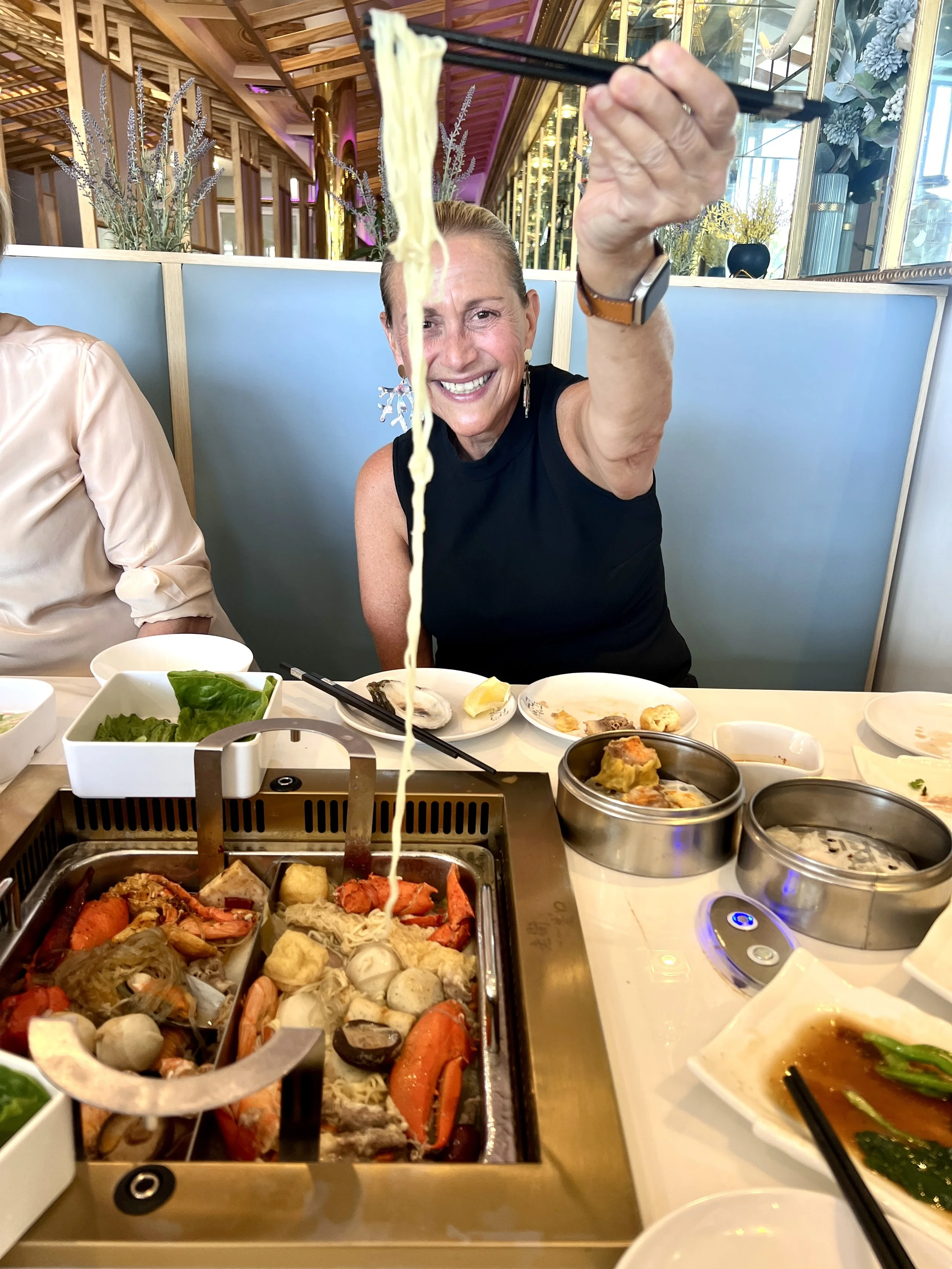 Restaurant Hot Pot Chinese Chinese New Year Dim Sum Milford Asian Homepage Old Street Hot Pot Opens in Milford With Dim Sum All Day & Hot Pot Jessica Ryan October 03, 2023 There’s Chinese food and then there’s authentic Chinese food. Old Street Hot Pot in Milford offers diners an incredible Chinese experience – from authentic Dim Sum to original hot pot. Don’t let the American strip mall exterior fool you (but do take note of the fabulous G Mart at the end of the block!) Once you walk through the doors you’ll forget where you are. You’ll be transported into a large space that combines traditional and contemporary elements with a large modern wooden architectural feature that stands within the existing building. Painted murals peer down from the ceiling through the wooden structure. The ambiance is created by a mix of wooden accents, vintage Chinese artwork, and soft lighting. Tables are arranged to accommodate both small and large groups, with cozy booths lining the walls. The space is designed to evoke a sense of cultural authenticity while maintaining a comfortable and inviting atmosphere for guests. A private dining room featuring an enormous round hot pot table that seats 16, making it the perfect entertaining space. The restaurant’s total seating capacity is 135. Owners May Lin and Steven Gao opened the restaurant earlier in June. May is no stranger to the restaurant world; she owns Tiger Daddy in New Haven and The Whale Tea which has 27 locations in the US. May was born in China and came to the US as a teen. Her childhood in China served as the inspiration for Old Mill Street Hot Pot. May wanted to bring authentic handcrafted hot pot to Connecticut so families and friends could enjoy quality time together while sharing a delicious dining experience. Quality, consistency and customer service are the driving forces that make Old Street successful. Each guest is warmly welcomed and experience highly attentive service. When you enter the restaurant you’ll be warmly greeted and taken to your table. Once you’re seated you’ll be given an iPad-like device to use as your menu and thus your Chinese culinary adventure begins! You’ll likely start with some Dim Sum, small, bite-sized portions of food that are served in steamer baskets or on small plates. We were treated to a nice variety of delicious dishes including Chinese Broccoli with Oyster Sauce, Steamed Shrimp Dumplings, Rice Roll with Beef, Pan Fried Shrimp and Chive Dumplings, Shrimp Shumai. We moved on from there… This was my first Chinese Hot Pot Experience. And what fun it was! Also known as "huo guo," diners get to cook right at the table. You’ll select from a wide variety of raw ingredients which you’ll place into one of two pots of simmering broth in the center of the table. There are different types of broths available, ranging from mild and clear to spicy and flavorful. We opted for a mild broth and a low heat broth that definitely has some kick, (and I can handle a good bit of heat!) Typical ingredients include thinly sliced meats, seafood, vegetables, mushrooms, tofu, and noodles. We had a vast array from which to choose that included an assortment of mushrooms, sliced beef, ox tongue, taro, tofu skin and fried tofu, fish cake, fish ball, pork, crab roll and sausage. We also enjoyed fresh fish and seafood that included lobster, crab legs, jumbo shrimp, mussels and salmon to cook in our broths. This wasn’t just a great time, our food was really delicious! If you’re an adventurous eater there are lots of fun traditional Chinese items to try. If you’re a little skittish when it comes to some of the more esoteric items, there’s still plenty on the menu to choose from. The menu is diverse enough to appeal to all tastes and dietary preferences. I loved this new to me interactive and social style of hot pot dining. It’s a great thing to experience with family, friends, or as a work-bonding event. Old Street Milford Hot Pot 187 Cherry St. Milford, CT 06460