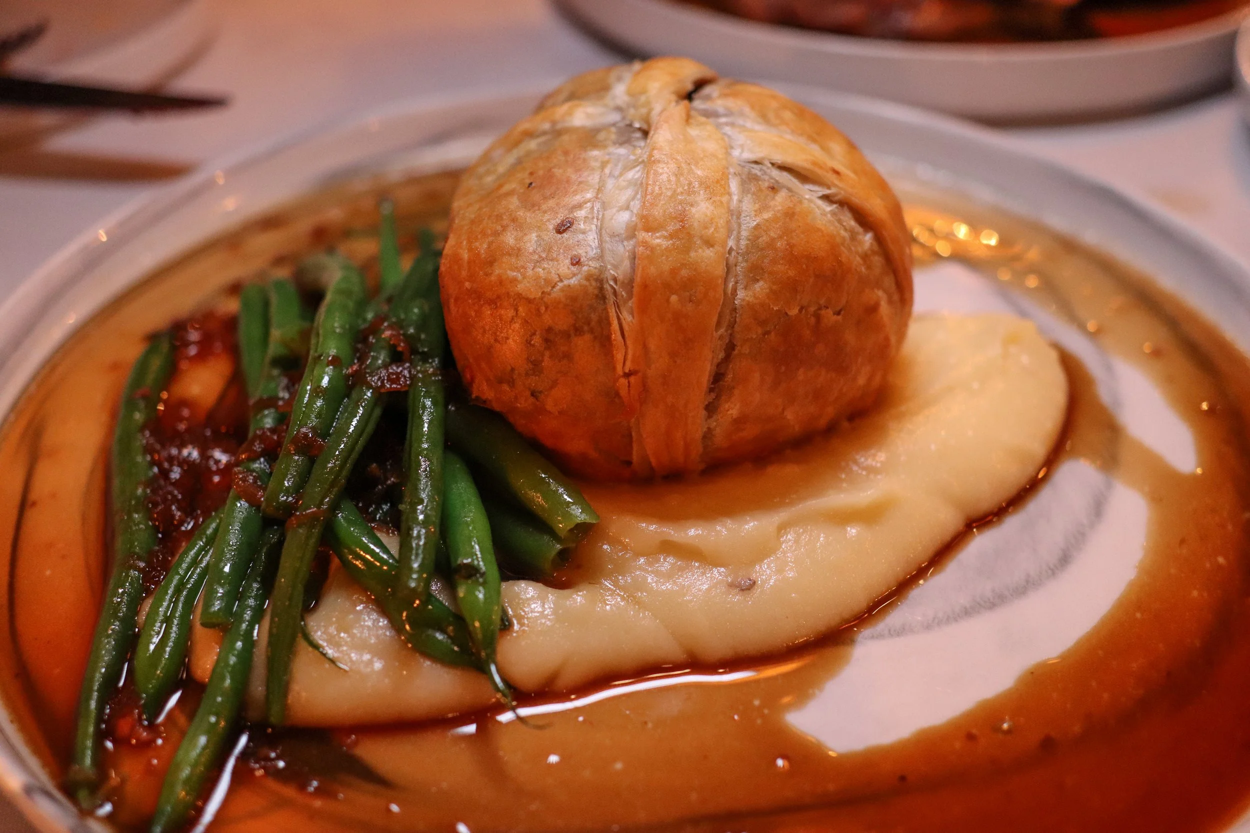 Interview Features Restaurant Branford French The Essex Colt Taylor Homepage Opening Colt Taylor Opens The Essex Brasserie in Branford Andrew Dominick November 08, 2024 Homemade soups are a must at The Essex Brasserie. Three of those are lobster bisque and clam chowder, neither of which skimps on the seafood, and this cheesy, rich broth French onion. From a cantina to a brasserie. From Mexican to French-ish. But for Colt Taylor, the idea of his space on Branford’s N Main Street is for it to stay as a neighborhood spot. With that said, Taylor’s Los Charros Cantina is out as of August 31 and he immediately got to work on bringing a version of his acclaimed Old Saybrook restaurant, The Essex, a bit further south. Much like the paintings that donned the walls of Los Charros Cantina, The Essex Brasserie’s artwork is all created by Taylor’s mother, artist Melissa Barbiere, and others are by Taylor’s mother-in-law. And yes, they are for sale! Photo credit: Lisa Nichols At The Essex Brasserie, Taylor’s idea is a super casual, come as you are spot, that’s not only allowed him and his staff to streamline their thought process every day by not doing two very different menus and styles of food, it’s also to give his customers something they’ve been asking for.“We were always battling something at The Essex because we always want to push forward,” Taylor explains. “People are always asking where the lobster and beet fusilli are, asking where the wellington is. Well, we don’t do that here. We change. That’s the whole point (of The Essex). Think of it as The Essex meets Balthazar or The Essex meets Pastis.” Hand cut steak tartare - dijon, shallots, capers, egg yolk, pistou, toast One of the homemade breads is the restaurant’s signature bread service featuring this milk bread parker house roll with fresh whipped butter and black salt. Country pate of pork belly terrine In Branford at The Essex Brasserie, there’s no tasting menu. It’s all a la carte as opposed to over in Old Saybrook where you can order a bunch of singular dishes or take part in either a five or seven course chef’s tasting. But every dish at the Branford brasserie, like the wellington, like the lobster and beet fusilli, and others like fluke meunière with peanut chili crisp, deboned tableside, have all been on the menu at Taylor’s flagship at some point in time on one of over 100 (and counting) tasting menus. French cocktail classics like this Boulevardier (whiskey, Campari, and byrrh, an aromatised wine apéritif), plus a sidecar and a vodka and gin martini are offered. Whether what’s offered at The Essex Brasserie will change from those “greatest hits” is still to be determined. “It’s a starting point,” Taylor says. “If it changes, we’ll see.”Apart from streamlining just the cuisine from two styles in two restaurants to one similar style between two restaurants, Taylor also cut down on the number of tables to make it more appropriate for The Essex Brasserie’s style of food, compared to Los Charros’ more boisterous crowd and far more casual food. But don’t worry, the former’s bar area is still in place, so you should be fine snagging a seat and a classic cocktail, or a glass of wine from a selection that Taylor describes as, “To the point, with the whole list right there on the menu, and not some ridiculous bottle list.” Even though it’s of English origin, The Essex’s wellington proved too popular to not make the menu at the sequel. “We keep it simple,” Taylor says. “We’re not doing a brioche wrap and crêpes duxelles and foie gras. Instead, we dialed it back to highlight the Seacoast mushrooms, the filet, and the laminated dough.” The lobster & beet fusilli was another dish that Taylor’s loyal customers had to have available regularly. Taylor uses beet scraps that are reduced way down. He says about 30 gallons of juice get reduced to about a quart. “It’s like maple syrup. Dirt candy. It’s sweet. The lobster is cooked in garlic butter and the fusilli is house made.” Fluke meunière (presented here still with the bones-in) with peanut chili crisp and lemon About that style of food. Taylor calls it French and modern American, which is dead on because of the twists and creativity he puts on those classics. French onion soup? Sure thing. But that broth? “It’s 72-hour tonkatsu (ramen) broth,” he shares. The steak frites? It’s got a toffee demi-glace and the fries, like everything else, are hand-cut and made in-house. “We always did toffee at The Essex,” Taylor says. “I like to balance the sweet and savory. I like aggressive flavors like that, like Thai and Peruvian flavors, to hit you with all that; sweet, spicy, acid.” Flaky, sweet endings Early on, the only changes come in the form of daily specials that each have a dedicated day of the week. On Tuesdays it’s scallops grenobloise (seared scallops with lemon-caper sauce), fried chicken on Wednesdays, pork hachis parmentier on Thursdays, Fridays are for beef bourguignon, and the Provençal fish soup known as bouillabaisse is Saturday’s plat du jour. Also happening out of the Branford kitchen, Taylor and his team are able to bake homemade bread like their signature milk bread-parker house rolls and slow boil the stocks for both restaurants. There’s another big idea that Taylor dropped to us concerning both locations of The Essex during our interview, but we’ll keep locked in the vault until he’s ready or if it even happens at all. 120 N Main Street, Branford860.237.4266, theessexbrasserie.com