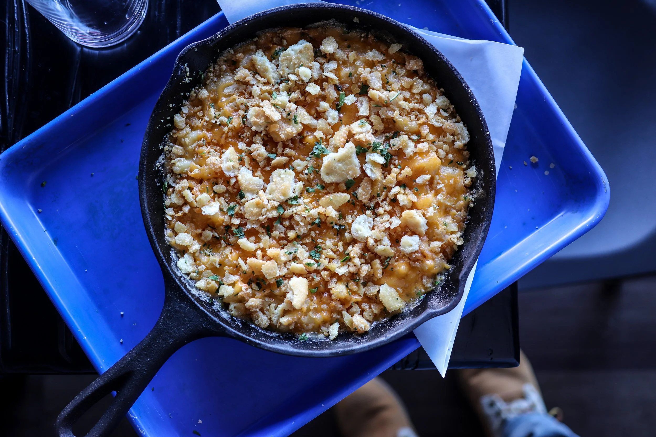 Features Interview Restaurant American Southern Cocktails Interview Fairfield Homepage Opening Rye Bird Opens in Fairfield with Southern American Comfort Food Andrew Dominick January 09, 2025 Since April of 2024, a new restaurant by the name of Rye Bird, located in the former home of Isla in Fairfield, teased a tasty, affordable, neighborhood restaurant concept. Operated by Post Road Hospitality, Rye Bird officially cracked open its doors on October 19 after hosting some patio preview parties prior to its grand opening. Rye Bird’s founder and president Frank Klein hopes it’ll catch on as the “next neighborhood joint” for a bunch of reasons. “It started originally as a bourbon and chicken joint, but it evolved into an American tavern,” he says. “We laugh when we call it this, but we call it an upscale family dive bar focusing on extremely good cocktails and food and a good vibe. We play vinyl records. There’s mood lighting. Someone recently walked in and asked if this was a private party. I said no, but also that I appreciate that it has that feel. We want to be affordable and be repeatable. It’s good for kids, families, and it morphs as the day does on. Families early, hang with friends or go on a date later on.” The “daily pot pie” with a buttery, flaky crust and mushroom gravy to pour on top, inside, of both. Bacon wrapped shrimp House made mac & cheese with Ritz crumbles and fried chicken skin If you’re wondering about Klein’s story, he may be a Fairfield newbie, but he’s an industry veteran who owned two successful restaurants in San Francisco in First Crush, a wine bar, and Fish & Farm. He’d later get into the consulting side of the business. Along the way, Klein founded Asian Box, a Vietnamese inspired micro chain that cooks from scratch and uses fresh ingredients. At Rye Bird, think Americana with lots of Down South influence and helping out this new-to-Fairfield concept is consultant Benjamin Freemole, whose name should ring a bell if you’ve dined at Tavern at Graybarns in the past. Crispy wings tossed in your choice of daily homemade sauces “Over the course of a couple months, we kept having drinks together,” Klein says. “He was aligned with wanting this to be the next great Americana type of concept and it’s the kind of cuisine that he does and that he’s an expert at. Right place, right time. He was looking for a new project and I want someone for the long term to hopefully open more of these. Lots of great chefs in this area ate at Graybarns when he was there and he’s unpretentious about it and doesn’t have a big ego.”Now that he’s taken his knowledge over to Rye Bird, Freemole and the staff are whipping up comforts like homemade mac & cheese, pull apart cheesy bread with herbed butter, fresh baked chicken pot pies (with an option of “smothered,” aka, with mushroom gravy to pour on top), a smash burger, and their spin on a spicy chicken sandwich called “The Hot House,” with Rye Sauce (similar to a burger or Big Mac sauce), pepper dust seasoning, and jalapeño relish. Chicken skins that resemble brittle in appearance are flattened, then dried on parchment paper in the cold walk in fridge, then fried to order. Three piece fried chicken (tender, thigh, and wing) Being that it’s one of Rye Bird’s focal points, let’s get back to that fried chicken. Klein describes Rye Bird’s bird as straightforward, not greasy, and not overly crunchy. “It’s a simple table recipe from the south,” he says. “It’s a five-ingredient dry rub overnight, dipped in a special flour mix, par fried, then we let it sit, then it’s fried again. There’s no buttermilk or agents to make it crispier. We just wanted it to taste really killer and be an everyman’s fried chicken with a ton of flavor.”At the bar, there’s not only local craft beer and wine, but a strong cocktail list of martinis, old fashioneds, seven of their own signature mixed drinks, a couple of boozy milkshakes, but Rye Bird has their own rum brand, in both white and an 8-year aged reserve that’s finished in sherry casks, called Fairfields Rum. Rye Bird’s baked goods, including the cheesy bread and this apple crumble, come courtesy of Billy’s Bakery. Fairfields Rum is produced by Next Century Spirits in Raleigh, North Carolina using fairtrade ingredients and nothing artificial. “Next Century distills the rum using our ingredients with our trademarks, our bottle, everything,” Klein explains. “We thought about having a local producer make it, but we didn’t want to mess around for several years getting it right. We wanted someone to start on it right away. They do a great job. It’s 100% sugarcane and molasses—no additives, no coloring, nothing like that.”We’ll leave you with one final tidbit that we got from Klein as he told us the Rye Bird space will soon double as a ghost kitchen for Skull City Taquitos, a Cali-Mex concept that falls under Post Road Hospitality’s umbrella. And if that’s not enough, he’s toying with the idea of bringing Asian Box to Connecticut as well. ,11 Unquowa Rd Fairfield203.955.1052; ryebird.com