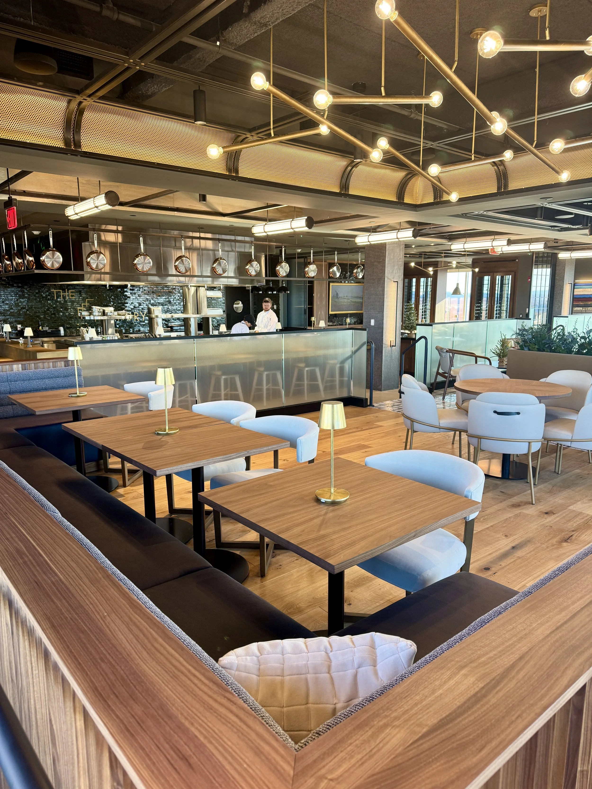 Features Restaurant Opening Hartford Fine Dining Date Night Bar Menu Tasting Menu The Foundry Opens in Hartford January 16 with Sweeping Views & Exciting Chef Team Leeanne Griffin December 20, 2024 Hartford’s best restaurant view returns next month, as The Foundry opens on the 20th floor of the Hartford Steam Boiler building January 16. The former ON20 Restaurant, known for its soaring views of the Connecticut River and other area landmarks, has been fully renovated and reimagined, with even more stunning panoramic vistas of the capital city. The industrial-chic interior has an expansive bar, an open kitchen with gleaming stainless-steel appliances, private dining spaces and jaw-dropping glimpses of the sky from nearly every vantage point.ON20, a celebrated white tablecloth establishment for many years, closed during the uncertainty of the pandemic in 2020, but two years ago, Hartford Steam Boiler’s leadership began reaching out to key people to start conversations about reopening the restaurant. They contacted chef Jeffrey Lizotte, who had ascended to the executive chef role at ON20 during his career and became one of the state’s top culinary talents as a result. Lizotte opened his own restaurant, Present Company in Simsbury, in 2016, but he said he and other ON20 alumni had been rooting for the Hartford landmark to make a comeback. The 24-story building is home to 500,000 square feet of office space, but the restaurant had always been considered its “crown jewel," he said. “This is part of HSB’s ability to breathe life into the building through the community, bring energy back to the downtown area, and stick to the roots of what downtown Hartford was and its legacy,” he said.Lizotte agreed to help shepherd the new restaurant project as executive chef and partner, eventually bringing back two other ON20 alums, former captain Francesco Tomiano and chef Jesse Powers, who served as executive chef there once Lizotte departed to open Present Company. At the Foundry, Tomiano will be the general manager and Powers the chef de cuisine, and Lizotte said Powers will be spearheading much of the kitchen leadership and menu development. The Foundry’s menu has not yet been finalized, Lizotte said, but dinner will be served a la carte, with six or seven starters, the same number of entrees and four to five plated desserts. Bread will be baked in house, and he promises “a really nice pasta program” and “a strong seafood accent to the menu.”“The dishes are going to be American, seasonal, contemporary,” he said. “They're not going to have French words. They're not going to have exuberant descriptions. We certainly want to be able to provide a menu that is familiar and comfortable but also inventive and exciting, so a good balance of both.”With the open kitchen as a focal point, The Foundry will also feature a tasting menu of multiple courses, served at the chefs’ counter. Lizotte said that menu will rotate frequently, giving chefs a chance to get creative and highlight fresh ingredients. The Foundry management also hopes to build bar business, Lizotte said, spotlighting what he calls an “incredible” cocktail program with a separate menu of interesting small bites. He said they intend to offer “jazz nights” with bar service only on Tuesday nights during the restaurant’s first weeks, while opening for dinner Wednesday through Saturday. Lunch hours will likely be added after Valentine’s Day.The restaurant space also pays tribute to Hartford Steam Boiler’s history, described on the business’s website as “the first company in America devoted primarily to industrial safety.” As the Industrial Revolution began to unfold, steam boilers were used to drive machinery, locomotives and steamboats — and catastrophic explosions began to happen, including the 1865 Sultana steamboat disaster on the Mississippi River, where more than 1,160 released Union soldiers were killed. Several young Hartford businessmen associated with the use of steam power formed The Polytechnic Club, according to HSB’s website, concluding that boiler explosions occurred because the pressure inside the equipment became greater than the ability of the boiler to withstand it. “They reasoned that better materials and design – with periodic in-service inspections for weaknesses – would prevent explosions,” the website notes. “Though the insurance offered financial interests, it was secondary to safety and loss prevention – a totally new concept for an insurance offering.” They founded the Hartford Steam Boiler Inspection and Insurance Company in 1866. Photos of the Sultana now hang on the walls of The Foundry’s back private dining room, honoring HSB’s legacy of improving boiler safety.“It still goes back to the same thing, being close to the origins of this incredible company that has supported Hartford for over 150 years,” Lizotte said. “The Foundry creates that connection between the industrial past to today's (modern) technology…the restaurant is an extension of the excellence of the company. For the tenants in the building, it’s built excitement and retention and value for the downtown community.”The Foundry is at 400 Columbus Boulevard on the 20th floor of the One State Street/ Hartford Steam Boiler building. Reservations are now open for January 16 and beyond. thefoundryct.com, @thefoundryct.