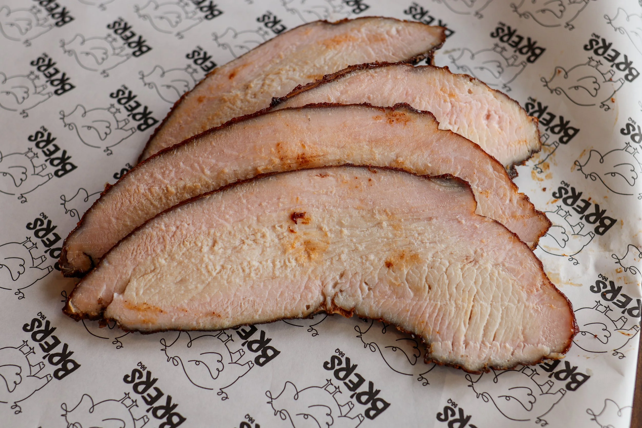 Features Ingredients Interview Road Trip Restaurant barbecue BBQ Bedford Bedford Hills Westchester Homepage Border Crossing for Barbecue: Br’ers BBQ in Bedford Hills Andrew Dominick March 29, 2024 Baby back rack Barbecue is one of those things that people will travel for. Just over the Connecticut line, specifically in Bedford Hills, is a small, mostly takeout BBQ “shack” in a residential neighborhood, that’s actually not too far of a drive for folks in Stamford, Greenwich, Ridgefield, New Canaan, and their surrounding areas. Br’ers smokes their brisket and pork shoulder for around 14 hours and the ribs for about five. “People always ask what style it is and we did research on Kansas City BBQ, but it’s not that, it’s New York BBQ,” O’Neill says. “All scratch made rubs and sauces, and we like to play around and have fun (with our BBQ).” Br’ers BBQ—pronounced brears, like “bears” with the added “r” after the “b”, which is southern slang for “brothers”—opened in May of 2023 and is the little sister spot of a restaurant you’ve probably heard of if you occasionally cross over into Westchester for a meal. Those restaurants in question? Purdys Farmer & The Fish, Hudson Farmer & The Fish in Sleepy Hollow, and Bistro De Ville in Scarsdale, and the subject at hand, Br’ers, are all in the same family. At Br’ers, you’ll see a trio of familiar faces in terms of who’s involved; Michael Kaphan (chef, farmer, and owner), Billy Stanton (general manager at the other spots and an owner at Br’ers), and longtime chef de cuisine at Farmer & The Fish and now co-owner of Br’ers, Kevin O’Neill. Chef/owner Kevin O’Neill and Br’ers’ exec chef Alexa Fitzgerald. “She did her externship with us at Farmer & The Fish,” O’Neill says. “She went onto other things, but when this opportunity came about, I tried to get her back. She’s a great worker, has lot of tenacity, she’s young, hungry, and has experience with us.” How an offshoot BBQ joint came to fruition last year, actually started years ago, but got ramped up during the height of the pandemic shutdowns and restrictions. “I started with Farmer & The Fish in 2016, and one of the first projects that Mike and I collaborated on was the smokehouse program there,” O’Neill explains. “He had his own version of it doing smoked bacon, bacon ribs, and other specials just to have fun with it. When I came aboard, he started construction on an actual smokehouse where before he was using a little woodchip smoker kinda thing.” Turkey. The not dry kind. Br’ers gives it a constant mopping throughout the smoke. Pre COVID, Mike and Kevin did their research, had a smokehouse built, and started smoking different cuts of meat not limited to bacon, but whole pigs, ribs, chicken, and brisket, and started selling it one or two times per week out of the small farmers market that sits outside of their Purdys restaurant. “The pandemic hit and BBQ became more of a staple for us,” O’Neill says. “The community that surrounds Farmer & The Fish gave us a lot of support and a lot of them are returning customers that really helped us get through some tough waters. Our smokehouse program evolved out of that.” Your eyes aren’t deceiving you, that is an ice cream machine! Br’ers features Ronnybrook Farm soft serve in cones, cups, sundaes, and milkshakes when the when it’s not the depth of winter. It’s no surprise that their quad of restaurants would use ingredients from their Purdys farm. The hot sauce uses their home grown Fresno chilis. When approached by one of their business partners who owns the building with a then vacant space in a part of Bedford Hills that’s surrounded by houses, BBQ wasn’t even their first-choice concept. They originally thought they were going to open a deli there where a bodega once occupied. Think along the lines of brining and smoking their own turkey, smoking their own hams, and slicing them made-to-order for sandwiches. “It didn’t work out, but about a year later, it came together,” O’Neill says. “The first time around, we weren’t feeling the BBQ concept, then we said we know we do good BBQ and the restaurants have great fried chicken, so we put the two together.” When you get the fried chicken, get as many sauces as you can! Hot honey is also house-infused with a variety of dried Spanish chilis, then there’s buttermilk herb ranch, a sweet/sour house BBQ sauce, and a “Swine Sauce” that’s a play on a honey mustard, just a touch more vinegary and acidic. The end result is a small menu of smoked meats including tender baby backs, turkey, thick-cut slices of 14-hour smoked Angus brisket, hot smoked salmon, and chopped pork shoulder that O’Neill describes as not as finely chopped and not overly sauced and sludgy. Br’ers’ is hand broken, chopped, with “some” sauce to let the meat and smoke shine. Those who’ve had the fried chicken at Purdys, however, shouldn’t expect the same exact recipe. “It’s buttermilk fried chicken,” O’Neill says. “It marinates in buttermilk, salt and pepper flour. Simple. No more to it than that.” The boneless fried thighs show up in the menu elsewhere in a crispy buffalo chicken wrap and as part of a Nashville hot chicken sandwich with pimento cheese and thinly sliced dill pickles. What Br’ers BBQ is doing, too, is putting their own farm to use whenever they can. Some of those sandwiches and wrap specials they’re rolling out will often times include an ingredient grown by them. Even the rubs you see are made in-house, as is their lineup of homemade sauces. They’re also not afraid to try new things. O’Neill, along with chef and Brookfield native, Alexa Fitzgerald, are constantly trying out new sandwiches—some of them extreme and will require a nap soon after consumption—and different types of cured and smoked meats. Once a month, customers should watch out for a pastrami special that