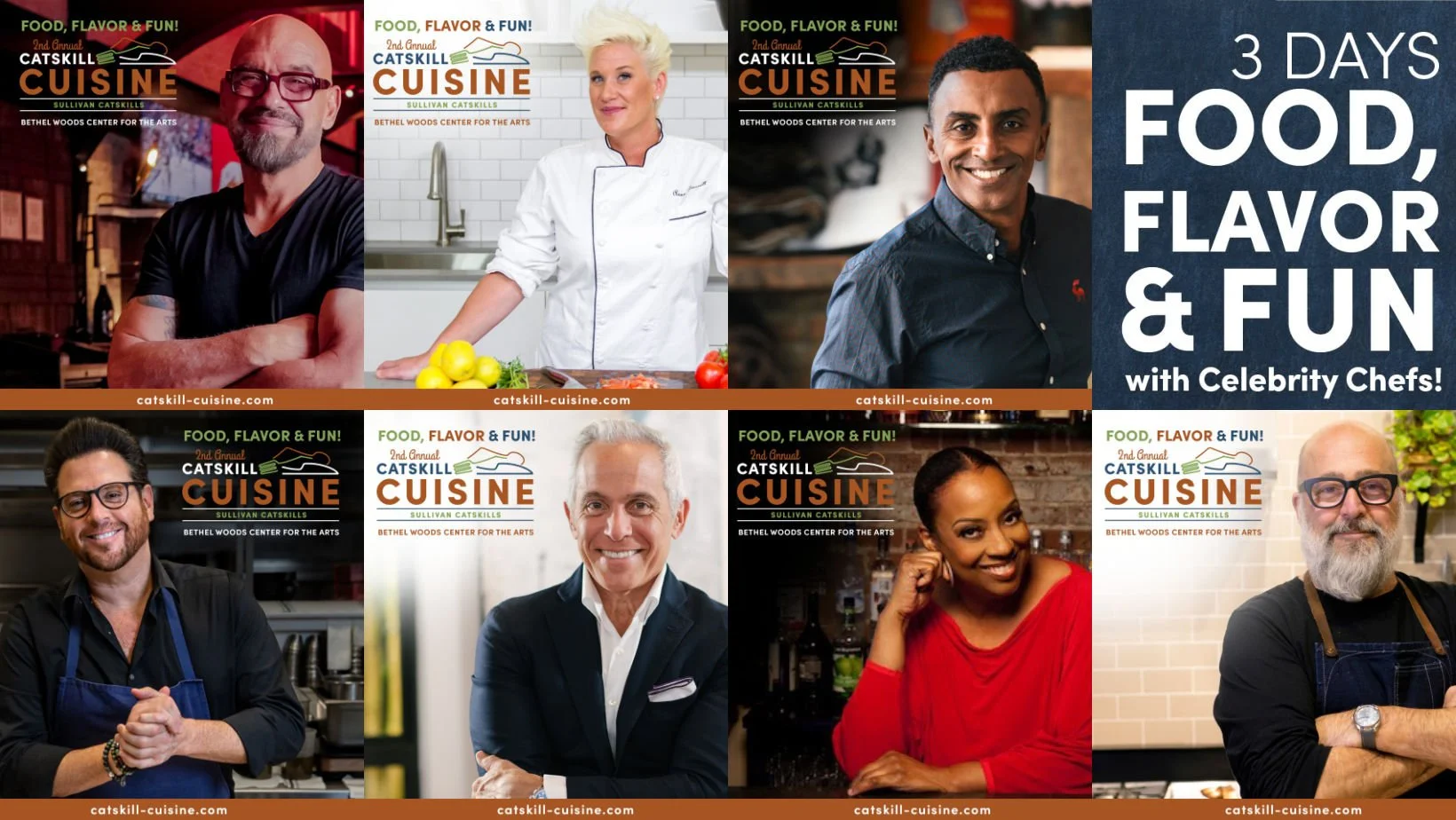Features Homepage Food Festival Catskills Celebrity Chef Chef's Tasting Tix On Sale: Catskill Cuisine 2024- Celebrity Chefs, Food Festival & Mother's Day Brunch! (sponsored post) CTbites Team April 22, 2024 Sullivan Catskills Visitors Association and Bethel Woods Center for the Arts are teaming up for the second annual immersive culinary event coined Catskill Cuisine, taking place May 10-12, 2024, sponsored by elite partner Labelle Farms and presented by Resorts World Catskills and Bethel Woods.Tickets are on sale now with prices starting at $64 for GA & $179 for VIP. All purchasing links can be found at Catskill-Cuisine.com.Drawing on the success of last year’s inaugural event, Catskill Cuisine 2024 will be a bigger extravaganza spanning the weekend, with the one-day festival portion being held at the historic site of the 1969 Woodstock Festival (Bethel Woods Center for the Arts).“Bethel Woods was honored to host Catskill Cuisine last year,” said Eric Frances, CEO of Bethel Woods Center for the Arts and Chair of the SCVA. “We are so pleased to see the event grow into the multi-day festival we always dreamed it could be.” In addition to the Food Festival, the event will feature a Charity Golf Tournament and exclusive Mother’s Day Brunch both featuring culinary offerings curated by the celebrity chefs. Catskill Cuisine will bring visitors, entertainment, and cuisine together while allowing Sullivan Catskills culinary experts to shine and promote the region’s agritourism and local farms, craft food, and beverage makers.Thousands of Food Festival attendees will be able to explore Bethel Woods Center for the Arts’ iconic grounds, and take part in tastings, demos, meet and greets, book signings, and a local producer marketplace– all representing the Sullivan Catskills' diverse and delicious bounty. Confirmed celebrity chefs include Andrew Zimmern, Michael Symon, Scott Conant, Marcus Samuelsson, Anne Burrell, Melba Wilson and Geoffrey Zakarian, amongst others.The ScheduleFriday, May 10Catskill Cuisine Celebrity & Chef InvitationalPlay the historic Monster Golf Course at Resorts World Catskills with celebrity chefs to support A Single Bite, a Sullivan Catskills non-profit organization that is educating and feeding hungry neighbors with real and healthy local food. This will include a mix of friendly competition and delicious food, plus an exclusive Post Dinner Reception with Scott Conant and Marcus Samuelsson.Saturday, May 11Food Festival ExtravaganzaThe culinary journey will feature local, national, and international cuisine, live cooking demos, and the chance to taste dishes crafted by renowned chefs.Sunday, May 12Mother’s Day BrunchEnjoy a private Sunday brunch experience hosted and curated by celebrity chefs Anne Burrell and Melba Wilson.“We are thrilled to bring our community together for an even more multifaceted destination event this year,” said Roberta Byron-Lockwood, Sullivan Catskills Visitors Association President & CEO. “From our craft beverage trail to our James Beard-recognized chefs and breadth of farm-to-table offerings, the Sullivan Catskills continues to draw regional and national recognition for our culinary offerings, and we can't wait to showcase it all to our guests.”With experiences suited to a variety of interests and audiences, ticket offerings include General Admission and VIP with separate ticketing for special events. Please visit www.catskill-cuisine.com for more information.