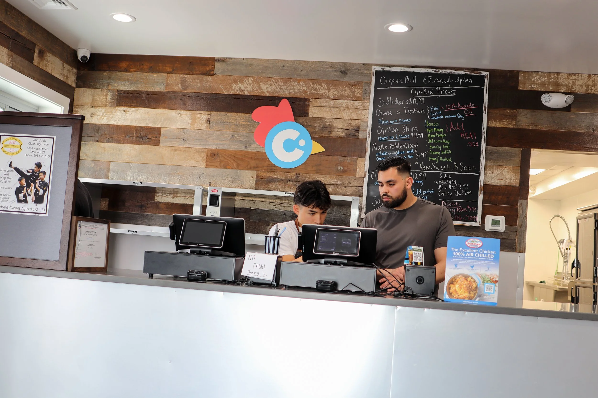Features Ingredients Restaurant Fast Casual Fried Chicken Fried Chicken Sandwich Stamford Homepage Cwispy Chkn in Stamford: Why We Love These Chicken Sliders + Andrew Dominick July 19, 2024 Fried chicken sliders are a focal point of the menu at Cwispy Chkn and you can keep it plain (with just pickles) or you can get yours sauced with homemade glazes like miso ginger, jalapeño mayo, smoky BBQ, honey mustard, and more. Fried chicken sandwiches are hot right now. And with no signs of dwindling down anytime soon, places that serve crispy, juicy fried chicken on a bun are popping up all over. For Cwispy Chkn—which opened in November 2023 in the former Magee’s Curbside in Stamford’s Shippan neighborhood—maybe they’re guilty of riding the fried chicken sandwich wave, but the difference is, they’re doing things their way. Christopher Tulino (left) and Karsten Kragh (who said he was inspired to cook while enrolled in Stamford High School’s Culinary Pathway program) aim to bring the area a new, fresher, healthier take on fried chicken. Behind Cwispy Chkn is a pair of friends, Karsten Kragh and Christopher Tulino, who met while attending culinary school at Johnson & Wales University in Providence. Kragh, a Stamford native and Stamford High School graduate, and Tulino, who’s from Rhode Island, stayed in touch post college while they each worked on lines at restaurants in the general area. In addition to serving these custom milk buns from Norwalk’s Wave Hill Breads, Cwispy Chkn is all about supporting U.S. based businesses and small businesses when it comes to ingredients. They also use Highland Sugarworks Maple Syrup as an accompaniment to their waffles. It wasn’t until Kragh, who ended up back in Stamford, had an idea, and when paired with the vacant Magee’s location, he only needed his friend to make it come to fruition. “I was working and living in Williamsburg at the time,” Tulino says. “Karsten called me and asked me if I was happy.”With Tulino on board, the two had a fast casual idea that wouldn’t be massive, oil saturated fried chicken sandwiches with a pound of coleslaw as a topping. Their sandwiches would be sliders, fried in a healthier avocado oil, and the chicken would be of high quality, specifically Bell & Evans Organic breasts. KFC has nothing on these hand-cut wedges! Also fried in avocado oil and seasoned with a sprinkle of Hawaiian pink salt. You may occasionally see the wedges dressed up as a poutine special, by the way. Wedges? Mac & cheese? Or both? Cwispy’s mac has a bit of miso in there for an added savory, toasty, salty-sweetness. A few desserts include a waffle and these “Cwispy Bites,” a salted caramel pastry that’s much like eating fried mini chunks of bread pudding. For Kragh, who’s open about his own struggles with high cholesterol, all of this was especially important to find an alternative to chicken that was fried in vegetable, peanut, or other oils that don’t have the health benefits of avocado oil—which include reducing cholesterol, improving heart health, and being rich in antioxidants among many others. Now with a firm plan in place, they spent a solid couple of years getting the space up to snuff for their chicken concept, getting all the proper licensing, and doing plenty of R&D for about six months to nail down a final fried chicken recipe. View this post on Instagram A post shared by Cwispy CHKN (@cwispychkn) After many Instagram reels teasing that they were close to an opening date, Cwispy Chkn started slinging sliders, tenders + waffles, hand cut avocado oil fried potato wedges, and more on November 17, 2023. What you can expect from Cwispy Chkn, though, aren’t just plain pieces of chicken. Being that both Tulino and Kragh are chefs, they’re making every glaze, sauce, and dressing from scratch, with plenty of Asian flavors like their miso-ginger dressing, plus a miso cheese sauce that coats their homemade mac and cheese. And speaking of ingredients, Cwispy stays away from anything artificial to be a little more health conscious as it pertains to fast casual, and they stick to buying products from businesses based in the United States. View this post on Instagram A post shared by Cwispy CHKN (@cwispychkn) And what they’re not making themselves—like the mini slider buns and waffle mix—they’ve worked on closely with Wave Hill Breads in Norwalk to come up with something they’re thrilled about. The waffles they’re serving either as a solo item or as a pair with two jumbo, juicy tenders, are unique in a way that they’re not only thin and crispy (or CWISPY, if we’re sticking with their theme), they have buttery, flaky layers like a croissant. I asked about it a few times, but much like their chicken breading/batter, they’re keeping mum. While Cwispy Chkn does lend well to expansion, something Tulino and Kragh are absolutely interested in sometime in the future, right now they’re focused on their flagship. They did tease a possible partnership on a different concept down the road, but much like their secret chicken recipe and waffle mix, this one’s staying locked in the coop for the time being. 72 Magee Avenue, Stamfordcwispychkn.com