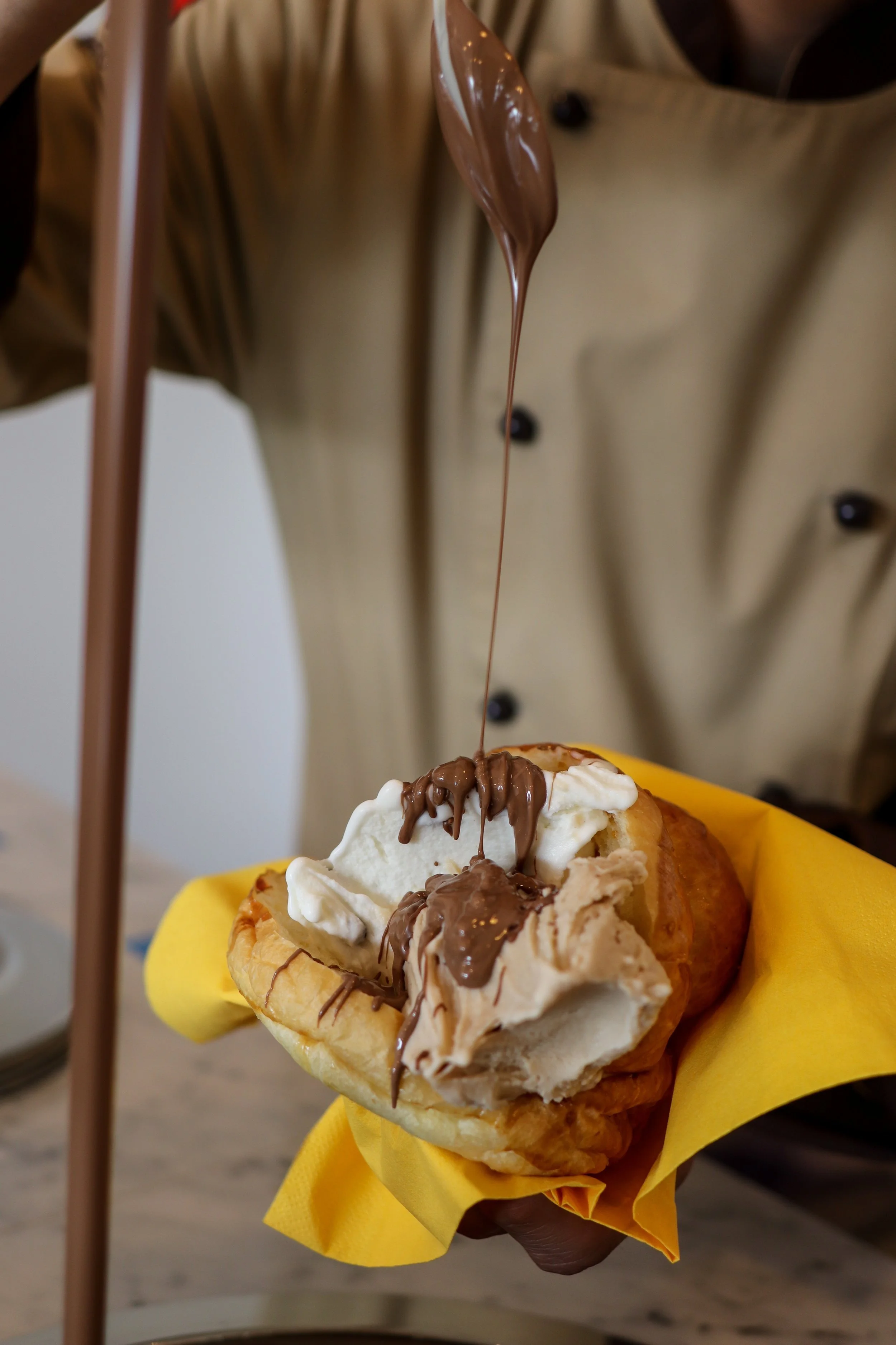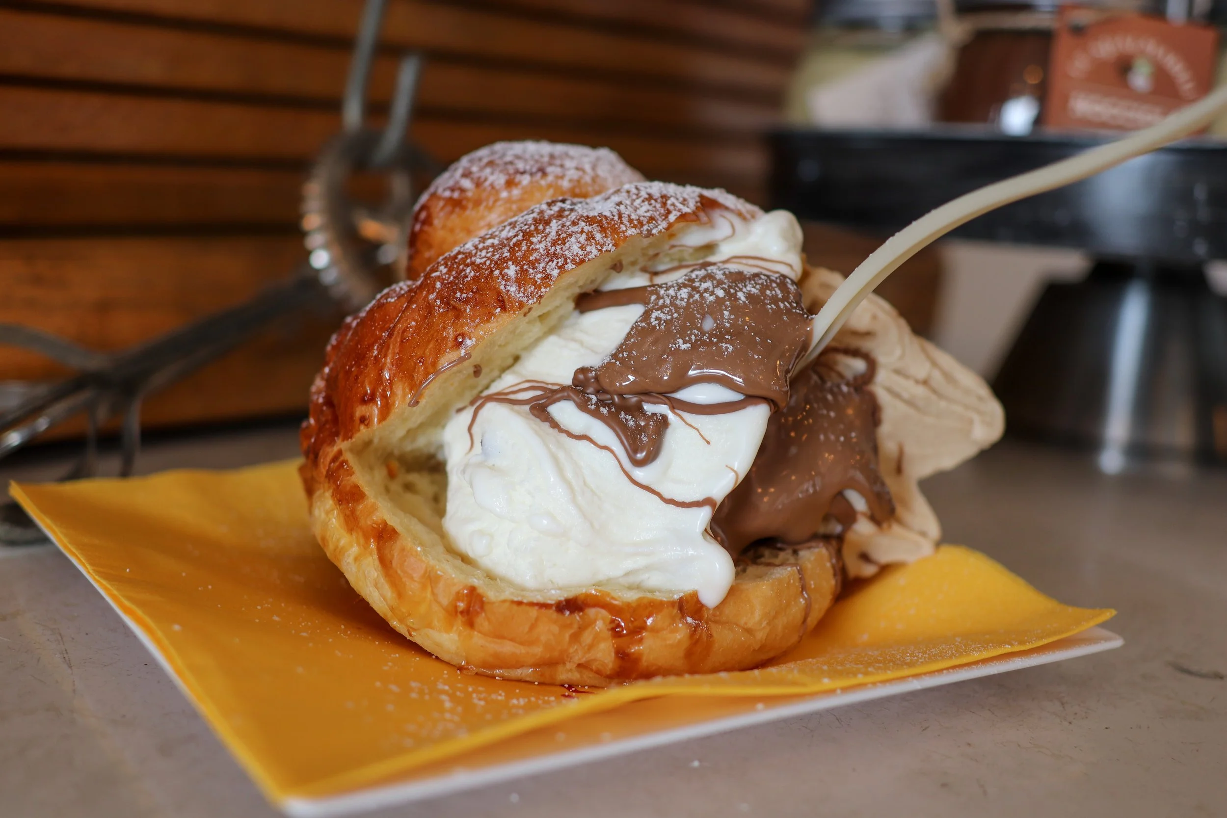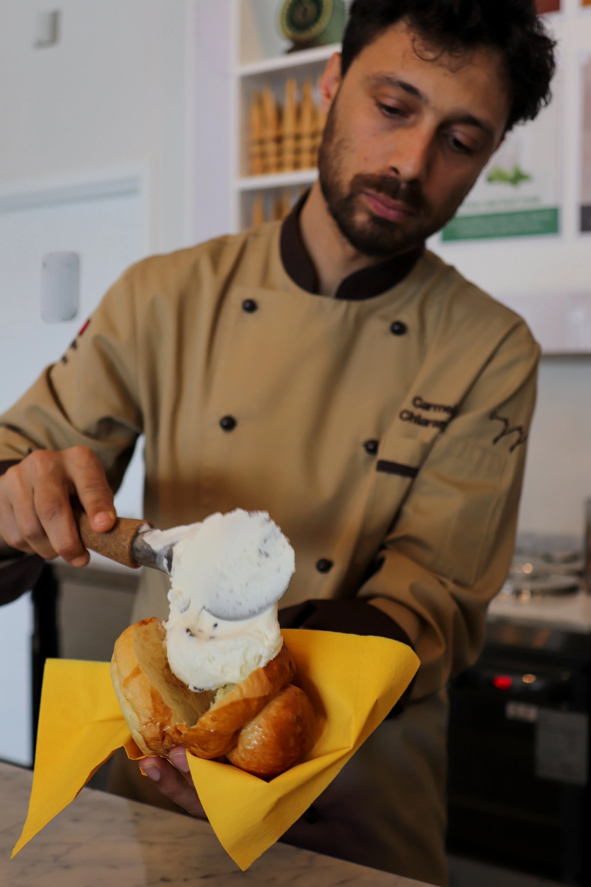 Features Ice Cream Ingredients Interview Gelato ice cream Ingredients Norwalk Interview Italian Scoop This: OGGI Gelato Opens First Shop in the U.S. in Norwalk Andrew Dominick June 03, 2024 Now THAT’S a sandwich! Udine, Trieste, Pordenone, Rome, Barcelona, Santiago, Athens, and…Norwalk, Connecticut? So, you usually don’t see six European cities and one South American city mentioned in the same breath as Norwalk, but when it comes to gelato and master gelato maker, Carmelo Chiaramida, this is perhaps the one time it applies. Maurizio Ricci (left), Carmelo Chiaramida (middle), and Graziano Ricci (right) have created their own “Little Italy” with OGGI being stationed between Romanacci and Osteria Romana. What Chiaramida is doing in Norwalk, opening his first OGGI Gelato shop in America, is simply every local ice cream lover’s good fortune. Call it a coincidence through connection, actually. And it’s best spelled out by Maurizio Ricci, who along with his brother, Graziano, are the founders of Romanacci and Norwalk’s Osteria Romana. Chiaramida prepares a cone. The waffle cone gets a drizzling of liquid chocolate and you can stack them as high as three scoops. The flavors here are dark chocolate, pistachio, and milk cream. “We met Carmelo a few years ago when he ate at Osteria Romana,” Maurizio explains. “A mutual friend introduced us when Carmelo was in New York City exploring an opportunity to open OGGI there. They ended up eating at Osteria Romana. He very friendly asked about how many people come to Connecticut, business questions, and he mentioned shops in Spain, Greece, Italy, Chile. I asked how he started it, and he said he was just like us because we’re trying to open Romanacci up to that.”Graziano chimes in, “We have similar values and a similar situation that we came here and started with not a lot of money, and we’re all passionate people.” Gelato is of course available in to-go pints. OGGI’s homemade pastes are for sale as well. Carmelo casually walks in 90 minutes before OGGI Norwalk opens. Unassuming, casually dressed, too. Talk to him for a bit and you’ll feel his passion for the gelato craft all while remaining humble. In his home country, Mauricio says, “This guy’s a big deal in Italy!” In Norwalk, no one knows him…yet. But you should get to know a little more about his gelato origin story and what he’s doing that other gelato makers likely aren’t doing. In 2005, Carmelo wasn’t even making ice cream. He played futbol—that’s soccer, not the NFL. The way he tells the story is he sought a summer job and a friend connected him with a new gelateria shop that was set to open in his hometown of Udine. From that point on, he was hooked. Gelato stuffed inside brioche is common in Italy. The Riccis and Chiaramida just needed someone to make the brioche. “Pierluigi came in one day and dropped off some sourdough and we could see his passion,” Maurizio says. “He’s on another level.” “I opened my first shop in 2007 (called Al Duomo),” he says. “I was so concerned and so afraid to start my own business. My family doesn’t have money to help me open something, so they told me to go to the bank to get a loan. I was only 20, so it was scary.”After three years of operating his first gelateria, Carmelo was approached by Fabbri, a company that produces pastes and powders for gelato—you may be familiar with from their delicious Amarena cherries—for a job opportunity where he also got to attend Fabbri’s own gelato and pastry school. All of OGGI’s gelato is free of artificial ingredients and free of any dyes to make it appear brighter. Everything you see, color wise, is natural. “I ended up working there for four years, traveling a lot, lots of hotels, but I just wanted to make gelato, just not like my colleagues, I wanted to be different,” Carmelo says. “So many gelato makers use industrial products, for example, hazelnut, vanilla, and lemon pastes. It is already half prepped. Some of it is still good, it’s just not pure. I wanted to make something that is 100% mine. I wanted it to be unique, not using the same products as everyone else. How many of them make it themselves?”For two years, Carmelo studied and worked hard at making his own book of recipes that is completely free of any industrial products, roasting his own hazelnuts, cutting fresh, local fruit, and making his own pastes. And in a full circle gelato moment, in 2014, Carmelo even bought the same shop that first hired him to make gelato back in 2005, opening the very first OGGI, the Italian word for “today.” Carmelo, who was no stranger to gelato festivals and competitions before, wound up winning a big one that he credits with putting him on the map. But with recognition and accolades, offers will trickle in. “A big Italian company made me an offer to open a lot of shops, but we couldn’t come to an agreement,” he says. “I felt better to not accept the offer because I didn’t want to change the mentality of how I operate. I’m looking for guys like this (as he points to Maurizio and Graziano). Normal, hardworking. We think alike, we kinda look alike.”Maurizio interrupts, “Someone just asked me if he is my son! What?! My son?!”“We clicked,” Carmelo says. “He went all over and he didn’t feel the connection,” Maurizio continues. “We looked everywhere; Westport, Greenwich, Fairfield. When the landlord of this plaza had a space between our restaurants, he called us to ask if we wanted to take it before he offered it to anyone else. We called Carmelo right away. We know it’s good for our customers that want something like this, and we want to bring something excellent here. It’s not just a partnership with anyone, he’s the best of the best. People here don’t know his brand yet. In Europe they would know. In America, you get a drink after dinner. In Italy, you go for a gelato.” What you’re getting with OGGI is a