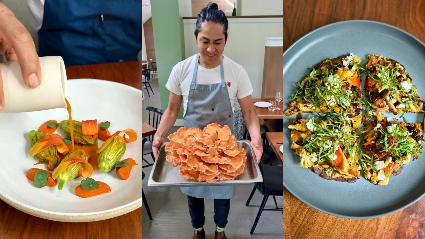 Restaurant Washington Litchfield County Homepage Chef Talk Community table in Washington: Meet Chef Bolivar Hilario Jeff "jfood" Schlesinger August 05, 2025 “Community table's mission is to sustainably prepare the highest quality, locally grown, and procured ingredients to serve its community in a casual, vibrant atmosphere. Ct values its partnerships with local farms that bring the best produce of the season to create delicious recipes for their customer’s enjoyment each time they visit the restaurant.” -Community Table Community table is housed in a nondescript, quaint structure on Route 202 in New Preston, and presents a dining experience that blends effortlessly into its rural setting. The only recognizable landmark to announce your arrival is a simplistic roadside sign with a singular orange “Ct” logo on a white background, reflecting the restaurant's core value: a strong focus on community with an upper case "C" and a less formal, more shared dining experience at the table with a lower case "t". A farmer's porch extends across the front of the building, and a large parking lot is located to one side. The entrance is immediately to the left of a striking, vertically soaring, organic, red metal sculpture, leading guests directly into the bar area. The hostess extends a warm greeting when you enter the bar, the most lively of the restaurant's three dining areas. Choose this room or wander down the hallway to the right and into the second room, which provides both a communal atmosphere with its large table, or a few intimate, two-person tables. Continue to the third, and my personal favorite, secluded back room, which blends warmth and elegance, creating a relaxed atmosphere for conversation amongst the couples, as well as shared amongst friends. Overseeing the kitchen since September 2023 is head chef Bolivar Hilario, who describes his culinary style as a fusion of his family’s Mexican heritage with French, Italian, Nordic and Japanese influences. He was raised in Florida, and once he found his passion for cooking, he travelled to New York and worked for Enrique Olvera, the world-renowned Mexican chef at Cosme, thereafter he broadened his skills at Aska, a two-Michelin-starred restaurant known for its Scandinavian-inspired cuisine, Chumley’s, the Michelin-starred Musket Room, and 69 Leonard and Shoji, where he was introduced to Japanese theories and techniques. He credits the experiences at 69 Leonard and Shoji as his epiphany to the Japanese centuries-honed principles of preparation and allowing the food to speak for the dish, a constant he currently incorporates into each of his creations at Ct. The menu exposes the guests to flavors and textures to dazzle the palate, unveiling combinations designed to awaken the senses. Espousing the Farm to Table mantra, Hilario has developed relationships with local growers like Renée Giroux at Earth’s Palate in Warren, The Oracle Mushroom Company in Kent and Krafted Brew Lab in Bantam and as well as others in the region. Wanting the guests to enjoy these bounties year-round, he not only prepares the fresh vegetables and herbs for the daily menu but also preserves and ferments many for his winter guests to enjoy. I highly recommend starting the culinary adventure by ordering the house-made six-grain sourdough bread with herb butter. Hilario's personal sourdough starter is the foundation of the bread, baked fresh several days per week. This is one of the most delicious breads anywhere, served with herb butter, and showcases a firm crust and a moist, opaque interior, delivering a richness that sets the stage for the remainder of your visit.The current menu offers several delightful options, the first a Blue Corn flour tlayuda. This dish, akin to a flat, topped taco, features house-made, extra-thin tortillas layered with a savory salsa macha base, generously adorned with locally sourced Oracle mushrooms, a creamy caramelized cauliflower puree, delicate tiny purple onions, vibrant Earth's Palate flowers, and a scattering of queso fresco. It was presented in four wedges, and the visual composition was matched only by its remarkable flavors. The first bite was an explosion of flavors and textures, beginning with the earthiness of a myriad of mushrooms and other vegetables and herbs, and finishes with a shot of spiciness. For those interested in a bright and light appetizer, choose the steamed squash blossoms, stuffed with shrimp mousseline, Guajillo pepper, squash, Earth’s Palate shiso, red pepper mole, and topped with wild foraged tiger lily petals. While squash blossoms are normally filled with cheese and fried, Hilario’s presentation softens the approach with a steamed version, stuffed with a mousseline of Gulf shrimp, cream, chives and a touch of one of his favorite herbs, tarragon. The dish was finished with a light sauce made from the shrimp shells to which he added some dashi from his Japanese training, plus chive and ramp oils. He described the dish as “local meets Japanese…with my heritage of Mexican cuisine.” The dish was fantastic, light, flavorful and full of aromatics from the oils and herbs.Leave room for dessert because the new dessert chef is creating incredible final acts.The first was a deconstructed “strawberry shortcake” which takes the three basic elements, sweet strawberries, tender almond gluten-free shortcake, and rich whipped cream, to a higher level with the addition of a scoop of strawberry ice cream, slightly spiked with a touch of vodka. The composition began with the cylindrical deliciousness of the shortbread, which was about as perfect as any I have tasted, then the chef surrounded this disk with a delightful and deliciously creamy whipped cream. The final element, the strawberries, which have been poached in lemon verbena to enhance the fruit’s natural sweetness were placed atop. The chef topped this creation with dehydrated strawberry flakes. The addition of the strawberry ice cream ele