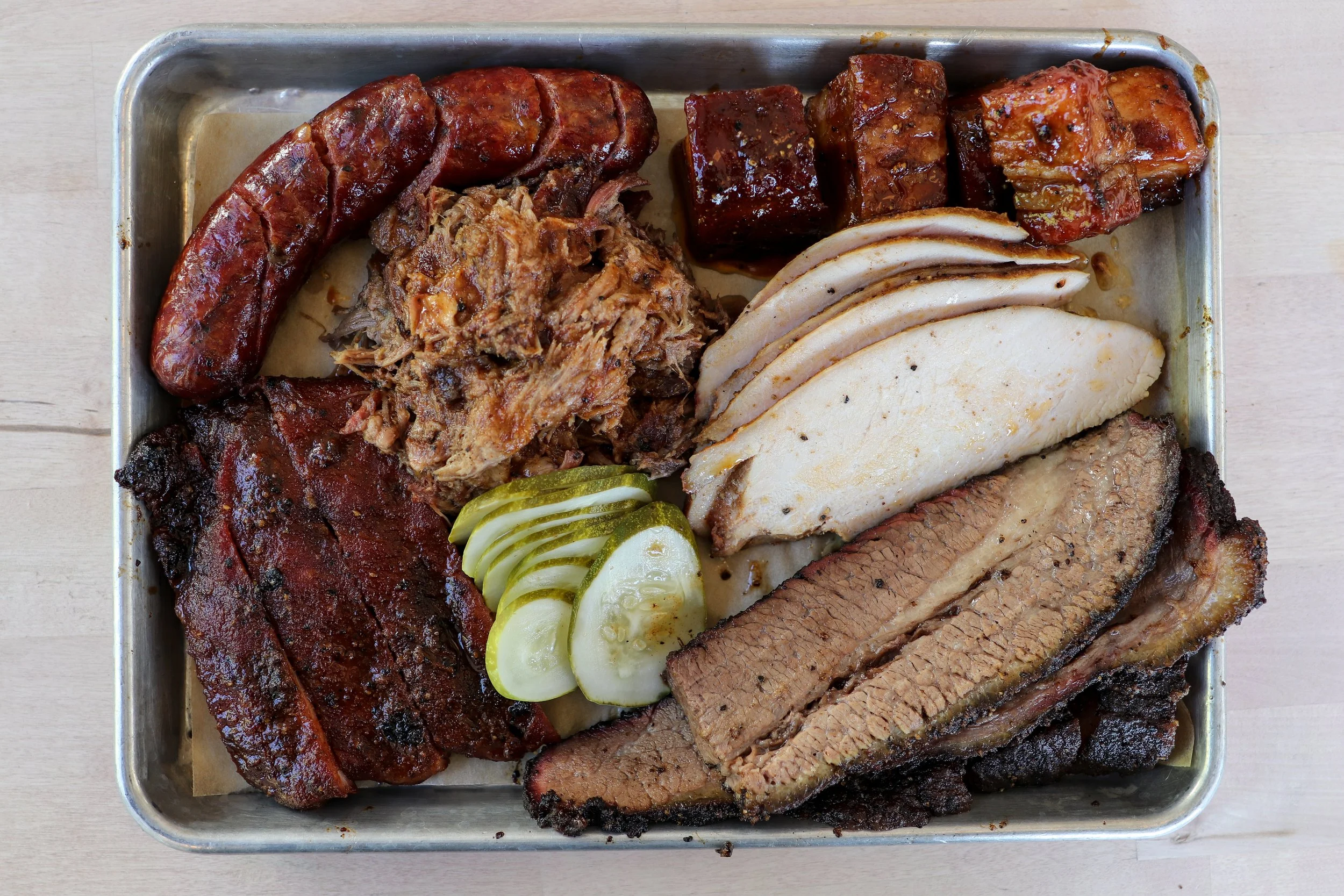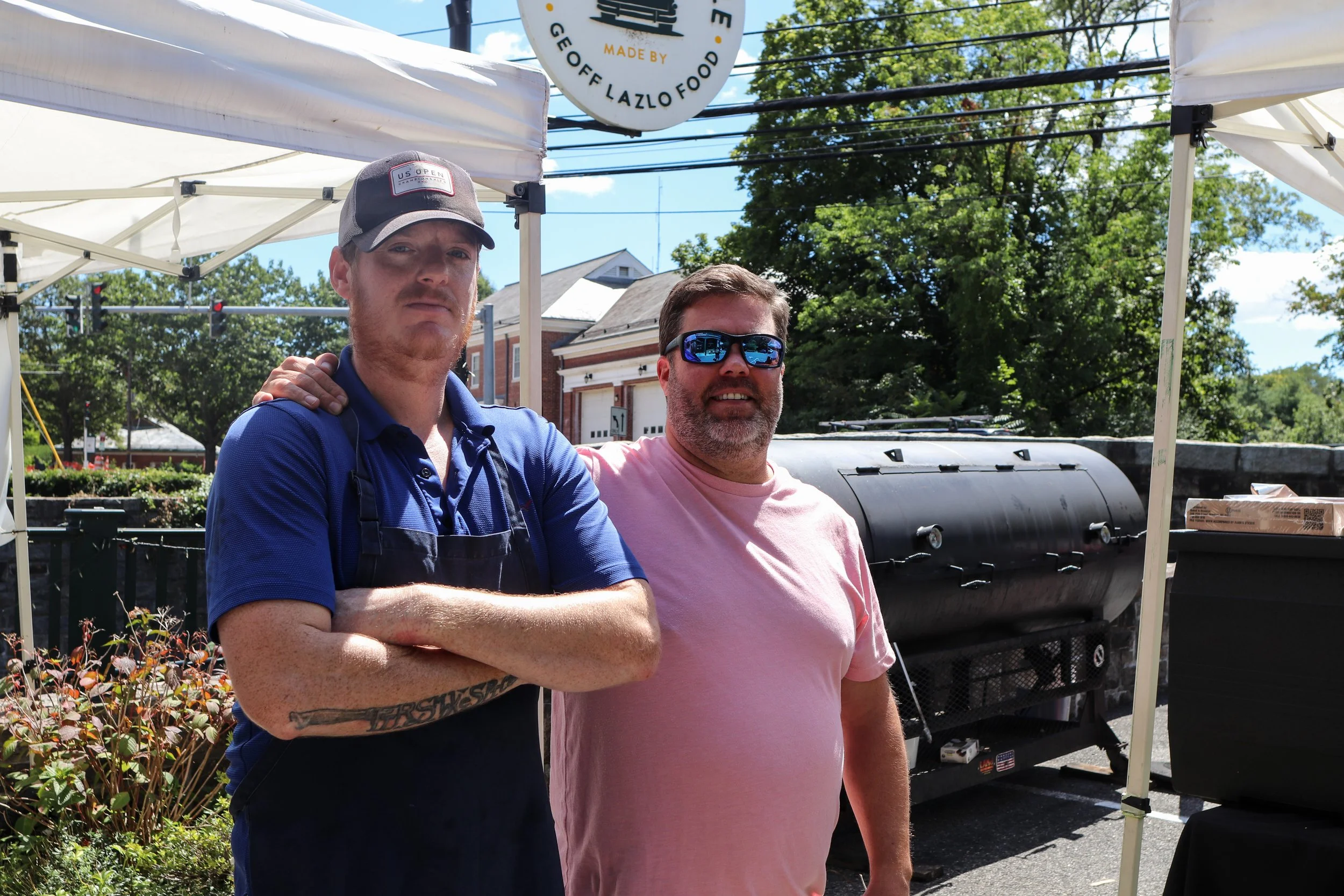 Events Features Ingredients Interview Restaurant BBQ Greenwich Pop-Up Interview Comfort Food What's Geoff Smoking? A BBQ Pop Up at The Country Table in Greenwich Andrew Dominick September 16, 2025 When Geoff Lazlo opened his gourmet sandwich shop-cafe-market, The Country Table, back in 2021, he recalls it being a “crazy stressful time.” Some of Lazlo’s struggles were navigating pandemic restrictions, wearing masks over long periods of time in a hot kitchen, and not having adequate staff. “I put all my money into this,” he says. “We had all these state mandates to navigate. My cooks were coming in hammered or stoned, some employees were stealing. We couldn’t hire anyone. I remember one day, the kitchen literally incinerated whole chickens, like $300 worth of good quality chickens. I was waking up at 4 a.m. to do my stretches, shower, have a coffee, just so I could get here at 6 a.m. so I could run the kitchen the right way. I was putting in 100 hours a week easy.” Lazlo, stops, kinda stomps his foot like you would to wake it up from it falling asleep. “That’s from all the hours,” he says. “I have a fractured vertebra. But, you know, the first year goes by and I said to myself, ‘I’m supposed to be having fun.’ Opening this place should have been my dream, but it was becoming my nightmare.” “We’re not cutting corners on quality, on meat, or on techniques,” Lazlo says. “We’re doing it right. We just started making our own (jalapeño-cheddar) sausages.” Something that Lazlo reflected back on wasn’t his storied culinary career at places like Gramercy Tavern, The Whelk, or Mill Street Bar & Table, it was smoking meats and listening to music. “It was about what brings me back to what my groove was,” he says. “Twenty years ago, I had this little smoker. I’d invite my friends over, crank up the Grateful Dead, have a couple beers, and have a good time.”With a couple of modest smokers, Lazlo started a once-a-week BBQ pop up. Just him, sunscreen and a hat on, slicing up slow smoked brisket, ribs, and the like while multitasking by grilling oysters, making shrimp tacos, or assembling butter drenched lobster rolls. “I started doing it to fulfill something in me and the community response was great; it was the most successful thing we had ever done up to that point,” he says. “Maybe lobster rolls was stretching the BBQ theme too much, but it’s called What’s Geoff Smoking? because it could be anything you want it to be. I wanted it to be fun and not say it has to be a certain type of BBQ.”What’s Geoff Smoking? had caught on and it started to bring in consistent locals and customers from Westchester and further north of Greenwich, so like anything that’s drumming up interest, growth is inevitable. Cuber (left) and Lazlo pose outside their smoker when there was a lull in what was a steady flow of customers. Show up, and you’ll surely hear a regular say how terrific the BBQ is. On Cuber, Lazlo says, “I basically told him, I’m gonna give you this (BBQ pop up). “I trust him and I knew I couldn’t dedicate 18 hours or more, once a week, into doing this even if I wanted to. I have to be the owner, GM, chef, and run the catering.” One day, in walks Ryan Cuber, a local pitmaster and someone who’s been covered on CTbites before from his stints at Mason Street BBQ, his food truck, Savory Smoke Barbecue, and before that, Mason Dixon Smokehouse in Stamford.“His resume says pitmaster and I’m like, ‘What the fuck are you doing here?’” Lazlo says. “He tells me his story and I figured we need to do this thing together. He’s a legit Texas BBQ guy. With him, we can elevate this little side project we have going on here and do it at a level we didn’t have before. As a chef, I love smoking meat and I understand the concept of it, but I can’t do it to the level that he does it. I’m trained to make food taste really good, no matter how I get there. He has a totally different process. I didn’t know guys like Ryan existed and were just out there. Us meeting was really important.” Pork bites are practically candied, with a tangy, sweet, mustardy glaze. Pulled pork sandwich, piled super high. In an interview five years ago, Cuber told us that his brisket is smoked for upwards of 16 hours, using either white or red oak and a slow, clean burn. “Dirty smoke (that burns black) results in a bitter taste,” Cuber says. “You don’t want it to taste just like wood.” Every Saturday (at least that’s the goal, to be weekly) from 11 a.m. until 3 p.m. (or until sell out), you can swing by the parking lot and get smoked meat by the half-pound or you can get it on a sandwich, plus, there are fried potatoes (tots, fries, and sweet potato fries), and all the appropriate BBQ sides like mac & cheese, coleslaw, and maple butter cornbread. Cuber’s brisket figures to be a constant, and so does his smoked turkey, pulled pork, and sticky sweet with a touch of heat in his St. Louis ribs that all come off a Lang Smoker that The Country Table acquired from Cuber’s former residence at Mason Dixon Smokehouse so they can churn out more BBQ. What Cuber is expecting to bring to What’s Geoff Smoking? is consistency, not only with the BBQ, but by hopefully not skipping a Saturday and by offering it year-round. Cuber also teased, “Well, family and BBQ go hand-in-hand, and my wife is Peruvian, so we might throw in some Peruvian influence soon.”As for Lazlo, a self-professed dreamer, he hinted at wanting to bring in live music, something he did at this pop up early on. “I want to have a rock band, get some kegs, and have 200 people in our backyard,” he says. “Ryan’s the first guy I trusted to take this and run with it. I think it’s an awesome concept mixed with Ryan’s skills.”1 Glenville Street, Greenwich203.701.4340, country-table.com