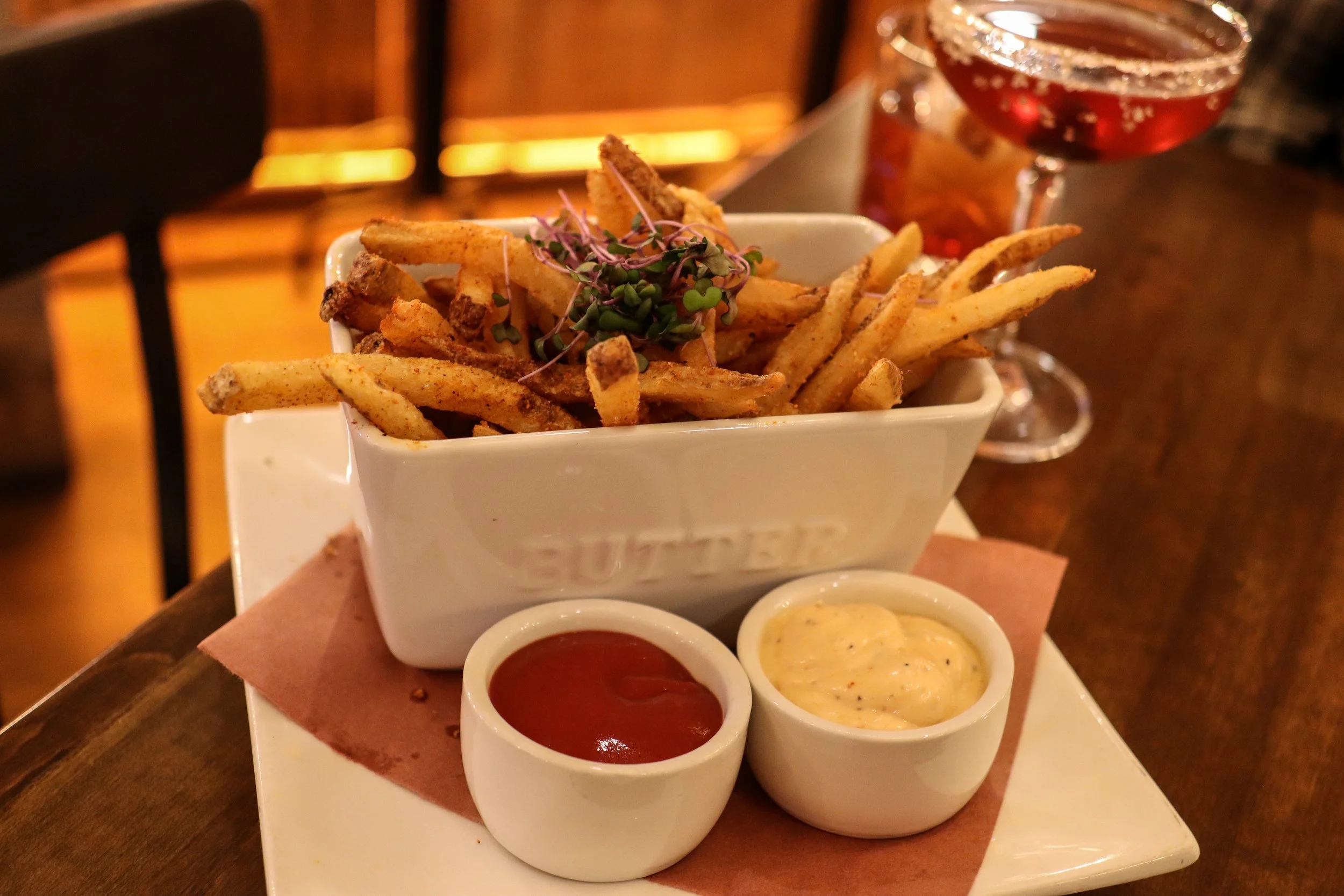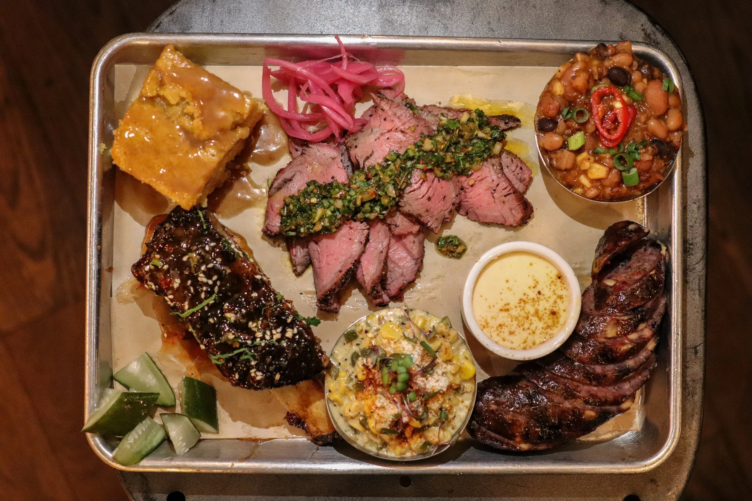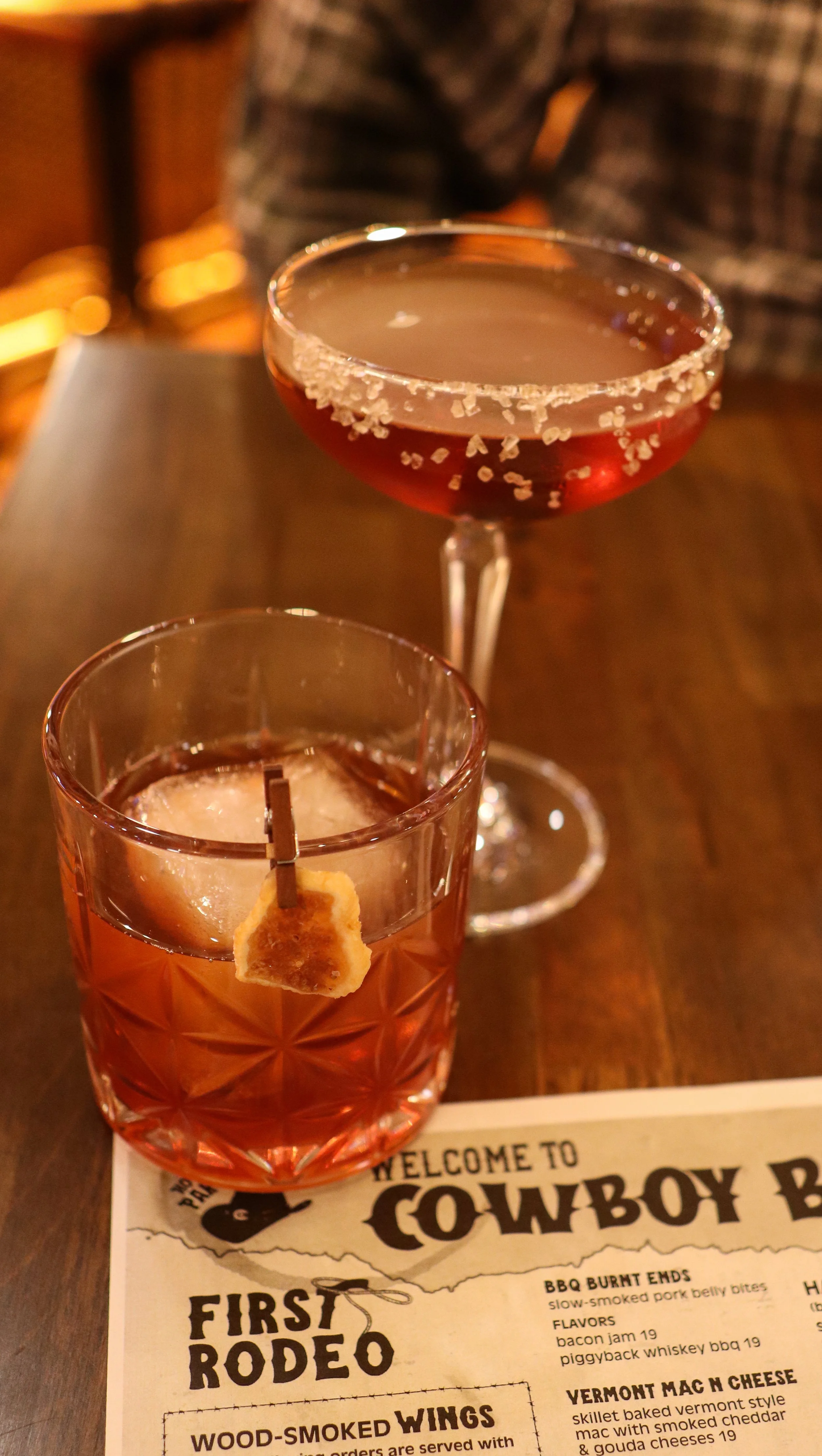 Features Ingredients Interview Restaurant BBQ New Milford Opening Interview Steak Homepage Cowboy Butter in New Milford: Hindsight BBQ's Sister Restaurant, a "Boujee" BBQ Joint + Steakhouse Andrew Dominick January 27, 2026 Slide into a bar seat for early dinner and you can score these brisket sliders. When CTbites last covered Hindsight BBQ in 2021, its founder, Jeff Schmidt was quoted as saying, “When you get obsessed with something, and when you get bit by the BBQ bug, once you go down that rabbit hole, you can only go further.”In 2025, his “further” ended up being Cowboy Butter, best described as “a New England live fire cookery and boujee BBQ bistro,” in New Milford’s quaint downtown area. How Schmidt and his girlfriend/GM at Hindsight/business partner at Cowboy Butter, Nicole Minard, came to find a spot for a sequel was after a long, but casual search. They looked in Bristol and Branford, then the closed, super popular location where The Cookhouse once occupied. When that didn’t work out, the mayor came calling. Schmidt describes the first floor of Cowboy Butter as slightly more refined, while the downstairs is a little more rustic. And if you’re wondering about the name, the restaurant is named after compound butter, typically blended with herbs, garlic, spices, and more. Schmidt outside of Hindsight BBQ in 2021 “Pete Bass caught wind that we were looking because we were going through a network of economic development companies and stuff, and they all talk,” Schmidt says. “He called Nicole and told her there’s a space that’s not on the market yet, in downtown, not on its own, and doesn’t have its own parking lot. They weren’t trying to sell it, it’s a lease, and belongs to Bank Street Group. We had zero expectations, but we walked through, and knew it was turnkey. We wouldn’t have to make a massive investment, wouldn’t have to build out a kitchen, nor would we have to renovate the entire space.”Before they could take over at 59 Bank Street, the former home of Dukes Tavern and The Que, Schmidt had one major caveat to overcome…would the town let them have a smoker? Front: The Fig & Fashion - Fig liqueur, Mine Hill Bourbon, orange bittersBack: The Lumberjack - Smoked maple Manhattan - bourbon, sweet vermouth, bitters, smoked salt rimConnecticut’s craft beer scene is heavily represented on the drink menu, too, especially with drafts from Transcend Beer Crafters in Plainville where Schmidt is a partner. If you hit up Transcend, you’ll be able to snag some of his smoked wings, a fan favorite at both Hindsight and Cowboy Butter. Platterday? Korean style sticky short rib, tri-tip, blueberry-gouda sausage, honey butter maple glazed cornbread, elote creamed corn, Brunswick baked beans. “Even though the previous place was sort of BBQ, they didn’t have one, so we had to go through the channels,” Schmidt explains. “It took four months through zoning to get a smoker outside. John (Bourdeau) at Sparrow was a great advocate for us since he knew us from Hindsight. He told the town that our BBQ is great and that we know what we’re doing. People were worried that a cloud of smoke would consume the downtown area, but it won’t. The stack goes high in the air, like you’ll smell a little smoke, that fat rendering, but there’s a diner over there and you smell bacon every morning, or if you walk by Lucia, you’ll smell garlic. It’s not much different.”The smoker conundrum worked out, and, in fact, even though it’s a 100-gallon Offset Smoker, unless you were really looking for it, you may not otherwise know it’s there. Schmidt says it’s not too far away from the restaurant, totally enclosed in a trailer, and you’d likely just think it’s a truck body. Now in the new digs, Schmidt sees Cowboy Butter, albeit with a similar BBQ philosophy to Hindsight, as a totally different experience and an opportunity to flex their muscles more. Brisket queso w/tallow fried corn chips Zucchini fritters “I feel like we make really great BBQ and maybe not enough people get to try it being that we’re in the greater Waterbury area,” he says. “We have three food trucks, so every time we take one to an event—kinda how I started before Hindsight opened, doing pop ups and events with a food truck at breweries—we always got a great reception and people were like, ‘Too bad it’s in Waterbury, I never go there.’ Hindsight was the COVID baby, and because we couldn’t open our doors to the public, it was takeout-only at first. It’s a small space, maybe three tables and a bar, and very seasonal as there’s way more seating outside. Hindsight’s counter service, like that works, but we’ve had requests for big parties or reservations, so we were always looking for what we were missing there. Cowboy Butter is full-service, two bars, two floors, we have waitstaff and bartenders, and you can order appetizers, dinner, desserts, and craft cocktails. We sell cocktails at Hindsight, too, but you order at a counter, so it’s a big difference in the dining experience.”As for what you might encounter at Cowboy Butter that you wouldn’t at Hindsight, live fire grilled Pat LaFrieda steaks that are, for now, a Prime New York strip, a filet, or a 24-ounce bone-in ribeye. They even do prime rib every Wednesday starting at 4 p.m., that, according to Schmidt is “straight up smoked and doesn’t hit the grill at all,” and is served with seasonal veggies, a potato either baked or mashed, or with beef tallow fries. View this post on Instagram A post shared by Cowboy Butter BBQ (@cowboybutterbbq) Seafood, you say? Scallops wrapped in candied bacon are a current appetizer and for mains, barbecued shrimp with roasted garlic mashed potatoes and smoked, then seared Faroe Islands salmon with honey-Cajun butter, are a little bit of what’s different here. Refined BBQ fare aside, Cowboy Butter isn’t afraid have a little fun as evidenced by pork belly burnt e