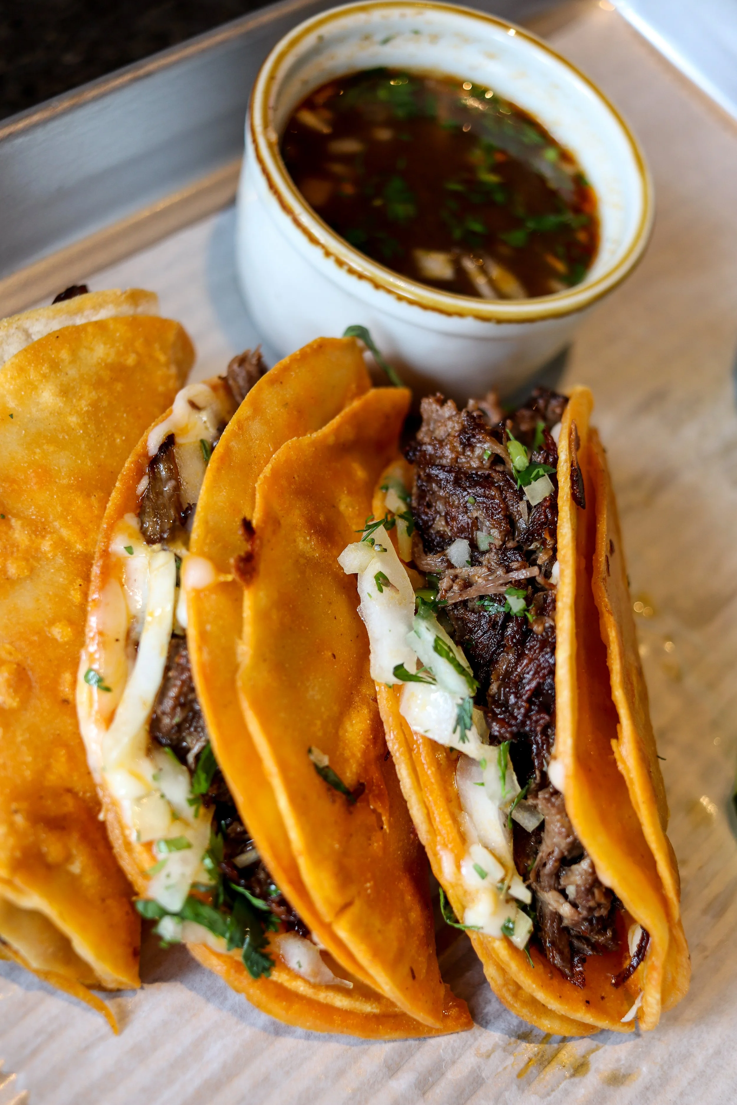 Interview Restaurant Mexican Reopening Stratford Interview Tacos ¡Ay Güey! Cafe & Cocina Mexicana: Authentic Mexican In Stratford Andrew Dominick February 04, 2026 Tacos here are birria (pictured), grilled chicken, chorizo, grilled steak, carnitas, al pastor, costra (three cheeses with chorizo, steak, guac, and pineapple), and shrimp. Look up the phrase “¡Ay, güey!” and you’ll see it’s got a lot of meanings. In Mexico, it’s commonly used slang to express shock, fear, amazement, and surprise, much like “Wow!”, “Oh, man!”, “Oh my god!”, “Holy crap!”, and, well, you get the idea. In Stratford, ¡Ay Güey! Cafe & Cocina Mexicana hopes to “Wow!” you with their traditional Mexican menu, just like they wowed our writer, James Gribbon, back in 2021 when they first opened. Why they’re getting more shine in 2026 is simple…they had closed for three months at the end of last year for renovations in a Facebook post that read like a postmortem, sparking some concern and a Reddit that followed. Cali Burrito in all its glory. When they reopened on December 12, 2025, they admitted to being overwhelmed, but grateful to have all the support from locals who missed them, and their tacos, tostadas, nachos, and especially a crowd favorite in the super stuffed Cali Burrito, packed full of tender steak, French fries, black beans, fresh pico de gallo, avocado, crema, four-cheese blend, and smoky, slightly spicy salsa morita. Now that ¡Ay Güey! Is back in action after owner Everht Xochicale (who’s behind Trumbull Cafe & Grill and Don Roque Garage in Bridgeport) is got a sleeker, cleaner, an updated modern look, and a bit more seating than before. Hibiscus agua fresca, if you desire. And their fridge is stocked with a bunch of different Mexican sodas. Cemita - chicken milanese, lettuce, onion, avocado, Oaxaca cheese, and lime-infused chipotle mayo on soft ciabatta bread.What else do they have? Fideos quesadillas, “Mexican Plates” (shrimp or carnitas served with rice and beans, pico, avocado, and cheese, with handmade tortillas), and huaraches—thick, oblong shaped masa dough topped with pureed black beans, cooked onions, red and green salsas, and avocado with either shrimp, steak, chicken, chorizo, or chicken tinga. Mary Rojas, who hops around to their other spots, started working for Xochicale about 10 years ago, as not only a cook, but an overseer. And all those popular items from before may have gotten a visual makeover, too. “It’s traditional Mexican food,” she says. “The Cali Burrito is super popular, but so is the tinga tostada, birria (made from slow-cooked chuck), the enchiladas, and the café de olla, a traditional Mexican coffee made with cinnamon and piloncillo (raw, unrefined cane) sugar. You have to try it.” A heaping bowl of chicken enchiladas with rice and beans, a steal at $18. For regulars, you may already have your go-to at ¡Ay Güey!, but Rojas wasn’t kidding about the enchiladas. It’s cheesy, loaded with chunks of chicken, properly fluffy rice, beans, avocado, and while you have your pick of green or red sauce, if you like heat, their salsa verde packs a punch.And even though you won’t find pan dulce to dip in your café de olla here, sip it alongside your enchiladas. The sweet, cinnamony coffee is a nice contrast to this, or any of their savory, spicy dishes. Bienvenido de nuevo, ¡Ay Güey! 613 E Main Street, Stratford475.449.9143, aygueystratford.com