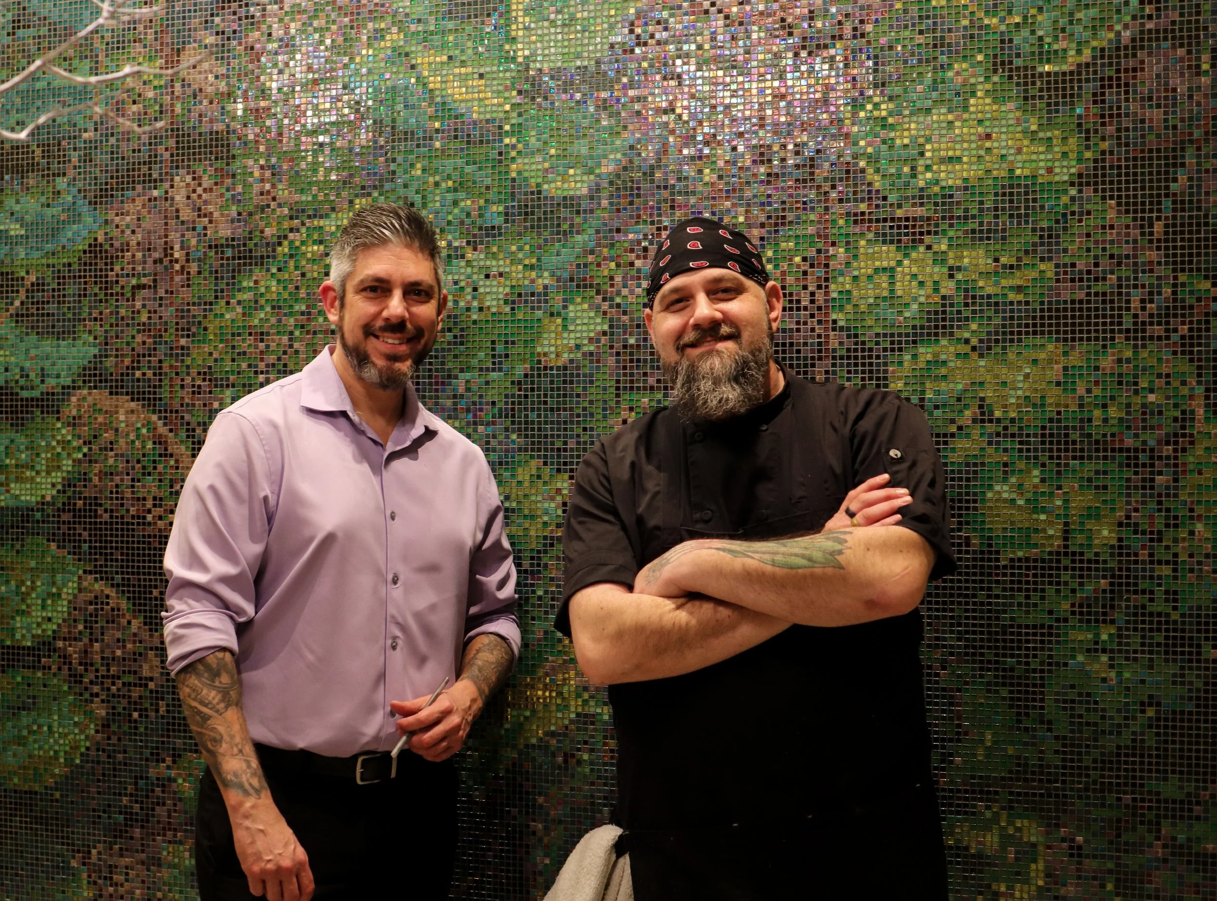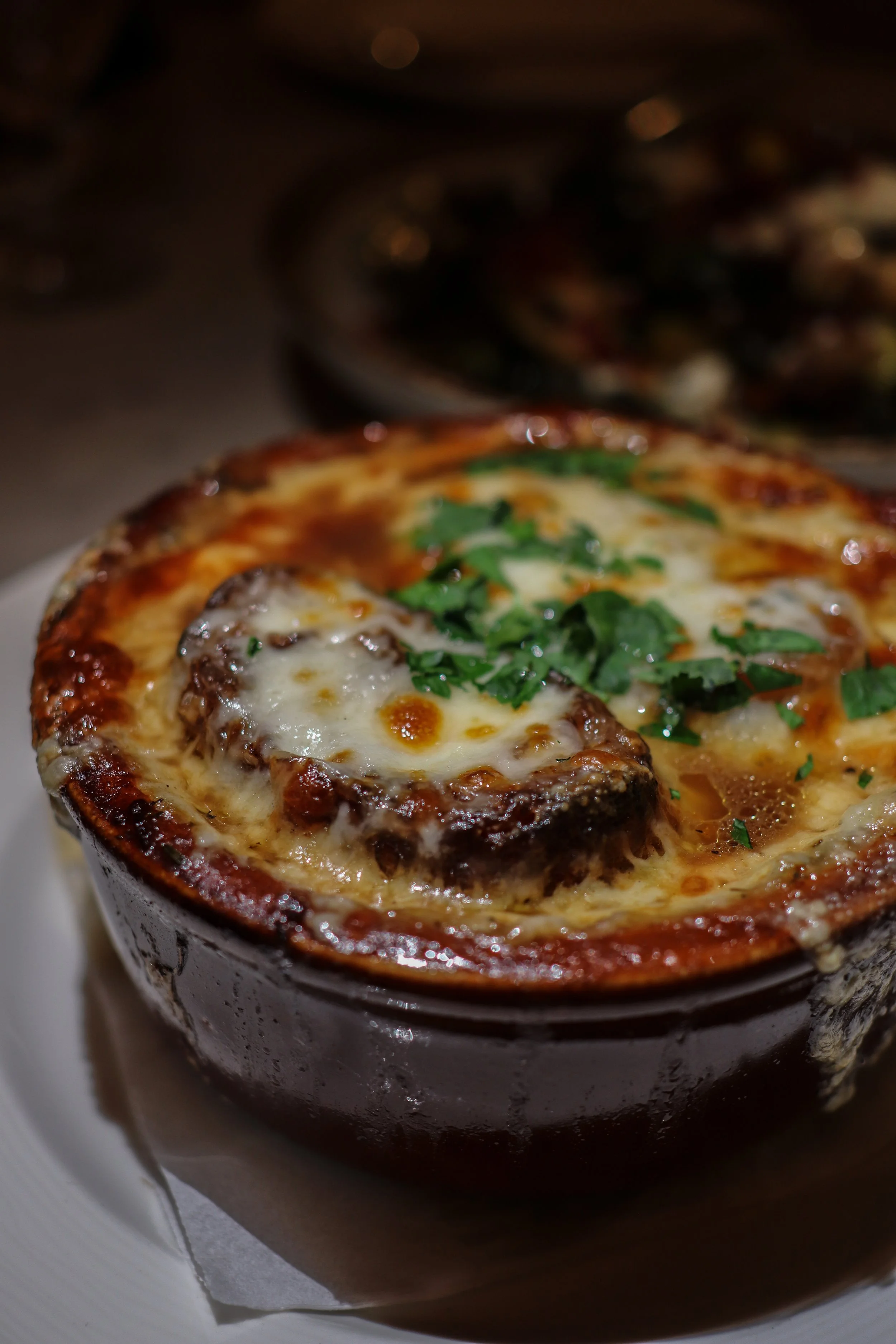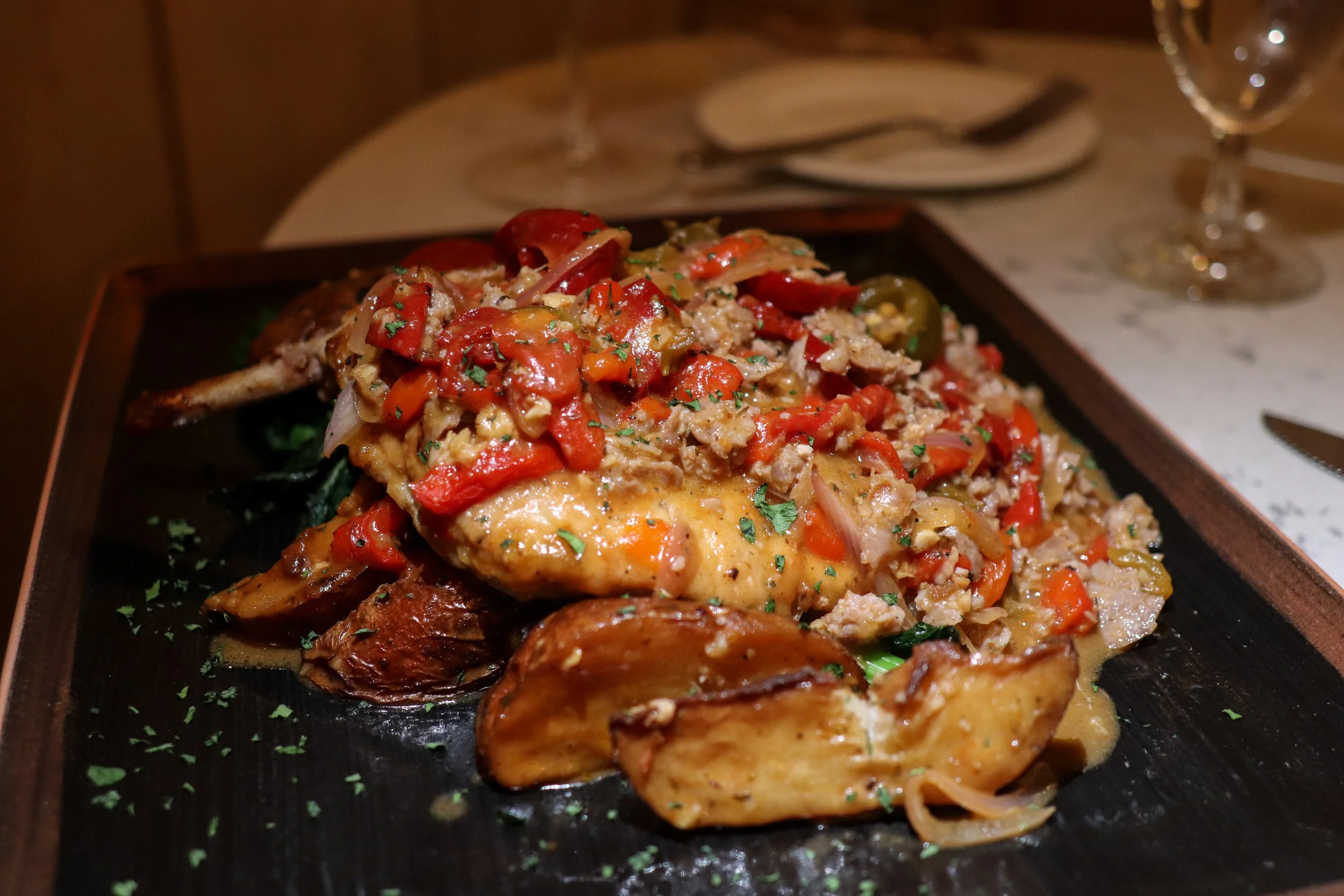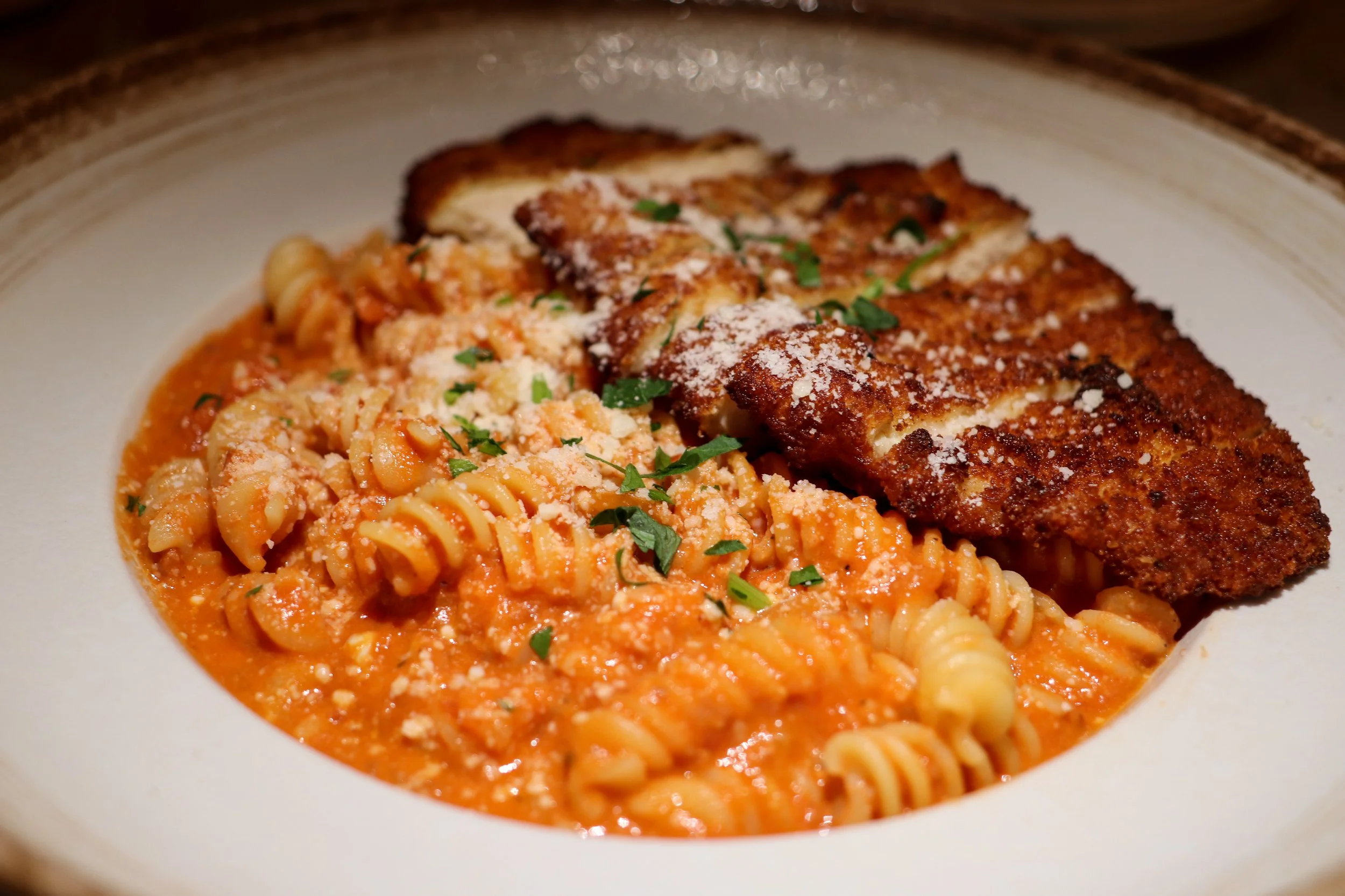 Features Ingredients Interview Restaurant Middlebury Mediterranean Italian Interview Cocktails Fine Dining Homepage Vyne Restaurant & Bar: Fine Dining Meets Comfort Classics in Middlebury Andrew Dominick February 24, 2026 With new executive chef James Piccolo on board, you’ll certainly see plenty of Italian comfort sprinkled about the menu like this fusilli alla vodka with crispy chicken cutlet as an add on if you desire. Unless you live near or in Middlebury, there’s a very real chance you’ve never dined there.Ask a few guys who now work in Middlebury at Vyne Restaurant & Bar and they’ll tell you that before they got there, they hadn’t either. “I had never even heard of Middlebury and I spent a lot of my life in Hartford,” says Vyne’s general manager Justin Morales. Vyne’s large space doesn’t only include the restaurant, but two event spaces where they host lots of weddings and any private function you’d like. When the snows clears, the outdoor patio is the place to dine al fresco with a scene that’s got a waterfall and stream. Morales (left) and Piccolo are part of Vyne’s revamp and hope you make your next dinner date with them in Middlebury. On weekends especially, Vyne has been quite the scene in the main dining room and in the bar area. What Morales, an industry veteran both behind the bar and as a GM (and most recently of Fire by Forge), and executive chef James Piccolo are doing in this part of Connecticut is putting their stamp on a restaurant idea that began many years ago as a small cafe inside of a furniture store, Middlebury Consignment. In 2018, just a stone’s throw away from his furniture store, Dr. Dean Yimoyines opened Vyne with a cuisine influenced by his father, Constantine’s New Haven restaurant, Les Shaw’s, and its Mediterranean flavors. Up front, one of the cocktail specials was a orange-coffee-chocolate old fashioned made with Morales’ own brand of bourbon, Up n’ Down One of the popular shareables are crispy brussels sprouts w/maple-bacon aioli, gorzonzola, crunchy bits of prosciutto and hot honey. French onion soup - gruyere, provolone, crostini But what was new eight years ago, can be new again in the present. And that’s the approach that both Morales and Piccolo, whose resume includes Mercado in Southbury, Quattro Osteria in Newtown, and most notably, he ran the kitchens for Mario Batali and Joe and Lidia Bastianich at Tarry Lodge. “Before this, I was at Mercado with Market Hospitality Group for a few years,” Piccolo says. “I applied here and the owners saw that I worked for Tarry Lodge in Port Chester, Westport, and New Haven for 13 years.”Already impressed with Piccolo’s credentials, the Yimoyines Family wanted to see chef’s skill in action. View this post on Instagram A post shared by Justin Michael Morales (@justinmoralesx) “My audition was like an hour-long Iron Chef episode and tasting,” Piccolo continues. “I made homemade pasta dough before, brought that with me, and made egg yolk raviolo, then scallops with couscous, grilled pineapple with burrata.”Now hired, Piccolo only had one issue…the menu before he got there had some Asian flavors mixed in that was this odd sort of fusion thing going on. “I told them, if I come in, I’m not cooking this—my training is Italian, but I also do whatever I feel, like I lived in Montauk for six years, so I always say that seafood is my favorite thing to cook because it’s so versatile,” Piccolo says. “They told me to do whatever I have to do and that I have complete creative control. I’m happy here.” Pork scarpariello - bone-in chop, sweet + spicy peppers, sweet sausage, broccoli rabe, roasted potatoes Wellington special - filet mignon and mushroom duxelle wrapped in puff pastry, demi glace, potato puree, roasted carrots Described by Piccolo as modern Mediterranean that leans Italian, it should be no surprise that Vyne’s new chapter and revitalized menu flaunts plenty of Italian comfort with meatballs, fried calamari with both spicy marinara and lemon-caper aioli for dipping, bowls of fresh pasta, old school parms, and something he brings with him everywhere he goes, a hearty bowl of mussels with either garlic parmesan cream sauce or spicy tomato broth. As for the Mediterranean, expect grilled octopus with crispy potatoes and chorizo, lemon pepper swordfish, and lamb chops with butternut squash, pomegranate, pine nuts, and peppadew aioli. “It’s all about good ingredients and seasonal, so I still go to the Westport Farmers Market because I think it’s the best one we have in this state,” Piccolo says. “What’s popular? The pork chop scarp—it’s got heat and I’m not afraid of spicy. There were no pastas on the menu when I started, so I created a whole pasta program here based on my relationship with Durante’s Pasta in West Haven. The black spaghetti (shrimp fra diavolo, fennel, chorizo) is always my favorite because it’s got heat.” View this post on Instagram A post shared by Vyne Restaurant & Bar (@vynerestaurant) And as for the “whatever he feels” additions to the menu, you’ll see some French, too, in a cheesy, rich onion soup with soaked crostini, steak frites, and a recent special in the classic British dish using French techniques, beef wellington. “It was my first time doing it, but it’s all timing, down to a science,” Piccolo explains. “You go a minute over, it’s overcooked. A minute under, it’s raw. This one will be perfect temperature. I have a set it and forget it mentality. You don’t have to keep looking at it, touching it, playing with it. If you touch it too much, now you’ve extended the time and you have no reference as to how much heat it has.”But Piccolo isn’t doing it all by himself. Chocolate - raspberry crème brûlée Banoffe - layered salted caramel and bananas, vanilla pudding, chocolate ganache, Oreo crust All the cakes, custards, tarts, pies, and other sweet endings are made in-h