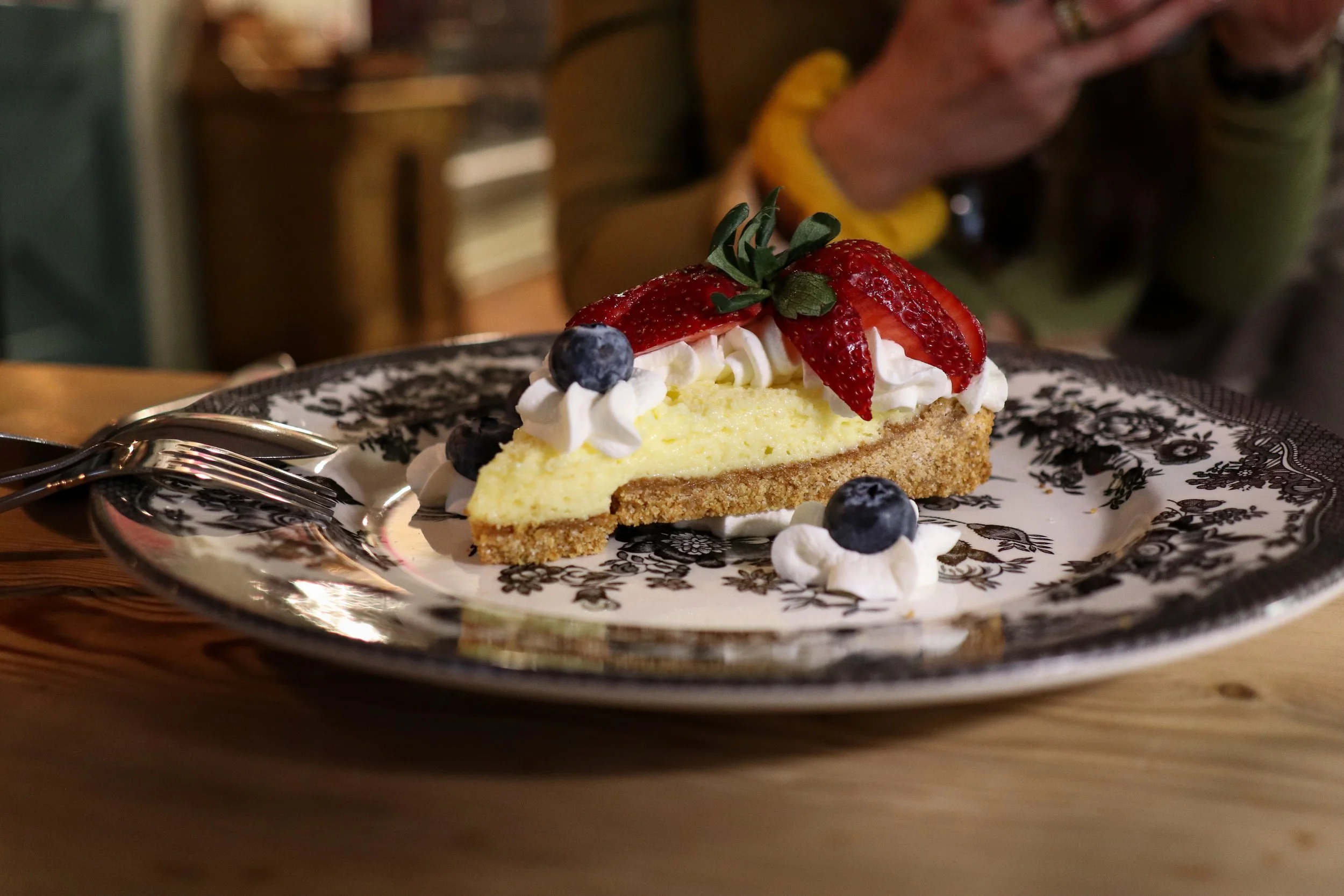 Features Interview Restaurant British Cuisine British Westport Interview Gruel Britannia Karen Hubrich Opening Homepage Prime Rib Gruel Britannia Opens 2nd Spot in Westport With Events + Pop Ups Coming Soon Andrew Dominick April 08, 2026 Karen Hubrich isn’t shy about telling anyone she’s a late bloomer. After a long career cooking in country clubs and as a private chef for Michael Bolton, she emerged on the Connecticut food scene in 2019 when she opened her Fairfield flagship, Gruel Britannia. Now a young 69-years-old, she’s opted for a second helping of Gruel, not too far away from the original, in Westport’s Coleytown neighborhood that debuted last July. Westport’s version of Gruel may have similarities to Fairfield in its cuisine, but there’s more on the way in terms of events and pop ups. Keep reading…And if you’re wondering about Hubrich’s thinking with a name like Gruel, it’s simple:“Gruel is basically oatmeal or anything you add liquid to expand it,” she says. “Britannia is the Latin name for Britain and Rule Britannia is a famous song. It’s a play on words.” Gruel’s customers should expect the shelves to be loaded with British goodies and for the freezers and fridges to be stocked with grab-and-go grub. “I looked at this location 14 years ago when it was an old greasy spoon country store, but I didn’t have the money to do renovations,” Hubrich says. “It was Chef’s Table, then The Porch at Christie’s. I drive past it a lot since I live like five minutes away.”But what it took to open a second iteration of Gruel Britannia was meeting Westport local, Scott Rochlin, who’s in the construction business, but someone who’s no stranger to the hospitality industry as he owned Henry’s Place where Tarantino Restaurant is now. Loaded scone with clotted cream and strawberries Afternoon tea, or tea any time you want it, is a thing at both spots. But if you’re doing coffee, it comes from Canaan, Connecticut’s Ilse Coffee, co-owned by her son, Lucas Smith, and daughter-in-law Rebecca Grossman. “I had never met him before,” Hubrich says. “He came into Gruel as a customer because he said he always saw the parking lot was mobbed and had wanted to come in for a while. He loved it and came back a few days later. He wanted to get back into the business, but that he couldn’t do it alone or his wife would kill him, and I couldn’t do another location without a partner.”Gruel’s sequel came together almost seamlessly and Hubrich quickly found herself rounding up all the British products that her restaurant displays and sells; the malt vinegar, Marmite, and a vast selection of unique chocolates like Mars Bars and Cadbury Eggs. With a turnaround time of roughly a few months, much like in Fairfield, Westport was open seven days per week serving breakfast, lunch, dinner, coffee, afternoon tea, pastries, beer, wine, and cocktails full steam ahead. Thai chicken meatballs in a laksa curry sauce with jasmine rice and sautéed spinach. That flavor pop in the meatballs? Hubrich tells us that’s from the ginger, garlic, scallions, and star anise. Coronation chicken salad is still going strong at both Gruels seven years later. And all of Hubrich’s popular dishes have made the 10-minute trip over from Fairfield to Westport, too, including the loaded scone, English breakfast, both bacon butties, and comfort foods in Shepherd’s pie, bangers and mash, and meatloaf. “There’s lots of leeway with British food,” Hubrich says. “The coronation chicken from Queen Elizabeth II’s coronation lunch in 1953 (and some Indian dishes, chicken tikka masala) are a nod to the British-Indian relationship.”And of course, there’s Gruel’s famous fish & chips, a dish that wasn’t supposed to make their menu in the first place, and she’s not taking full credit for it. “My friend Patrick worked for The Dorchester and The Savoy, and I’ve hired him and fired him in the past, he opened A Salt & Battery in New York City,” she explains. “I wasn’t even gonna do fish & chips, but I was in London visiting him, and then decided I was going to do it. He taught me how—there’s no beer in the batter—and it took a while to get it right. He had actually forgotten how, how to scale it up and down, so it was a mess. There was flour everywhere.” Every Sunday, there’s an abbreviated dinner menu, with this prime rib being the focal point. Make a reservation, maybe even get there early, as there’s a chance it could be 86’d if you procrastinate. And then there’s the Sunday prime rib special that’s a hefty plate consisting of a thick cut slab of beef with a rich au jus, roasted veggies, cheddar broccoli and cauliflower, potatoes that are lightly crispy on the outside and soft on the inside, Yorkshire pudding (or popover, if you prefer that term) for wiping your plate clean, and extra au jus and creamy horseradish sauce on the side. Sunday roasts in both Britain and Ireland have a lot of meaning and history that dates back to the 15th Century. Along the way, it became a common supper to enjoy after church or at a pub. Hubrich, though, has another bit to add about the history to add to the several that are out there about the British and roasted meats on Sundays.“In Northern England, it’s predominantly more working class; there’s coal mines, it’s more industrial,” Hubrich shares. “For Sunday roast, you would have a tiny piece of beef. A coal miner might have a lot of children and they would cook the Yorkshire pudding in beef drippings and the children got that first, with gravy, to fill them up, and if there was anything left after the dad and elders have their dinner, the kids would get some roast meat. It could be leg of lamb, ham, turkey. We cook ours very simple. There’s no secrets really. It’s seasoned and roasted in the oven. We use beef tallow for our popovers and equal amounts of everything else; eggs, flour. People sometimes as