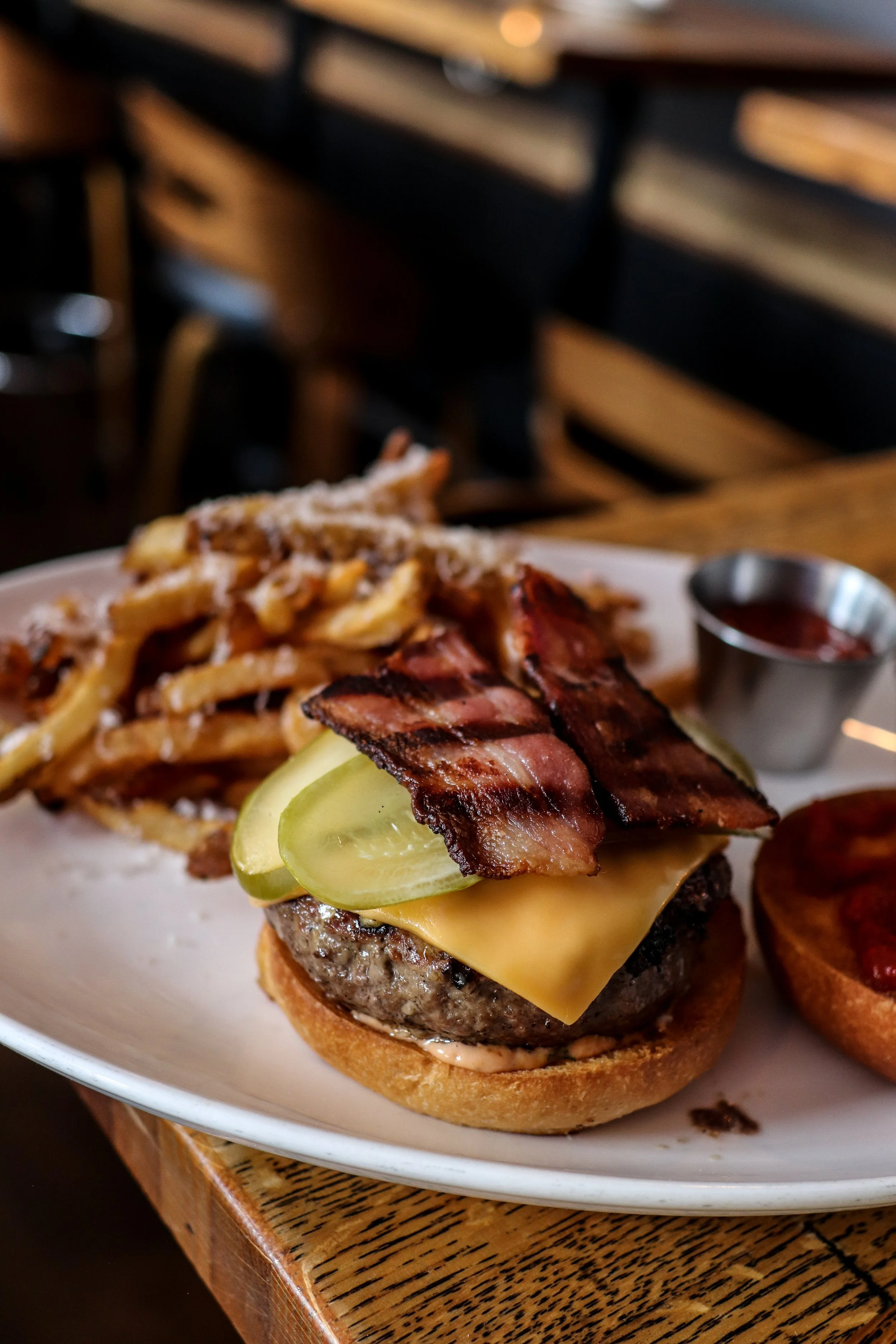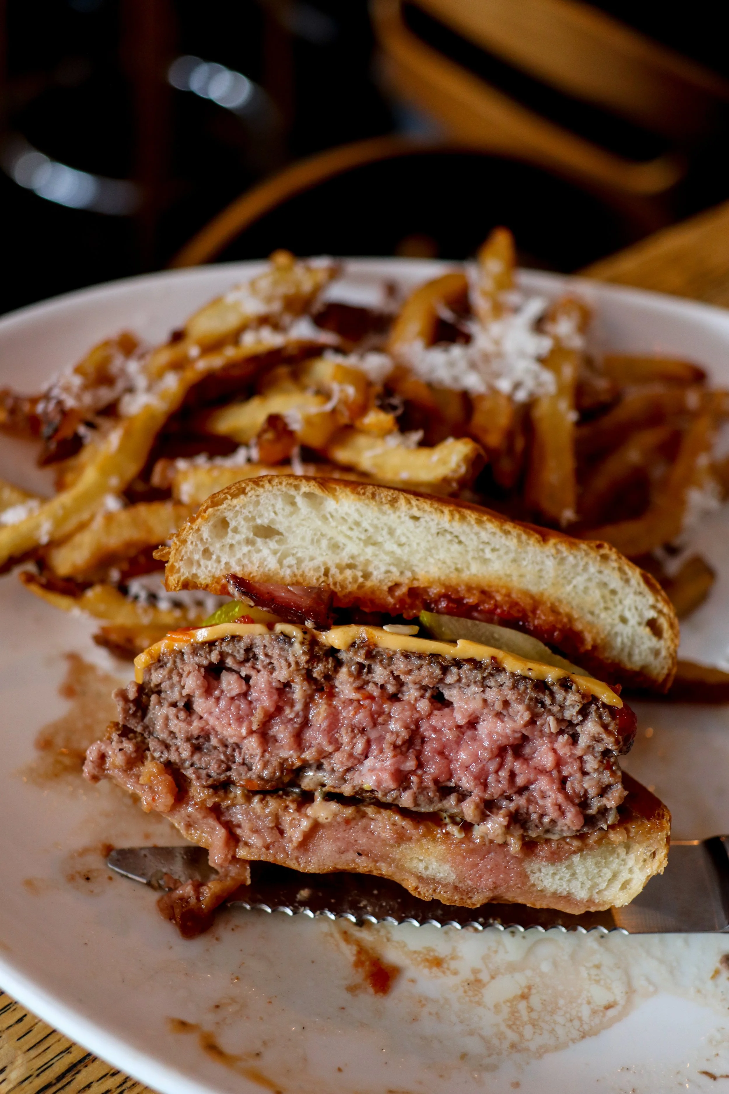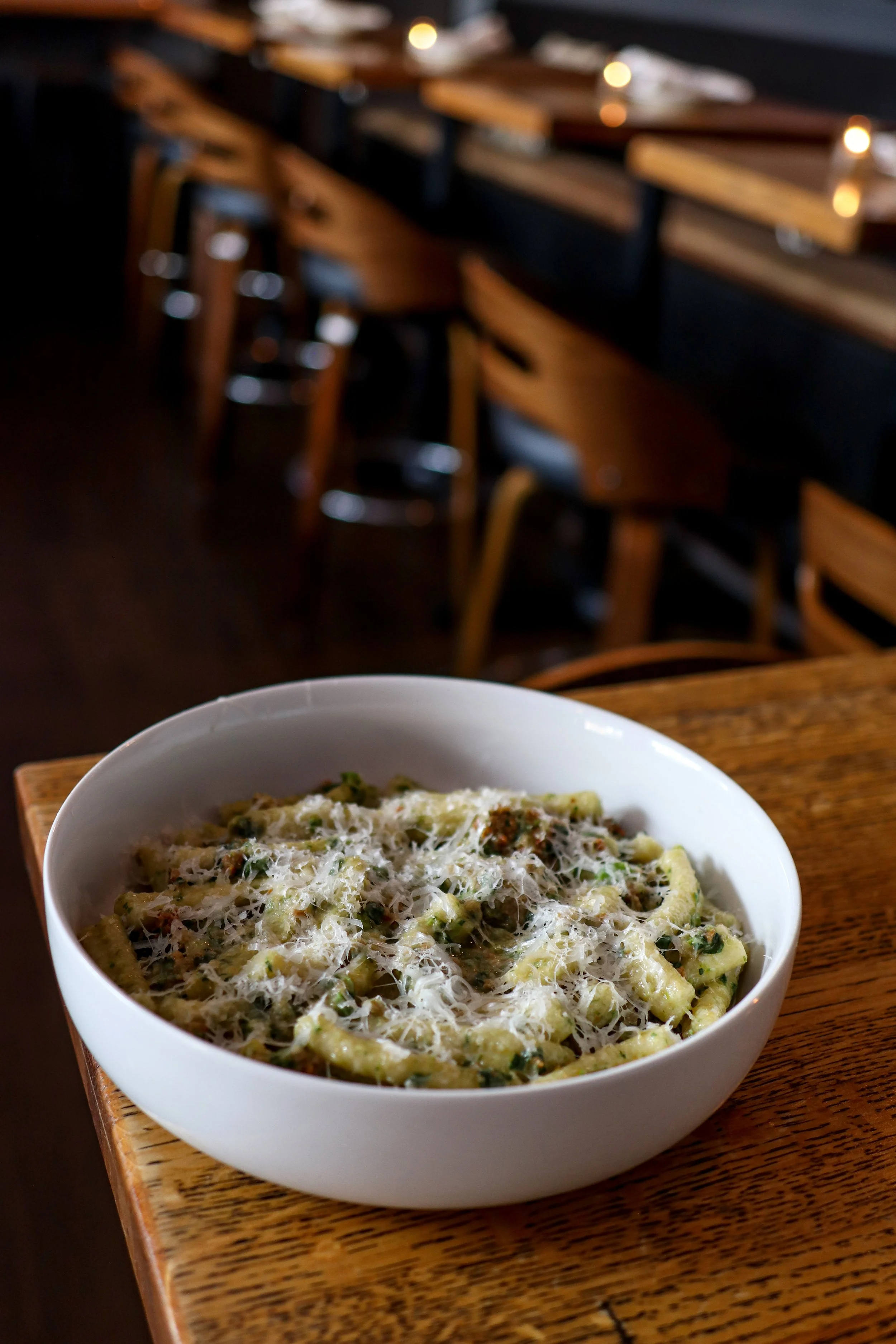 Features Ingredients Interview Restaurant New Canaan South End New Canaan New American Opening Interview South End in New Canaan Returns as South End Bar Andrew Dominick March 31, 2026 One of the spots that’s synonymous with New Canaan’s dining scene from 2012 well into 2023 was South End. “Was?” Hmm…How about “is?” And that’s because South End is back, in a smaller space, down the same alleyway as Uncorked, in what was the Mexican-inspired The Back End, as South End Bar. The alleyway on the side of Uncorked leads to South End’s reincarnation. Keep going… OK, STOP! You’re here! If you’re one of the many who remembers South End, and all it’s modern tavern fare fondly, you’re not alone. Chef-owner Nick Martschenko does, too. “I originally brought that to New Canaan and I feel like it quickly became a place that people connected with,” he says. “It had great energy and a strong community backing there. That style was reflective of New Canaan and a neighborhood sort of feel. It fit what maybe New Canaan needed again. It’s constrained into the size that place is, so I wanted to bring that bar feel back.” Grilled octopus, andouille, romesco, almonds, kalamata olives Shaved black kale salad, blue cheese, crispy prosciutto, red wine vin Martschenko said the resurrection of “his baby” and introduction to both New Canaan and Connecticut diners actually happened organically. “At one point, I was painting the walls in here at a slow point of the year in late January; I spent a couple of long nights there just staring at it wondering what sort of thing can I do?” he says. “I said to myself, ‘You know what? I’m changing this up.’ South End was extremely successful. It was a timing issue when we closed because it was the start of COVID and rent negotiations. My lease ran out, so it never felt finished. I always loved that type of food and the feeling of that place.” Charcuterie and wine was always a constant at the original, so why not here, too? Fried baby artichokes The “type of food” Martschenko is referring to is all the stuff South End regulars will remember. The crispy fried baby artichokes with parmesan and lemon chips with roasted garlic aioli for slathering or dipping? It’s back. Grilled octopus and andouille sausage with romesco, slivered almonds, and kalamata olives? Also back. The hanger steak frites? Yeah, that, too. Cavatelli Cavatelli, but closer. Arguably one of the most recognizable dish returns as well…a big bowl of homemade semolina cavatelli, dressed in a garlic, butter, and white wine sauce with pecorino, chili flakes, and finely chopped Italian sausage and broccoli rabe that coats every single noodle. And some of you will recall the original SE having chicken paillard. Well, that’s now swordfish paillard. And the pork saltimbocca has been flipped to chicken. Swordfish paillard with roasted fennel, arugula salad, capers, basil, lemon vinaigrette Chicken saltimbocca, pommes puree, prosciutto, sage, shiitake mushrooms, spinach, madeira sauce “This kitchen is a quarter of the size of the OG location, so we have a few constraints,” Martschenko says. “We’re trying to effectively put out a quality menu without making too many sacrifices. We wanted to bring in twists on the old stuff and see how it works and we’ll run specials with the older things that people remember. The pork chop will probably come back at some point.”Ohhh, but the burger, you ask? Come on. You know that had to return. And it’s as you remember it—a half-pound patty consisting of short rib, chuck, sirloin, and “some secrets, topped with American cheese, bacon, dill pickles, South End’s own homemade burger sauce and ketchup, all on a brioche bun with a side of hand cut parm dusted fries. If you’re sitting there wondering about why they’d do a burger when they already have a popular double smash burger at Uncorked (it’s the same grind of meat), it’s simply to bring back something that people loved and for those who are in the mood for something thicker. Whether you’re sitting at the outside bar or the one inside, cocktails are doable at either one. Pictured: Army Navy - Botanist Islay Rested Gin, orgeat, lemon, Angostura Bitters “I go back and forth on it, but I missed it,” Martschenko shares. “My staff said I didn’t have to have a burger at both places, but I told them to trust me on it. It depends (which kind of burger) people are in the mood for. It’s a thick, traditional style, old school burger that’s reminiscent of classics in the city.”Remember the old burger and Bordeaux on Monday nights when they were on Pine Street? Martschenko hinted that could be in the future plans for South End Bar, but there’s so much more coming…While his Uncorked brand is opening right around the start of summer in Downtown Stamford between Tigin and Mecha (OOOPS! SPOILER ALERT!), Martschenko and his team are simultaneously focused on offering takeout at SE Bar and likely going from being open five days per week (Wednesday through Sunday) to seven days per. And a later goal is to offer ticketed events there, that he says will be fun, but will also include high level collaborations with area chefs. Chocolate amaretti flan - almond cookies, Luxardo Cherries, sea salt, mint Lemon ricotta cake - lemon curd, blueberry compote Ultimately, Martschenko is glad to have South End back in the town where it all started. “It wasn’t about revisiting the past; it’s about evolving it and planting it firmly in the future of New Canaan and hopefully have it be there to stay since we do own that building,” he says. “I love how it shares that layout with Uncorked, like, I call it ‘the garden area’ back there. (South End Bar) can maintain its own identity. You can go back and forth between the two and have different experiences. And there are people who maybe don’t really come to Uncorked, but they wanted to come back to South End