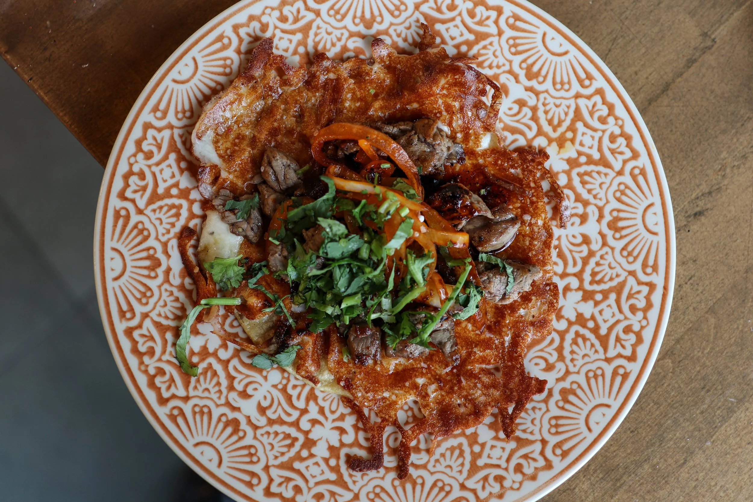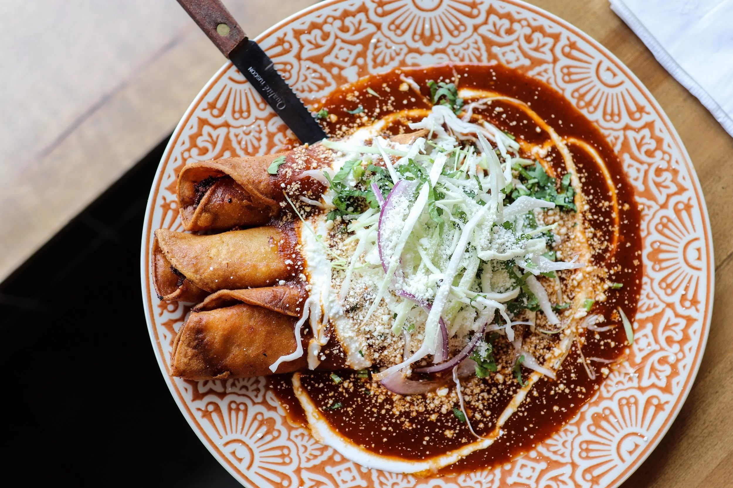 Features Ingredients Interview Restaurant Tacos Stamford Masa Taco Bar Chicho's Cocina Interview Homepage Mexican Masa Taco Bar + Chicho's Cocina in Stamford: Rooted in Family Tradition and Travels Andrew Dominick March 17, 2026 Flautas de pollo - shredded chicken and cheese taquitos, crema, cabbage, onion, cilantro, cotija, and salsa roja Almost 10 years to the day, CTbites found itself covering La Esquina Latin Grill in Stamford, where chef-owner Robert Monegro served up classic Latin American dishes. In the present, the Stamford-raised Monegro is still pretty busy. La Esquina is well behind him, though, and you’ll see him bouncing back and forth between his two popular taqueria’s, Chico’s Cocina, and as of 2024, Masa Taco Bar.For Monegro, his culinary journey didn’t start 10 years ago at his first restaurant. It actually began in 1995 at his father’s Dominican restaurant, Flamboyant Chicho Cocina. At Masa, apps range from a few tostadas, to maduros and esquites, and chips with salsa or guac, or these chilaquiles, chips simmered in salsa verde (or red, if you want), with crema, avocado, cilantro, and queso fresco. The bar is heavy on tequila and mezcal cocktails, beer, and some wine. Pictured is the Smokey Pina w/Los Siete Misterios Mezcal, chile liqueur, lemon, pineapple, agave syrup, and house-made dried chile salt. “My dad, Chicho, opened up Flamboyant, a name that had no significance to him at the time, it was just the name that was already on the building,” Monegro says. “My dad is Dominican and mom is from Guatemala. My dad worked in Italian restaurants his whole life. Even in the Dominican Republic, he had a food stand where he would slaughter pigs, make chicharrónes. That was his thing. Forward to ‘95. He opens up his own place, gambles everything to open it. My mom quit her job and they started from scratch. I have this really cool picture of my dad and my mom behind the counter and I now have the same picture with my wife.”Monegro recalls that when his father started, Stamford didn’t have a lot of Latin American restaurants, that it was Flamboyant, then in 1998, Brasitas opened its first location. And while Flamboyant began with Dominican cuisine, Chicho started incorporating Central American, Mexican, and South American into the mix. Tuna tostada - tuna crudo, chipotle aioli, fried leeks, avocado. It’s not only a customer favorite, it’s one of Monegro’s, too, who admittedly isn’t big into seafood, but after trying it during his travels, it hooked him. Tacos are undoubtedly a big deal here and they fly out of Masa’s kitchen all day and night and at happy hour. Pictured: Carnitas w/pickled red onions and jardin (cilantro) Chorizo taco w/homemade sausage, onions, cilantro, scallions At five years old, Monegro was, as he puts it, “I wanted to be with my dad. I was attached to his hip while he was making rice or chicken.”And bit by the restaurant bug he was. How could he not be? “He would always have me do things and as I got older, I'd wash dishes, lend an extra pair of hands, but also just watching my dad,” he says. “My kids now, they want to own restaurants. Just like with my dad, I was so drawn to food and I just wanted to learn more. My dad, to me, he’s the gold standard and whatever my dad says, it goes. I respect him so much. I shadowed him for years. I would go to do grocery runs with him at four in the morning to Hunts Point in the Bronx. When I was in middle school, before school, I would wake up at four to with him and help him load up the car. He'd drop me off at school and then he'd pick me back up, then go to the restaurant for a little bit. That was my life for a long time and it wasn't like he was forcing me. I wanted to be with my dad.” As he got older, Monegro’s culinary interest remained, experimenting with food, cooking, tasting, and eventually he opened La Esquina. He’d later sell it and admittedly made some mistakes with his first solo venture into the restaurant world. After La Esquina, he said he’d never do it again and switched paths to real estate. But like anyone who has hospitality in their blood, Monegro’s career change was short lived. “I was doing real estate in the city and started seeing all these restaurants, cool concepts, and every time I would go into one there, I felt like I could do this better,” he says. “One day, I got a call from my landlord where Chicho’s is now and he asked me if I was interested. I shot it down immediately. No way. I'm not doing that again. I slept on it and I was like, ‘Should I just do it?’ I talked to my girlfriend (now fiancée) at the time and she told me to do whatever I want to do. Whatever. Let's just let's just try it and see what happens. I jumped into that and that's how Chicho’s started.” There is a tortilla under there! What you spy under the carne asada is crispy grilled cheese that can be added to any street taco. Parque Mexico - blanco, avocado, mint, cucumber, elderflower liqueur, agave, lemon. Balanced, silky from the avocado, and somewhere between tasting like a margarita and a mojito (minus the rum). At Chicho’s, Monegro leaned into Mexican for a few reasons. One being that on his mom’s Guatemalan side, tacos, burritos, and tamales are common fare. And two, one of his cooks from La Esquina once urged him to go to Mexico City, even paying for Monegro’s flight and setting him up with his family down there. “I always carry this little book on me when I travel places,” Monegro explains. “When I try a new place, try a new menu item, even 10-15 years ago, it’s in that book. The menu items here are probably inspired by some of those things I wrote in that book. I always kept it in my back pocket. I find that the coolest concepts are overseas because I think people tend to be a little bit more creative. I don't know why, I think they're just willing to take higher risks, so I always take a little notebook and I always take 