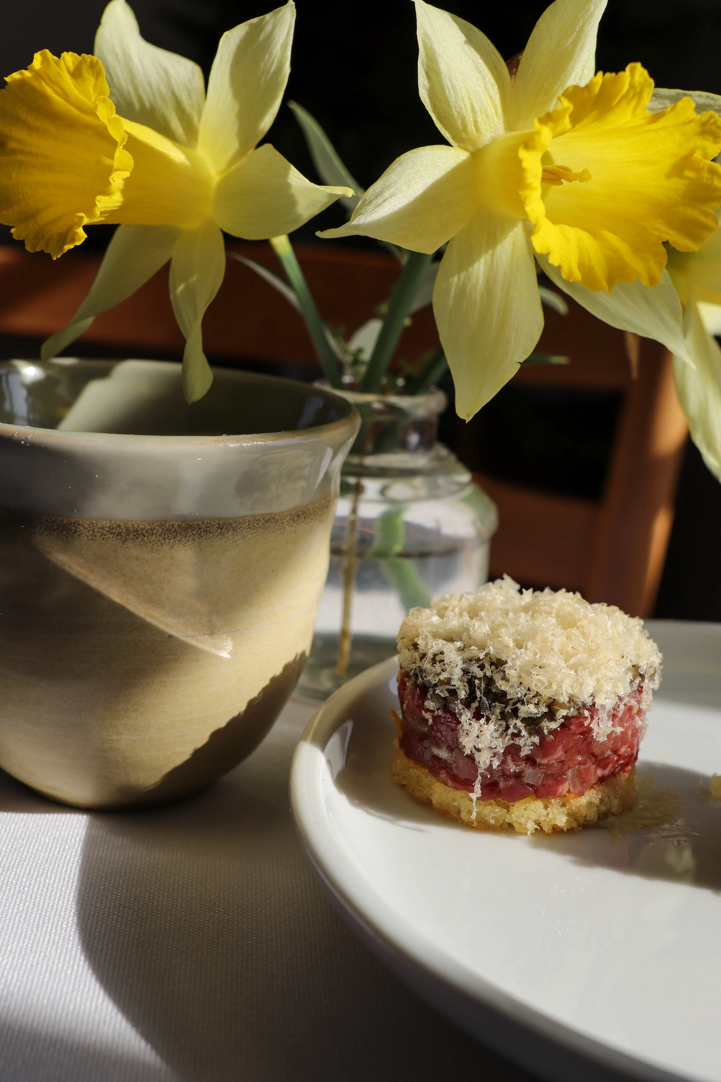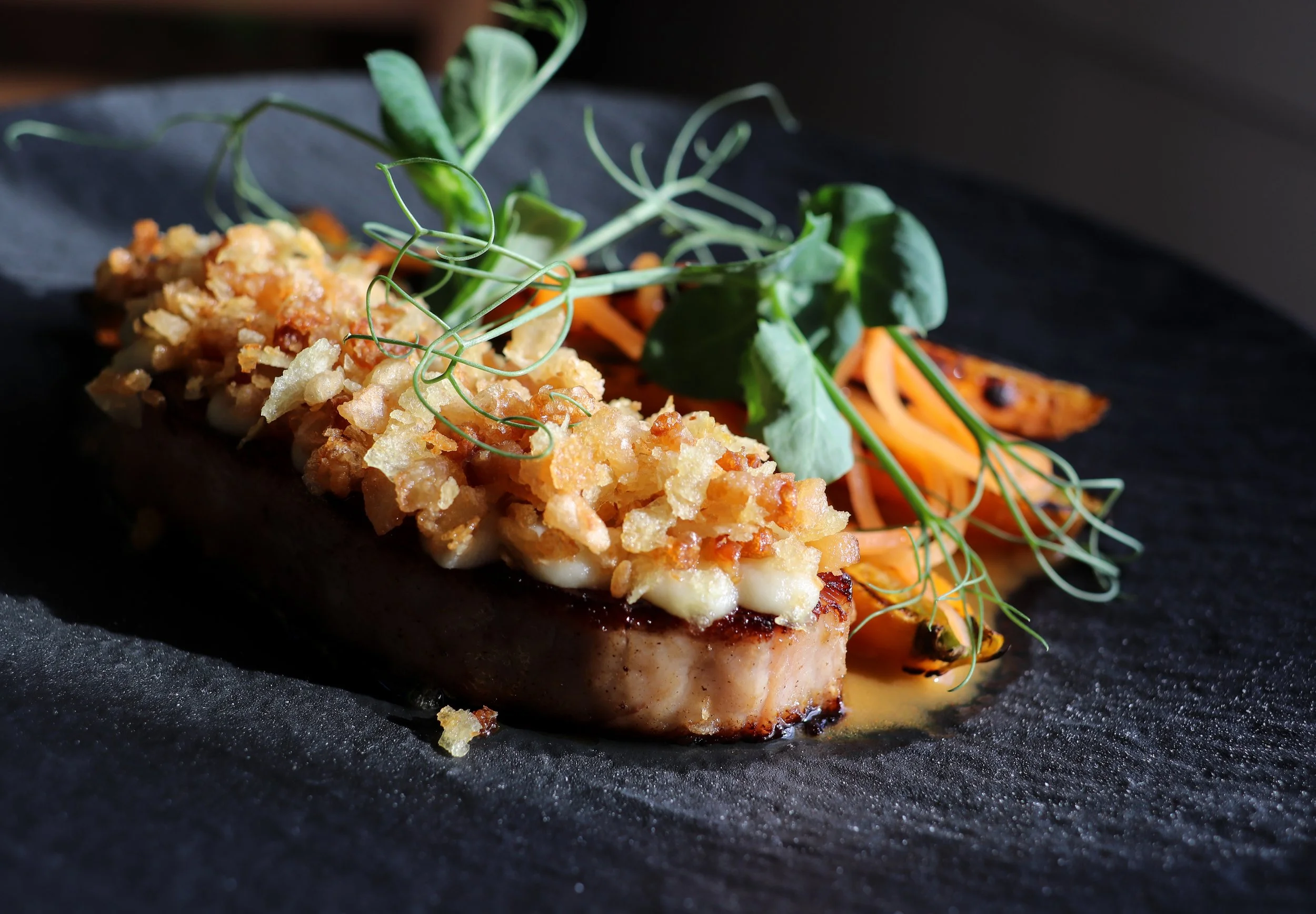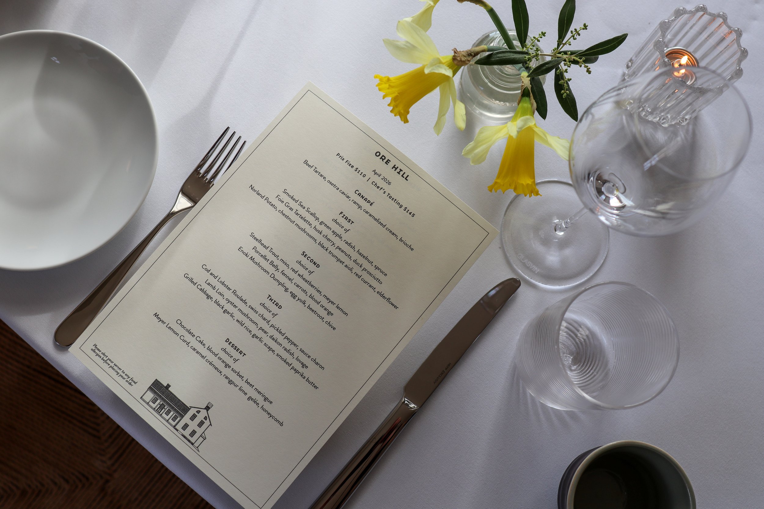 Features Ingredients Interview Restaurant Ore Hill Ore Hill & Swyft Kent Fine Dining Tasting Menu Farm To Table Homepage Interview Chef Ore Hill in Kent: Tasting Menu Dining That Celebrates Local CT Farming Andrew Dominick April 11, 2026 When Swyft opened in Kent at the very end of 2017, it was met with instant fanfare. Right out of the gate, they did things most taverns couldn’t, firing up perfect sourdough Neapolitan pizzas, creative small plates, and nearly every ingredient was homegrown by their own Rock Cobble Farm, located a few miles away in South Kent. It didn’t hurt that they also had a name chef and partner and a well-known owner in philanthropist, Anne Bass.The restaurant being inside of a historic and respectfully restored circa 1781 house didn’t hurt either. The grounds of Ore Hill & Swyft are maintained by Rock Cobble Farm. Herbs are grown on site and they certainly look after those apple trees, too. When the building was renovated and restored in 2016, the original posts, beams, and frame were preserved and original materials were matched during construction. But the full name of the restaurant when it debuted was “Ore Hill & Swyft” and a promise of two concepts under one roof. Swyft would be casual and approachable. Ore Hill would be its more intimate, fine dining side. Both would be farm-focused. In 2022, I covered all the changes at Swyft. By then, chef-partner Joel Viehland had moved on, and Bass had unfortunately passed away, but she ensured that Swyft, Ore Hill, and Rock Cobble Farm would continue on by operating with a CFO and board of directors that lets the good folks who work in the restaurant do what they do. Towards the end of said article, there was a tease about Ore Hill that read:“But what is coming, hopefully in the very near future, is Ore Hill. One of Bass’ wishes when Swyft opened was that the back part of their historic Revolutionary War era digs—that’s now being used for private parties—would feature a tasting menu a few nights per week.”Almost exactly a year after that piece went live, Ore Hill wasn’t a promise anymore. In April 2023, Ore Hill was a reality. View this post on Instagram A post shared by Ore Hill (@ore.hill) Despite receiving an instant bit of credibility by being named to The New York Times’ annual “The Restaurant List” as one of “the 50 places in the United States that we’re most excited about right now,” Ore Hill still had some work to do, namely, a chef to stick around and put their stamp on it. Right before the NYT list, however, they hired celebrity chef and multi-time James Beard Award semifinalist, Tyler Anderson, as culinary director at both Ore Hill & Swyft. Fast forward a couple years and a couple chefs later and Ore Hill has their guy in Ryan Carbone. For Carbone, a Cheshire native, this is his homecoming. “I studied political science in college up in Boston, but I really, really disliked it, so I transferred to the CIA, then spent 10 years in Chicago, nine-and-a-half of those years, I cooked in Michelin starred restaurants Longman & Eagle and Dusek’s Tavern, each had one star,” Carbone says. “Then I was at the Tied House under Debbie Gould, who won James Beard in the early 2000s—I got promoted to executive chef when she left.”Even though he has an admiration for Chi-Town, Carbone and his partner moved back to this area to be closer to family, so he took an executive chef position at a Manhattan location of Pizza Friendly Pizza while simultaneously assistant general managing Olly Olly Market in Chelsea, both for the hospitality collective 16 On Center. Hay smoked sea scallop, green apple, radish, hazelnut, and spruce Vegetables, as you might guess, are prominently featured like in this one; Norland potatoes, chestnut mushrooms, black trumpet aioli, red currant, and elderflower. “I learned how to cook and make pizzas growing up in Cheshire; my first job was dishwashing at a pizzeria there,” Carbone says. “So, that company (16 On Center), moved me out to Manhattan because they loved what I did and I loved what they did. But I wanted to be in a more traditional restaurant, so I went to one of Clare de Boer’s spots, Jupiter.”Roughly a year after he began his stint as chef de cuisine of Jupiter, Carbone applied for the vacant executive chef position at Ore Hill.“Tyler Anderson called me and was like, ‘Did you mean to apply here?’” Carbone recalls. “Tyler has a lot of history in Chicago, too, so we realized we have a lot of mutual friends from there. We ended up on the phone over an hour. I had a few more interviews and I’ve been here since August 2024.” View this post on Instagram A post shared by Ore Hill (@ore.hill) View this post on Instagram A post shared by Ore Hill (@ore.hill) Now settled in, Carbone and the Ore Hill team have a clear menu focus that celebrates the seasons at Rock Cobble Farm where their farmers and botanists grow upwards of 350 different fruits, vegetables, and flowers, plus, their own herd of Randall Lineback cattle that produce dairy and beef, all of which can mostly source both concepts. Heck, even the plants and flowers that adorn the dining tables and act as décor are from Rock Cobble. The firewood used in Swyft’s pizza oven? That’s from the farm, too. Ore Hill’s goal, Cabone explains, is to be a sustainable farm to table restaurant despite the struggles of farming in New England. “We talk often about how difficult it is to be farm to table here,” he says. “There are tons of wonderful chefs who have really cool restaurants doing farm to table, but in reality, the situation is in New England for five months every year, there’s not much grown. I had this idea that this is what we wanted to work towards when I started here. We have a great team, both in front of house and back of house and we said this is where we want to be. We have a robust preservation program that’s grown over the last year-and-a-half, so we’re