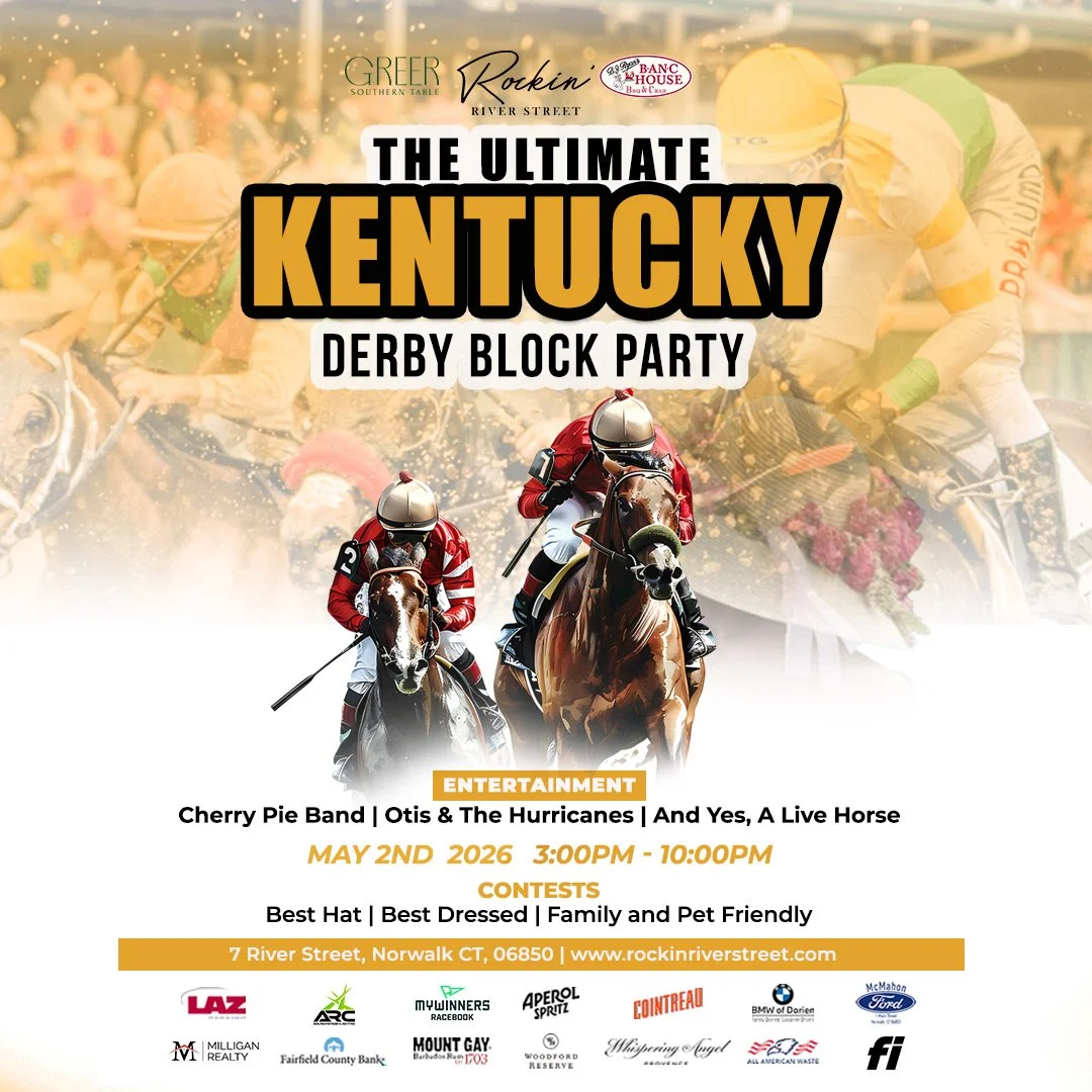 Events Features Kentucky Derby Guide To Kentucky Derby Events & Parties in Connecticut (2026 Edition) Carly Terzigni April 28, 2026 The 152nd running of the Kentucky Derby takes place this Saturday, May 2, and the most exciting two minutes in sports will be `` on at restaurants across the state. Whether you’re looking to just watch the race with friends or you want a day-long extravaganza where you can sport your favorite fascinator, there’s a Derby event for you! Check out the restaurants and businesses around Connecticut that are hosting special events for the Derby. Keep in mind that the post time is just after 6:50 PM – don’t miss it!BJ Ryan’s BanC House and Greer Southern Table-Norwalk https://www.bjryansbanchouse.com/https://www.greersoutherntable.com/Rockin' River Street presents THE ULTIMATE DERBY BLOCK PARTY! River Street will be closed to make room for the best Derby party in town! Featured locations include BanC House and Greer Southern Table for food and specialty drinks, including classic Mint Juleps, of course! The party starts at 3 pm and goes until 10:00 pm with live music and entertainment on their Wall Street Stage and a view of the races from a large screen prompter. Contests for Best Dressed and Best Hat, so be sure to dress to impress! All ages & pups welcome, no admission!Entertainment Line Up: Live DJ All Day; 3pm-7pm Local Vendors; 4pm: Best Dressed Pup Contest ; 4-6pm: Cherry Pie Band; 6-7pm: Live Race Coverage ; 6:30pm: Best Dressed & Best Hat; 7-9pm: Otis & The HurricanesThe Blind Rhino-South Norwalk, Black Rock, Milford https://www.theblindrhino.com/Kentucky Derby Party at The Blind Rhino! On Saturday, May 2nd, all three locations of The Blind Rhino will host a Kentucky Derby celebration with Woodford Reserve. Guests can enjoy classic mint juleps, Derby-inspired food specials, and the thrill of the race broadcast on every TV with full sound. Throughout the event, scratch tickets will be available for a chance to win prizes. The celebration will also feature Best Dressed and Best Hat contests, with winners receiving an engraved bottle of Woodford Reserve. It’s set to be a lively and stylish Derby day experience—perfect for those looking to celebrate in true racing fashion.The Clubhouse-Westport https://www.theclubhousewestport.com/The Kentucky Derby is off to the races at The Clubhouse Westport on their big screen this Saturday, May 2nd starting at 6:15 PM. Sip a classic Mint Julep while you watch the most exciting two minutes in sports (race starts at 6:57 PM). Wear your best Derby outfits for a chance to win a $200 Clubhouse gift card + one hour of activity time! Reservations encouraged, walk ins welcome. Click here to grab a table: https://bit.ly/41PE1RTBobby V’s Restaurant-Stamfordhttps://www.bobbyvsrestaurant.com/The Greatest Two Minutes in Sports is Saturday, May 2. Bobby V's is the Ultimate Destination for all things Kentucky Derby, offering a free $10 Bet on the MyWinners App for new customers, a Kentucky Derby Watch Party with over 200 TVs, and a Mint Julep Drink Special. Place advanced wagers on Friday, May 1.The Estate-New Havenhttps://theestatenewhaven.com/Experience the grandeur of the Kentucky Derby at The Estate with an unforgettable evening of elegance, excitement, and celebration featuring delicious food, refreshing drinks, live music, race wagering, and the live broadcast on the big screen. Come dressed to impress for a chance to win Best Dressed, or Best Fascinator, then gather your friends, place your bets, and raise a glass to the “Greatest Two Minutes in Sports.” https://www.eventbrite.com/e/the-estates-kentucky-derby-soiree-tickets-1984642384798FanDuel Sportsbook at Mohegan Sun-Uncasvillehttps://mohegansun.com/Experience the thrill of the Derby like never before. Presented by Woodford Reserve, the Mohegan Sun FanDuel Sportsbook event features an open bar with Derby day drink specials, including the classic Mint Julep and their signature Run for the Roses cocktail, a Kentucky Derby-style themed buffet, an official t-shirt, a mint julep glass, a Woodford Reserve infused cigar, and more. Reservations are required; make yours here.Foxwoods Resort Casino’s Winner’s Circle: Kentucky Derby Party + Whiskey Tasting-Ledyardhttps://foxwoods.com/event/winners-circle-kentucky-derby-event-whiskey-tastingWatch the final races at Churchill Downs while sampling bourbon & whiskey cocktails and a curated menu in their exclusive Kentucky Derby tasting starting at 5:00 PM. Snap insta-worthy pics in their photo areas, dance to a live DJ and roving entertainers, enter to win a trip to Bourbon & Beyond 2026 in Kentucky and join their hat contest! Tickets include unlimited tasting from vendors, 1 dessert item, and access to space/photo op areas. Designated Driver tickets are available as well and includes 1 dessert item and access to space/photo op areas (excluding alcohol samples from vendors).Little Treasures Farm-Chaplinhttps://www.littletreasures.farm/Join Little Treasures Farm for their 4th Annual Derby Day Fundraiser! Meet the rescues, touch-a-truck, drill team demonstrations, food, raffles, and more are available. Fun for all ages! The event starts on Derby Day at 3:00 pm.Milestone Restaurant-Reddinghttps://www.milestonect.com/Mint juleps in hand, best hat wins. Join Milestone Restaurant for Derby Day done right. $12 Mint Juleps flowing and a Derby Hat Contest. Winner takes home a $100 gift card. Post time is 6:57. Settle in, grab a drink, and make your case for best dressed.Pequot Library-Southporthttps://live-pequot.pantheonsite.io/event/derby-day-celebration-1454Don’t miss your chance to participate in the Derby Day Celebration and experience the excitement of the Kentucky Derby on the Great Lawn with festive hats, attire, and decorated tailgates. Prizes will be awarded for Best Hat, Best Dressed, and Best Tailgates as well. Watch the “Run for the Roses” on the big screen in the historic auditorium, and enjoy Kentucky fare 